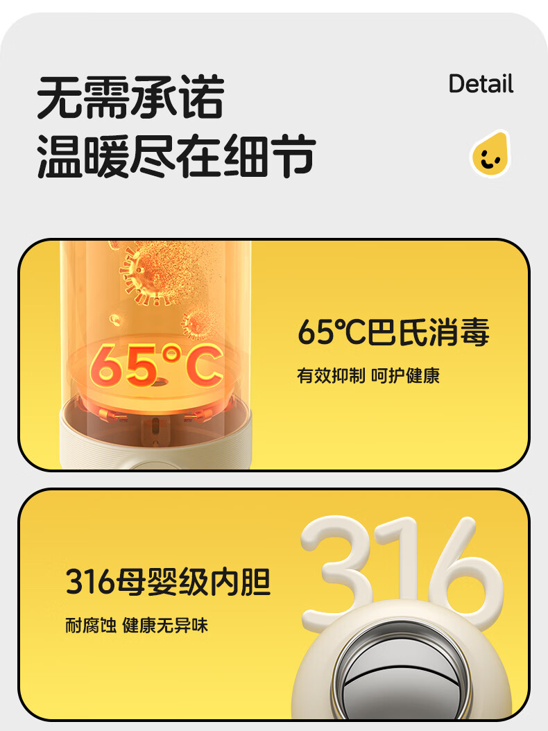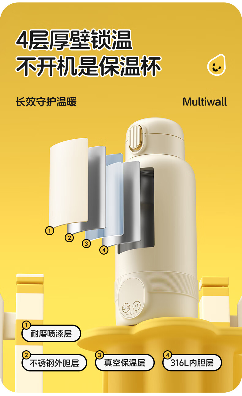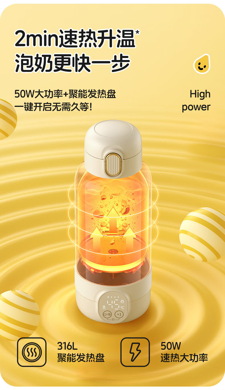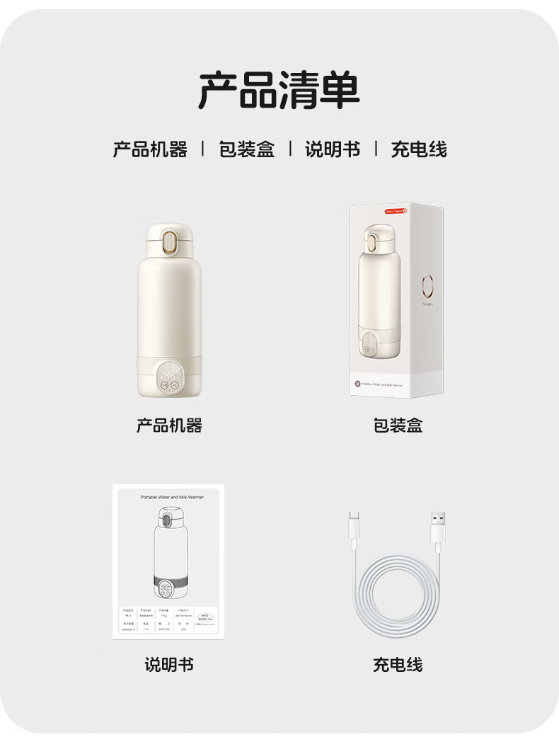 XEAMUN无线便携恒温水杯调奶器保温杯婴儿恒温加热保温杯冲泡奶 55度 细萌智能恒温宝宝专用户外电水壶 500ml 【爆款】