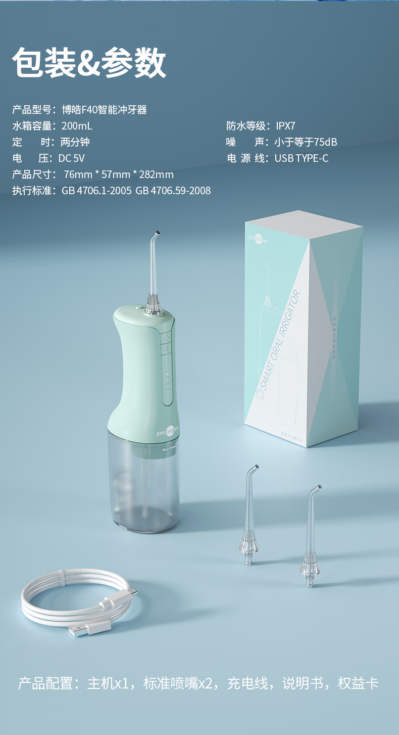 博皓(prooral)冲牙器牙齿洗牙器冲洗器微气泡水牙线正畸电动洁牙器牙缝牙垢清洁器便携 送朋友生日礼物 F40 象牙白