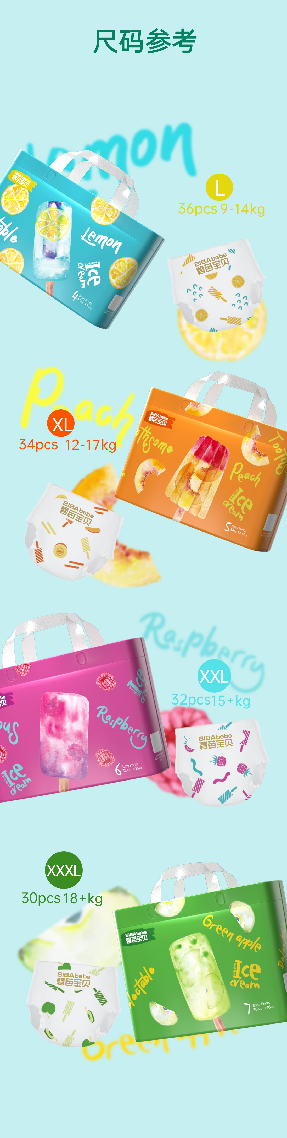 碧芭宝贝冰淇淋special拉拉裤L码36片(9-14kg)尿不湿超薄透气 薄荷清爽