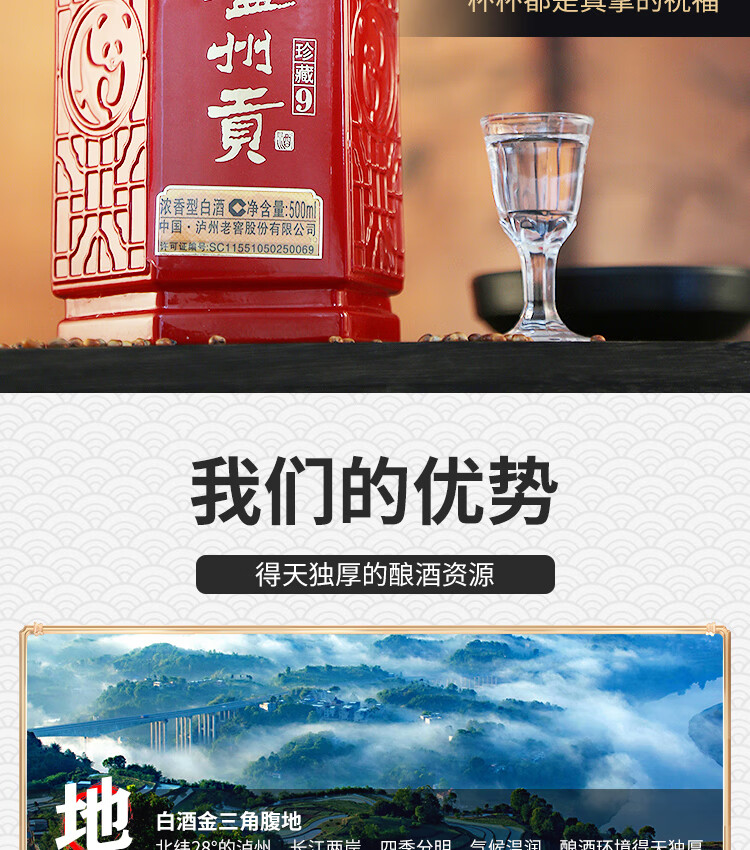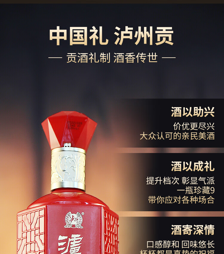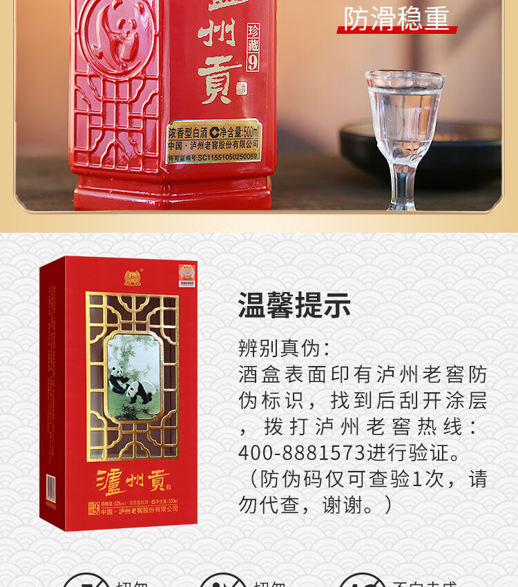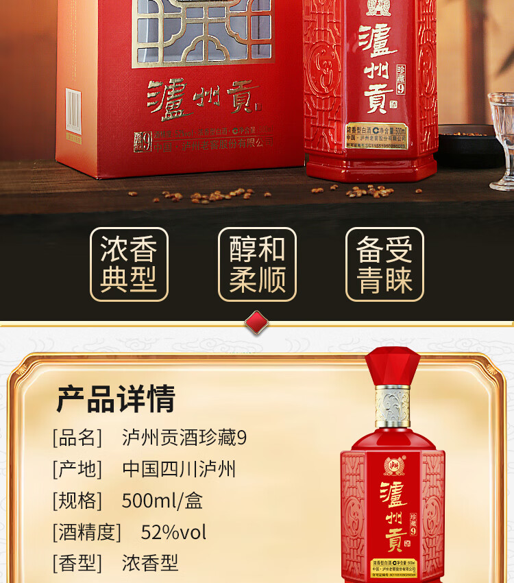 泸州老窖泸州贡珍藏9浓香型白酒 500ml婚宴寿宴用酒52度高度白酒 52度 500mL 6瓶 珍藏9整箱