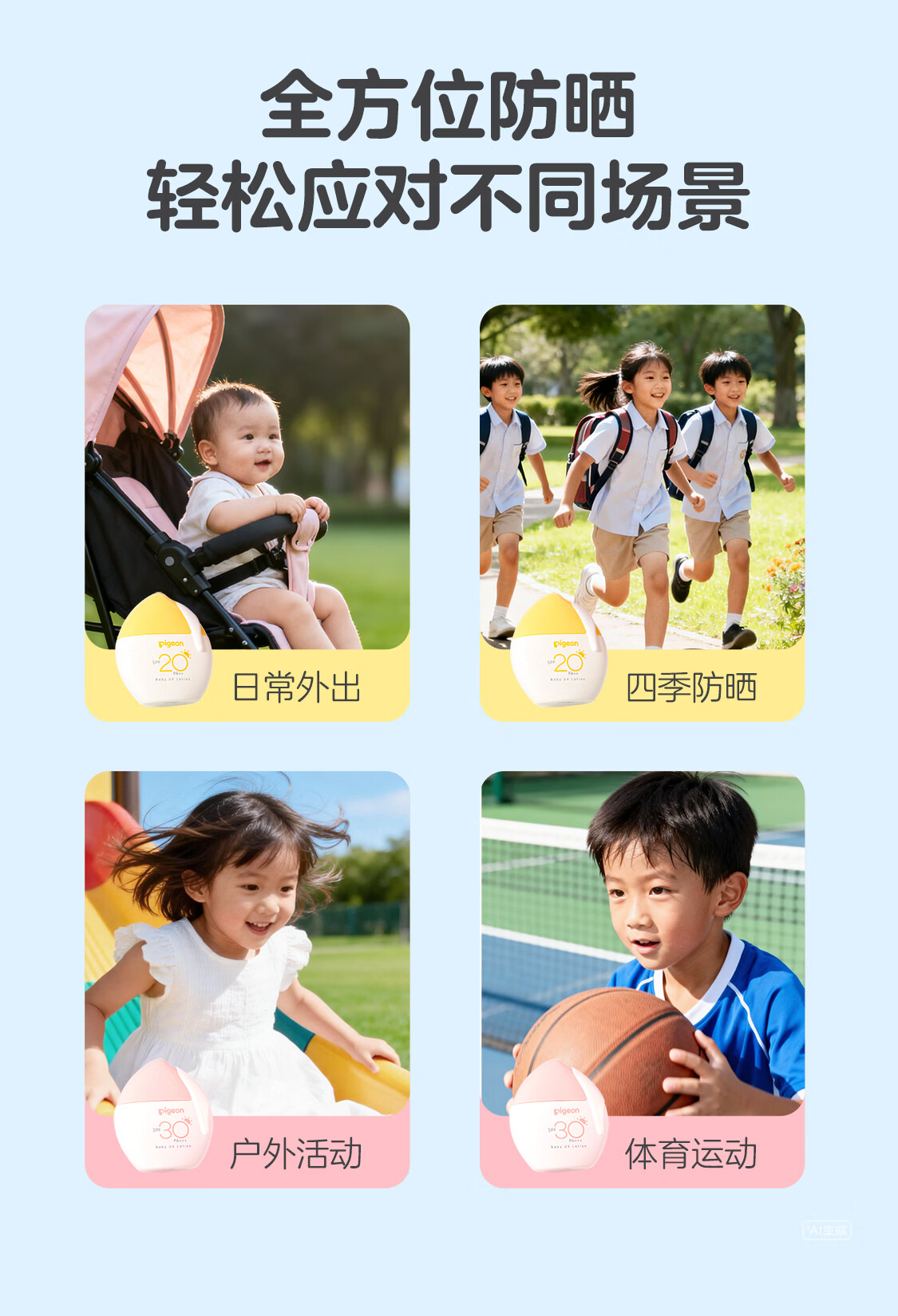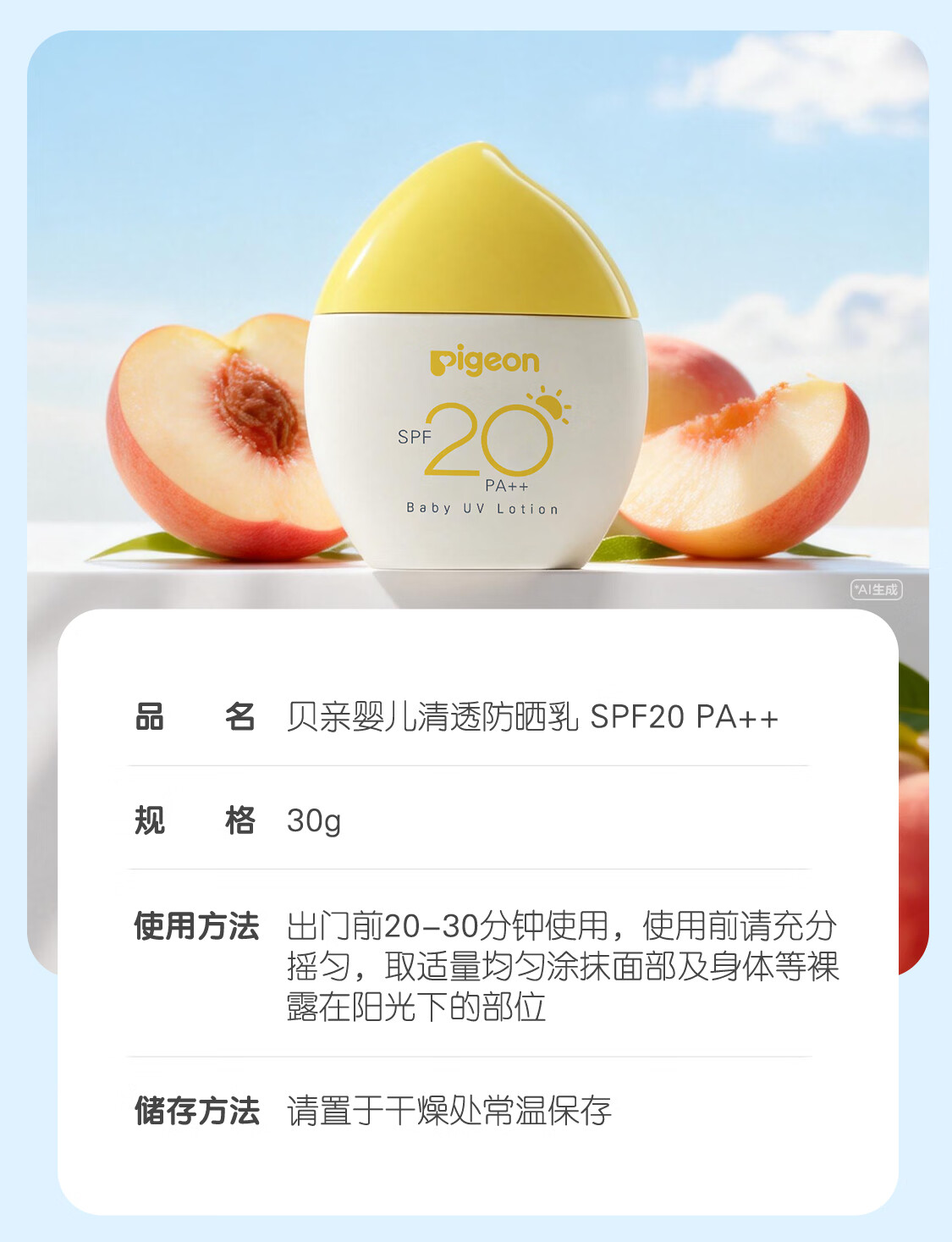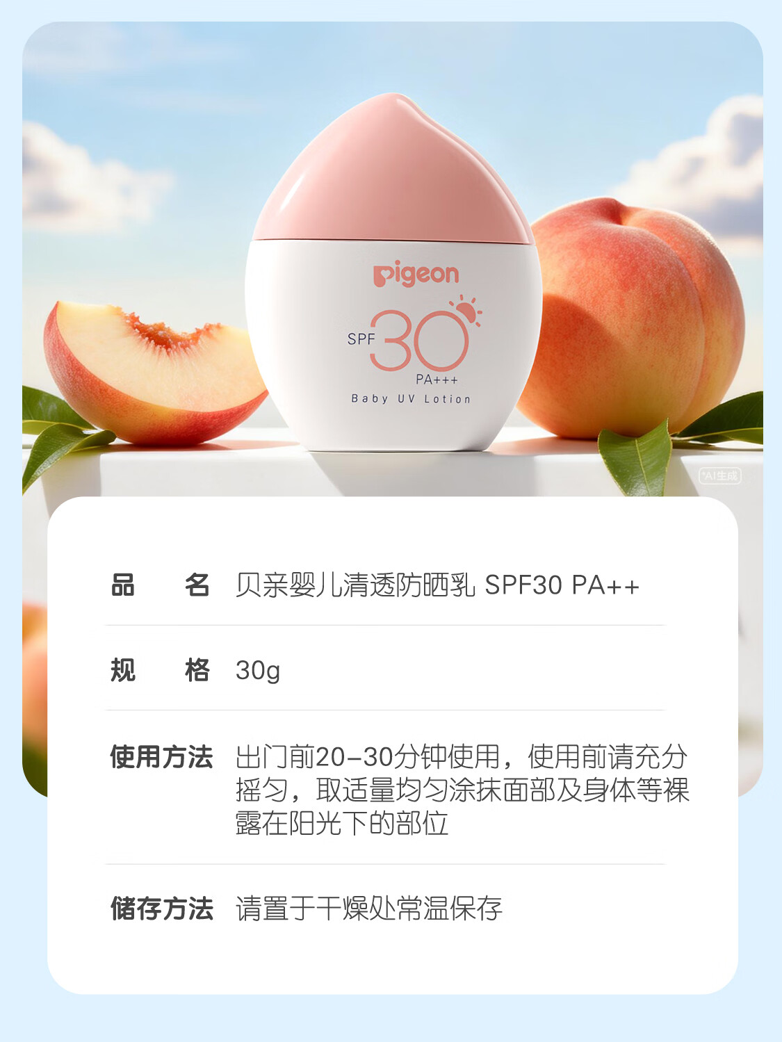贝亲儿童防晒霜 隔离紫外线专用 婴儿防晒 敏肌专用 物理防晒霜 30g SPF30 PA+++