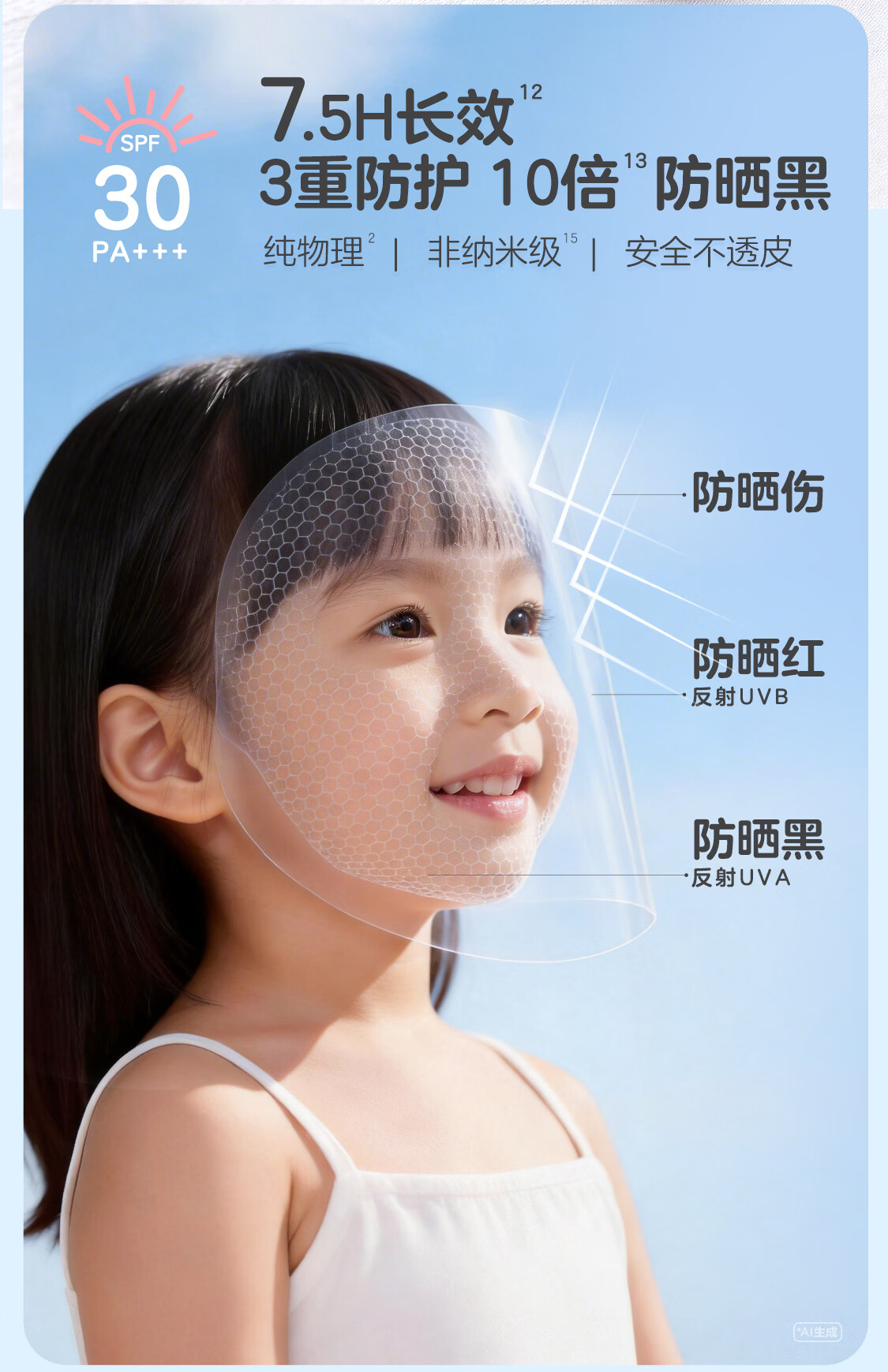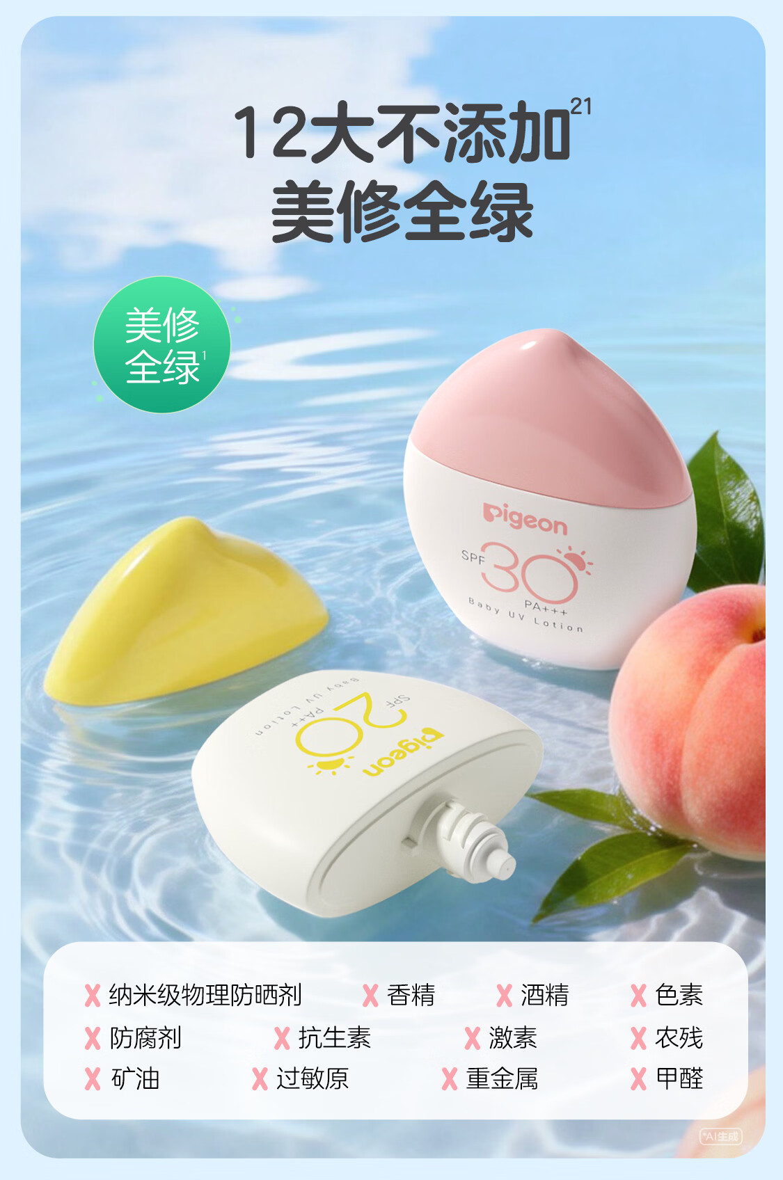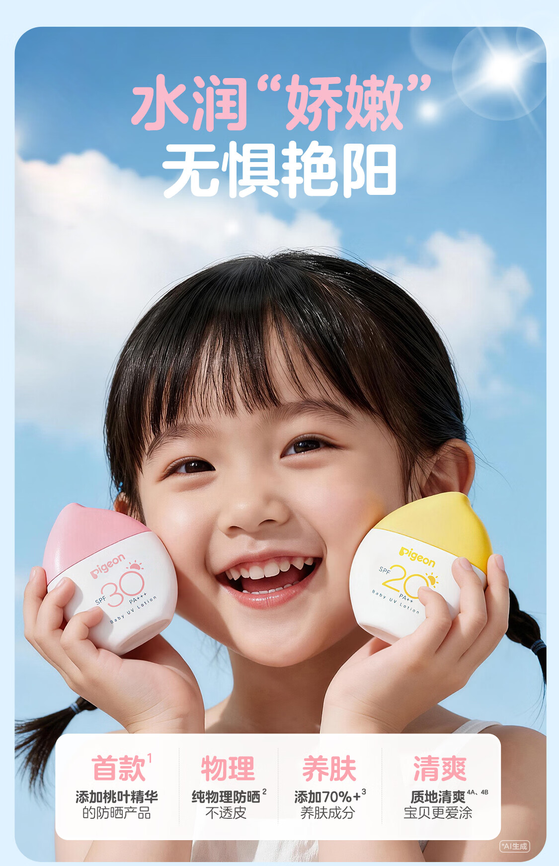 贝亲儿童防晒霜 隔离紫外线专用 婴儿防晒 敏肌专用 物理防晒霜 30g SPF30 PA+++