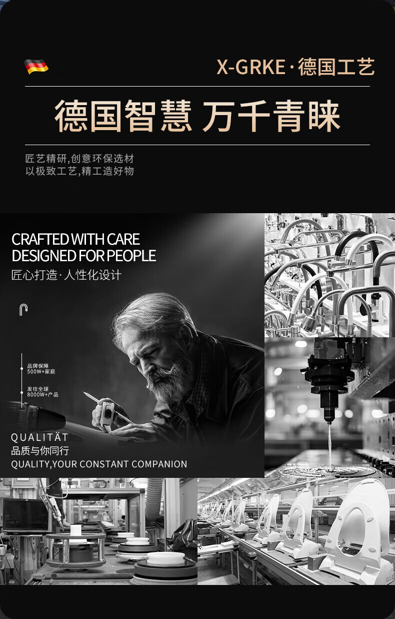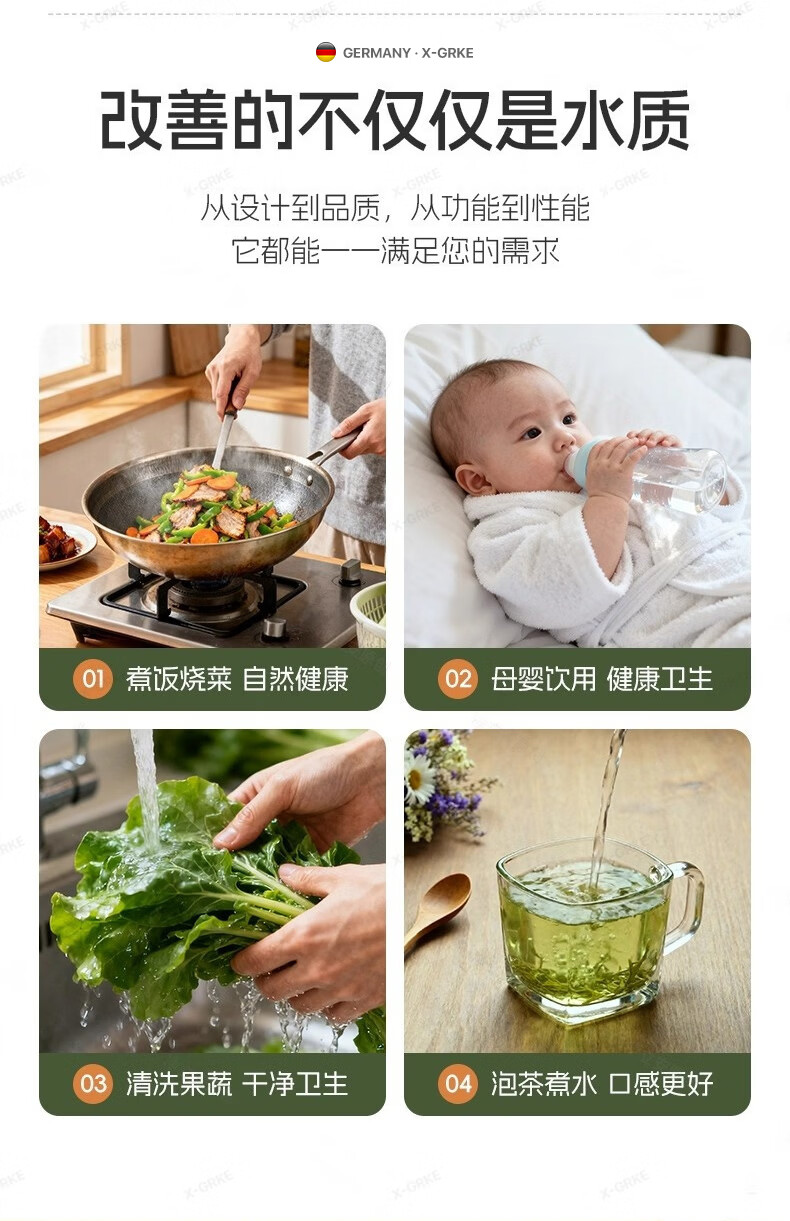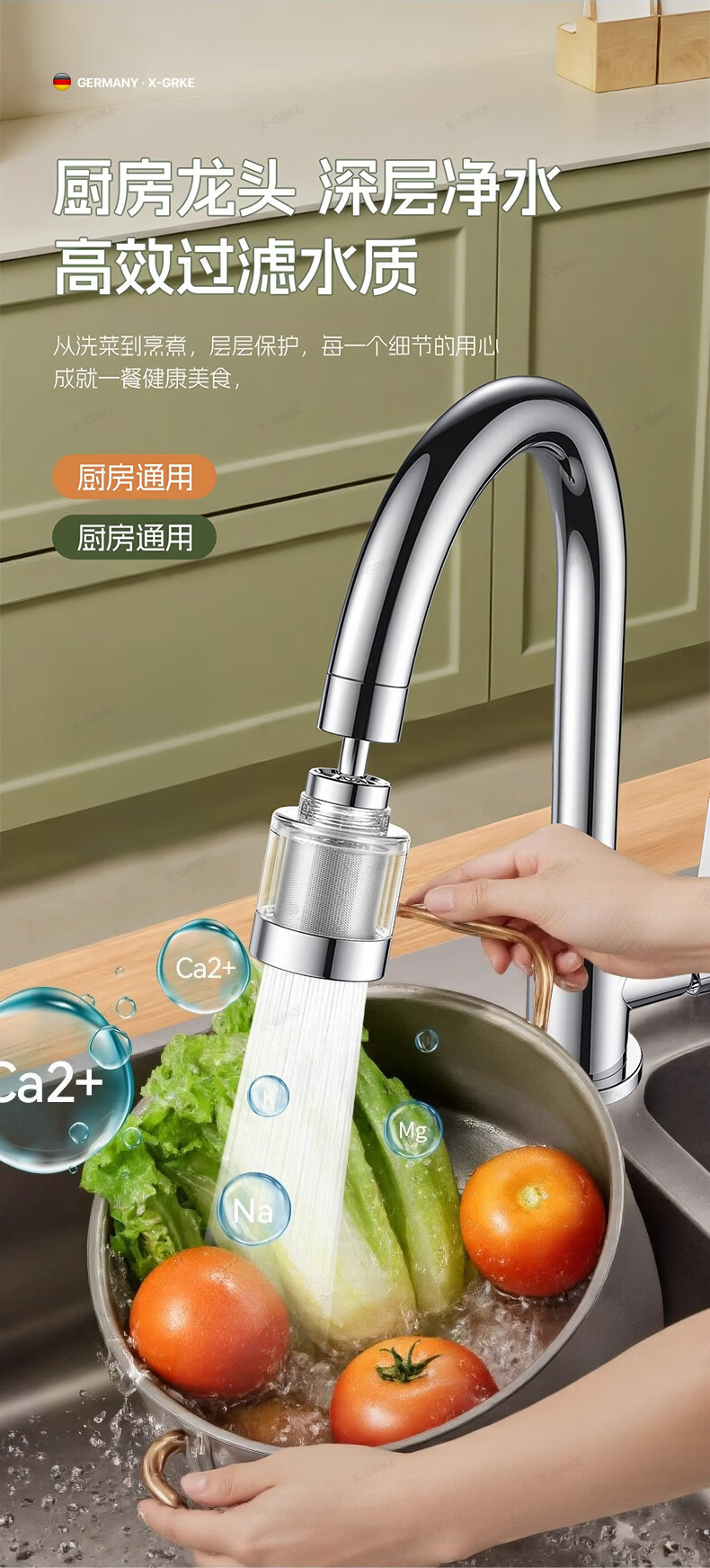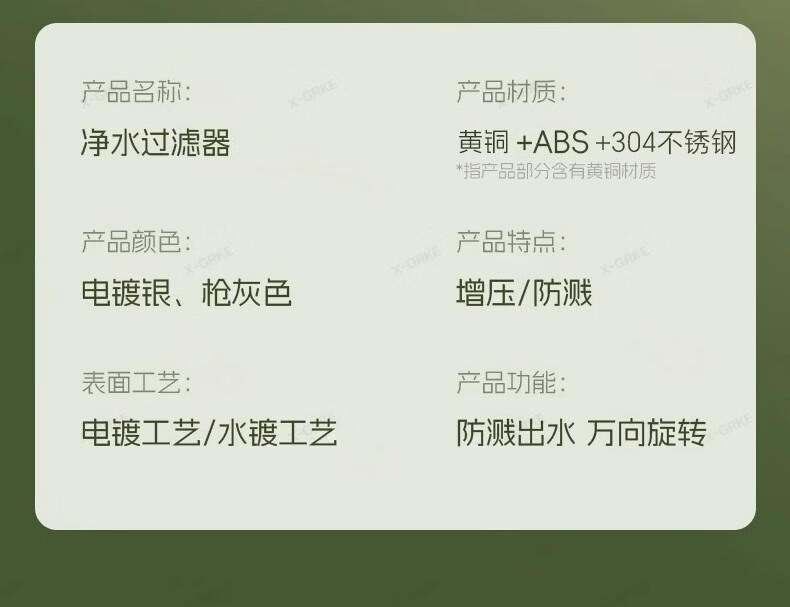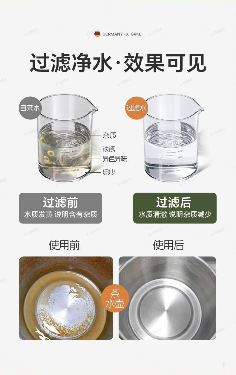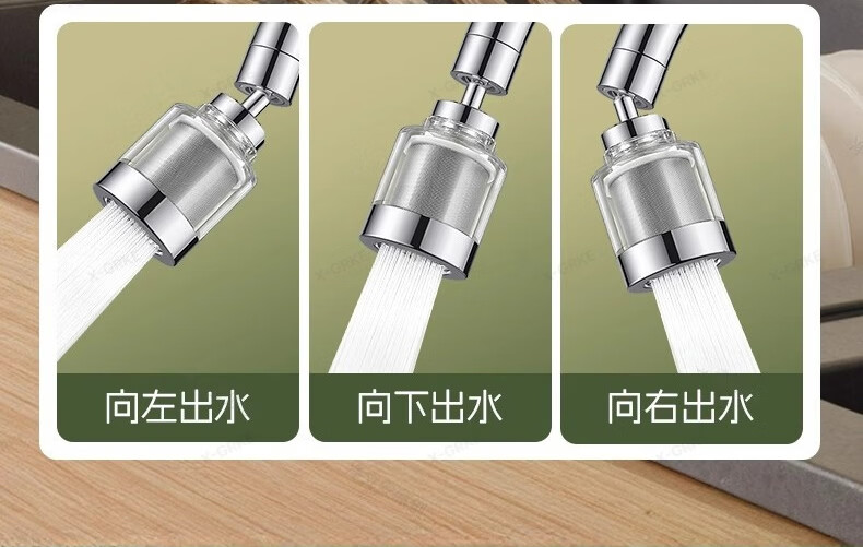 X-GRKE【德国】厨房水龙头过滤净水器家用自来水龙头延伸器万能防溅接头 全铜接头【304免换滤芯*送转换配件】亮银 万向旋转丨通用安装丨增压防溅