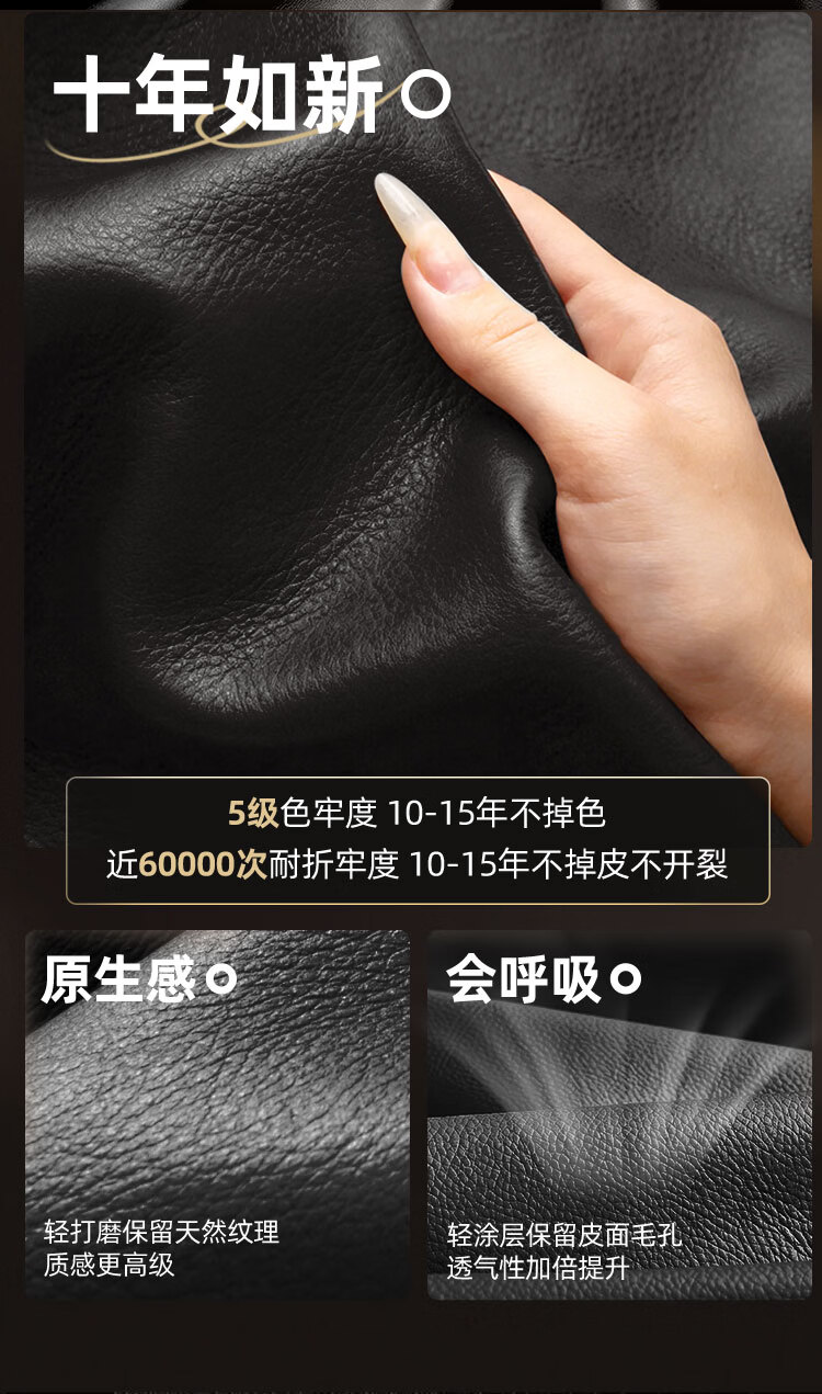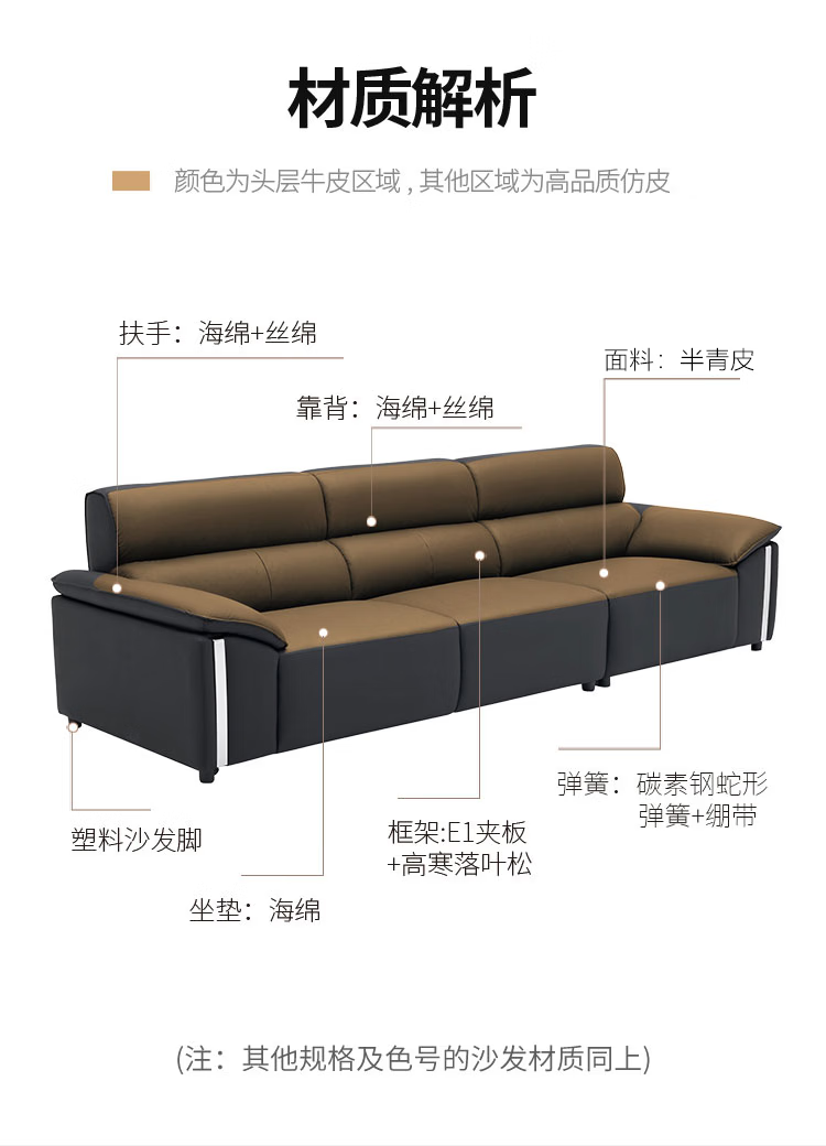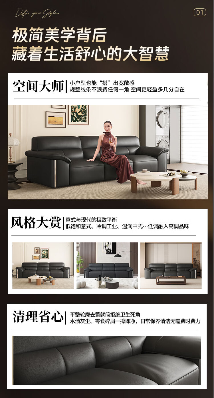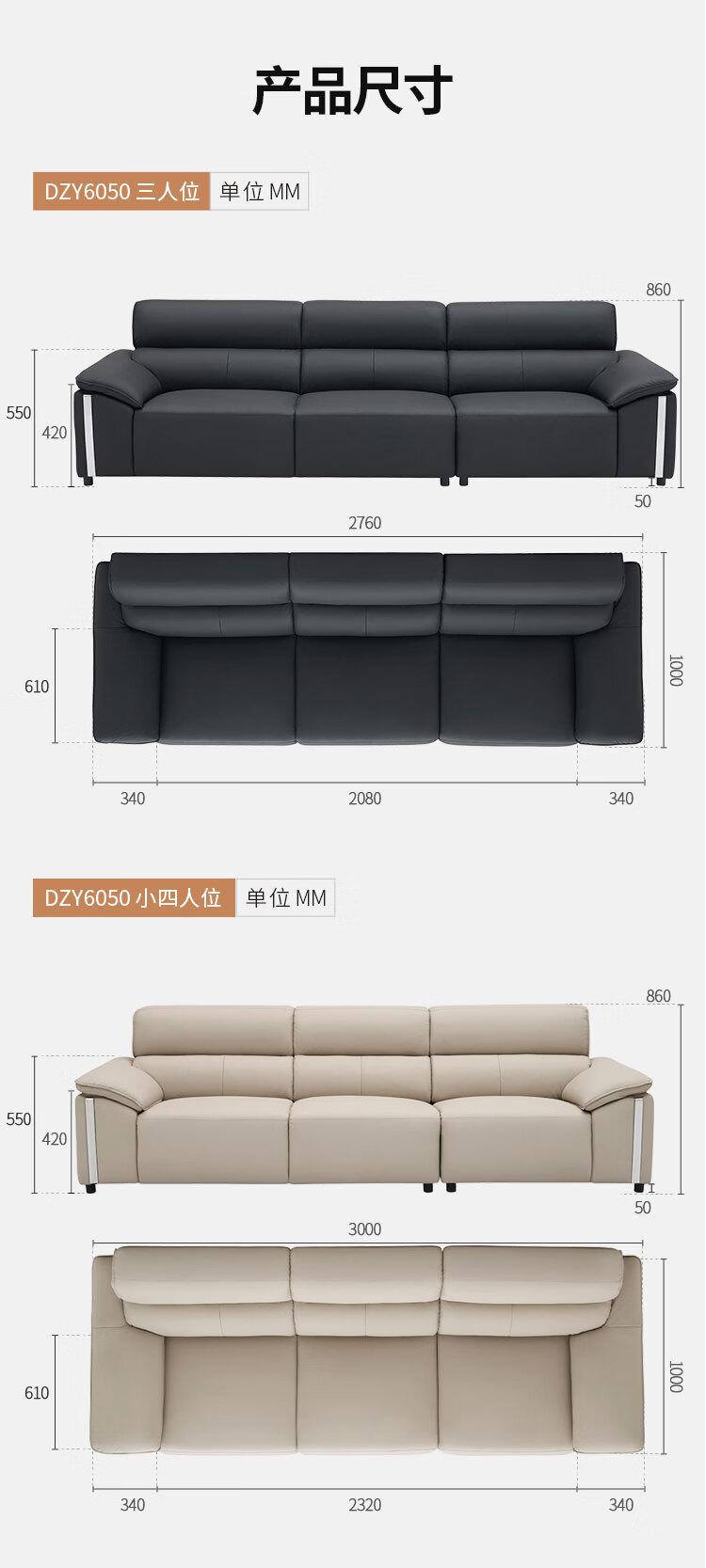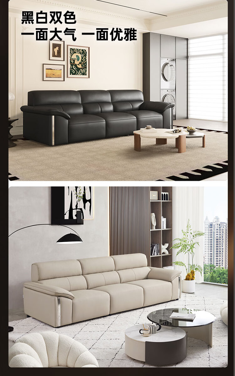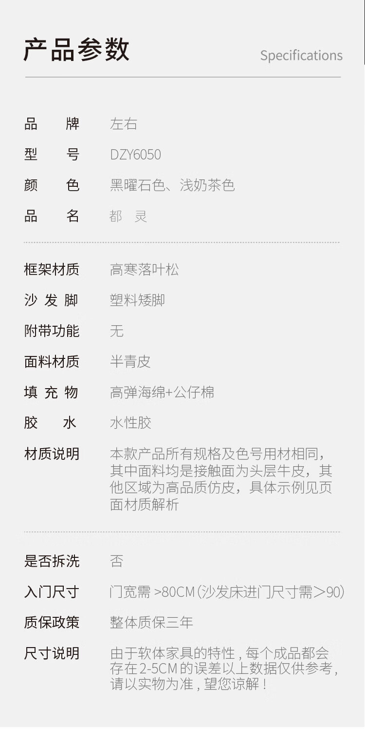 左右大黑牛真皮沙发现代简约客厅轻奢升级款半青皮中小型家具DZY6050 [5]轻奢半青皮 2.76m三人位柔茶白
