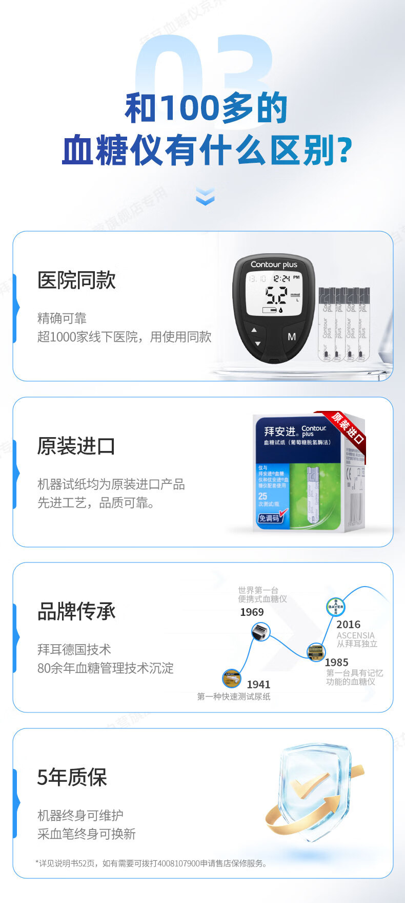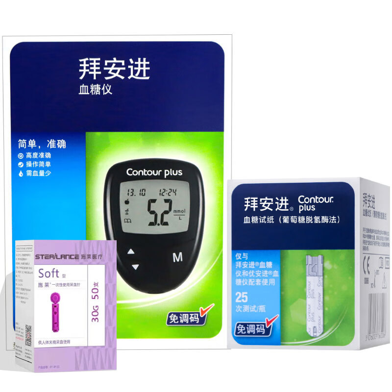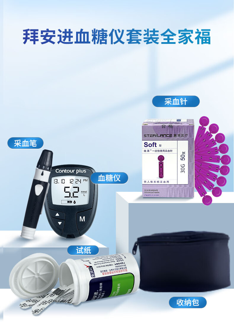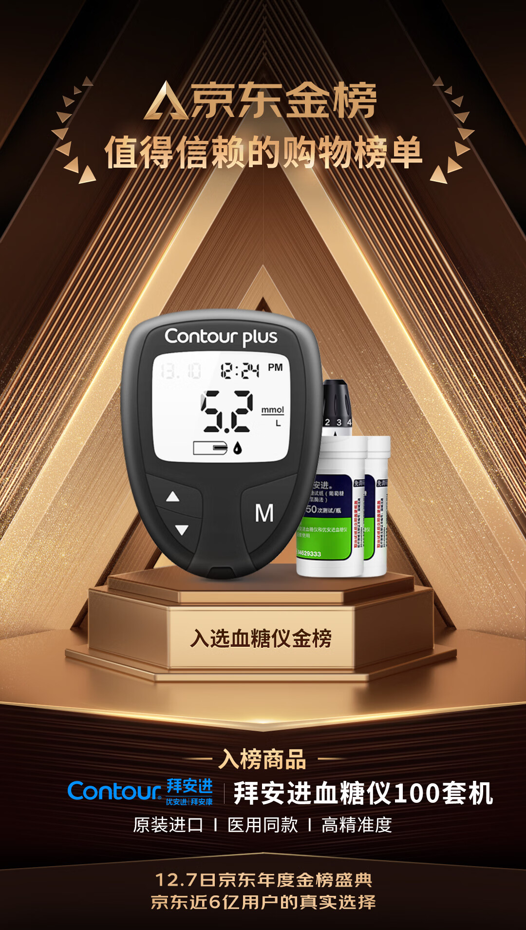 拜耳(BAYER)拜安进血糖仪家用医用级高精准血糖检测仪测试仪-100试纸+低痛针