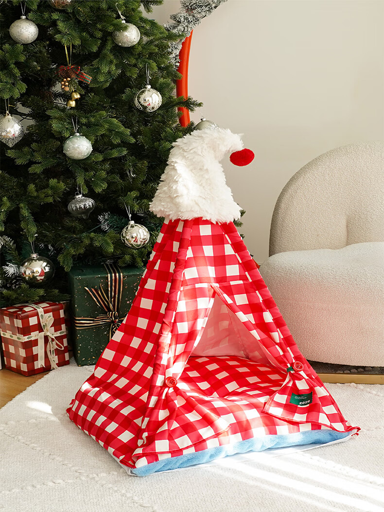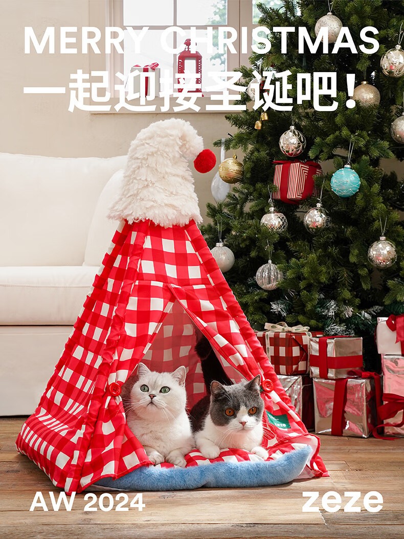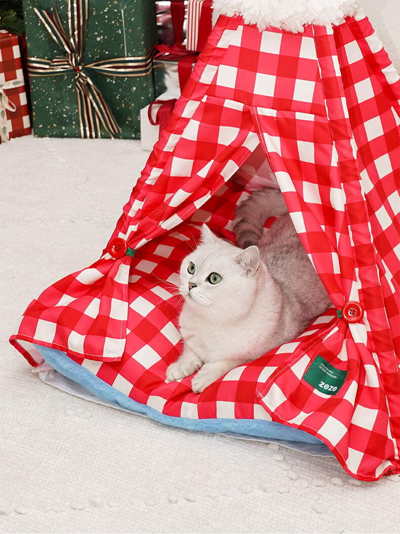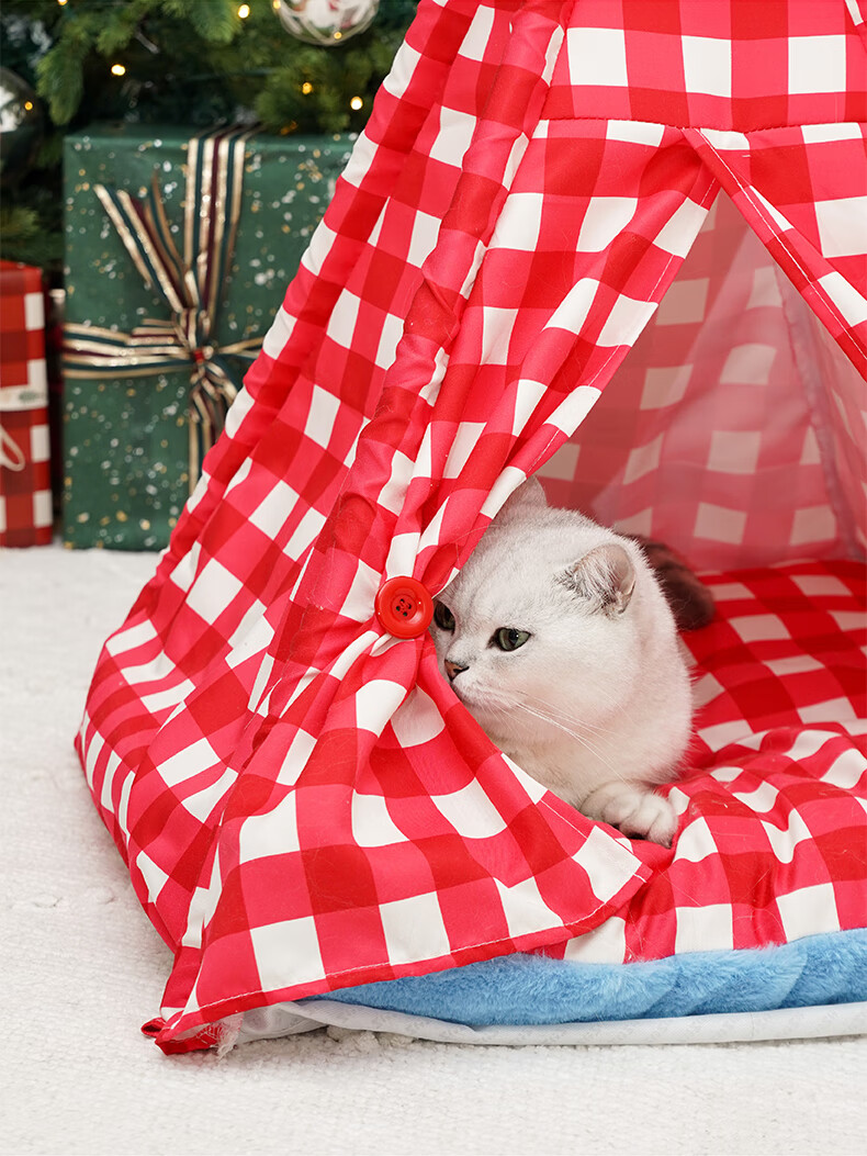 ZEZE圣诞保暖宠物帐篷宠物屋猫窝半封闭可拆洗垫猫床四季通用狗窝狗床