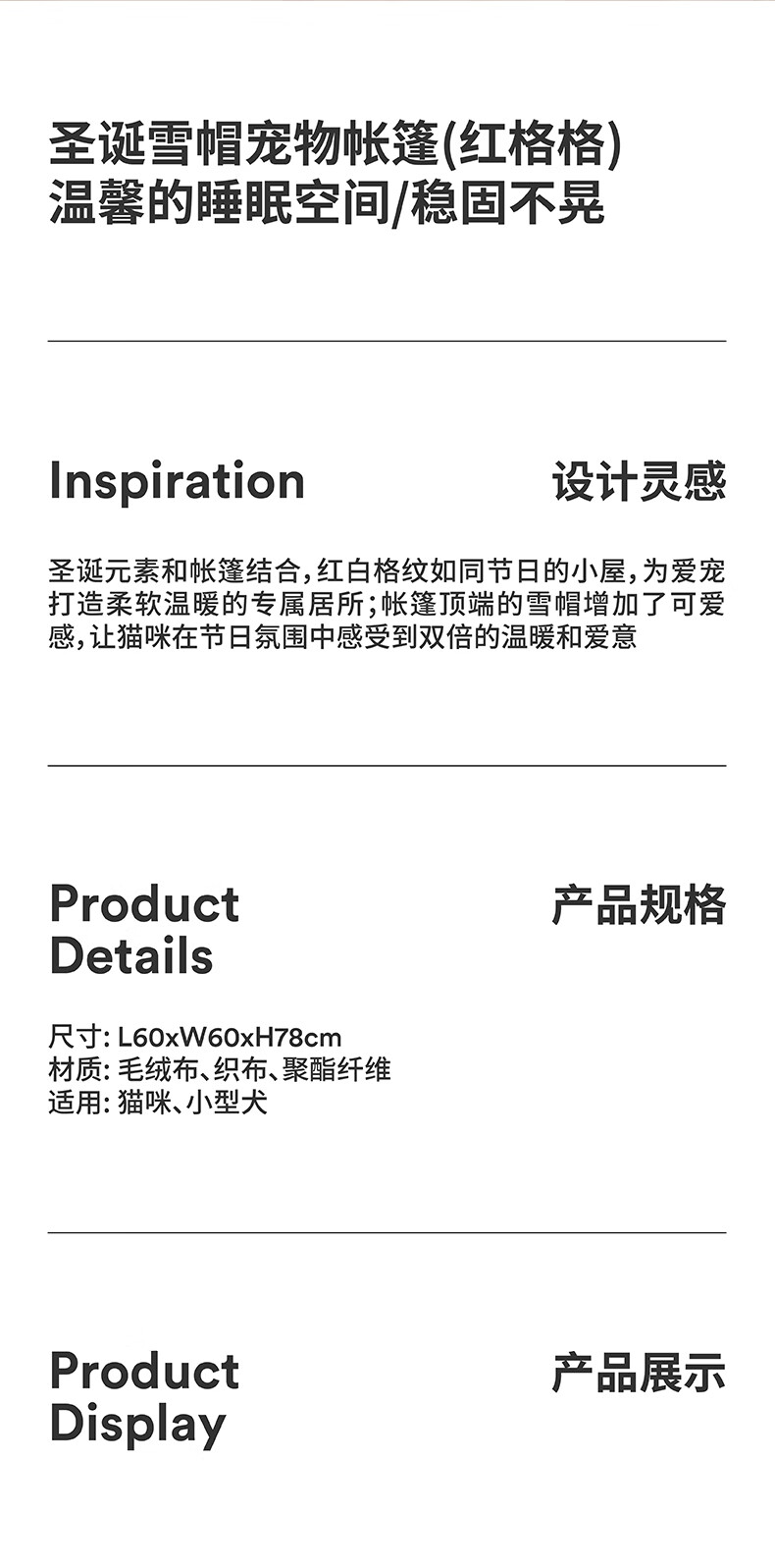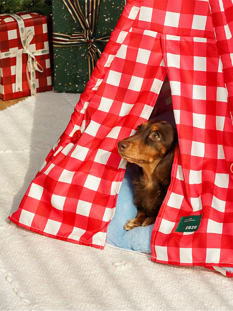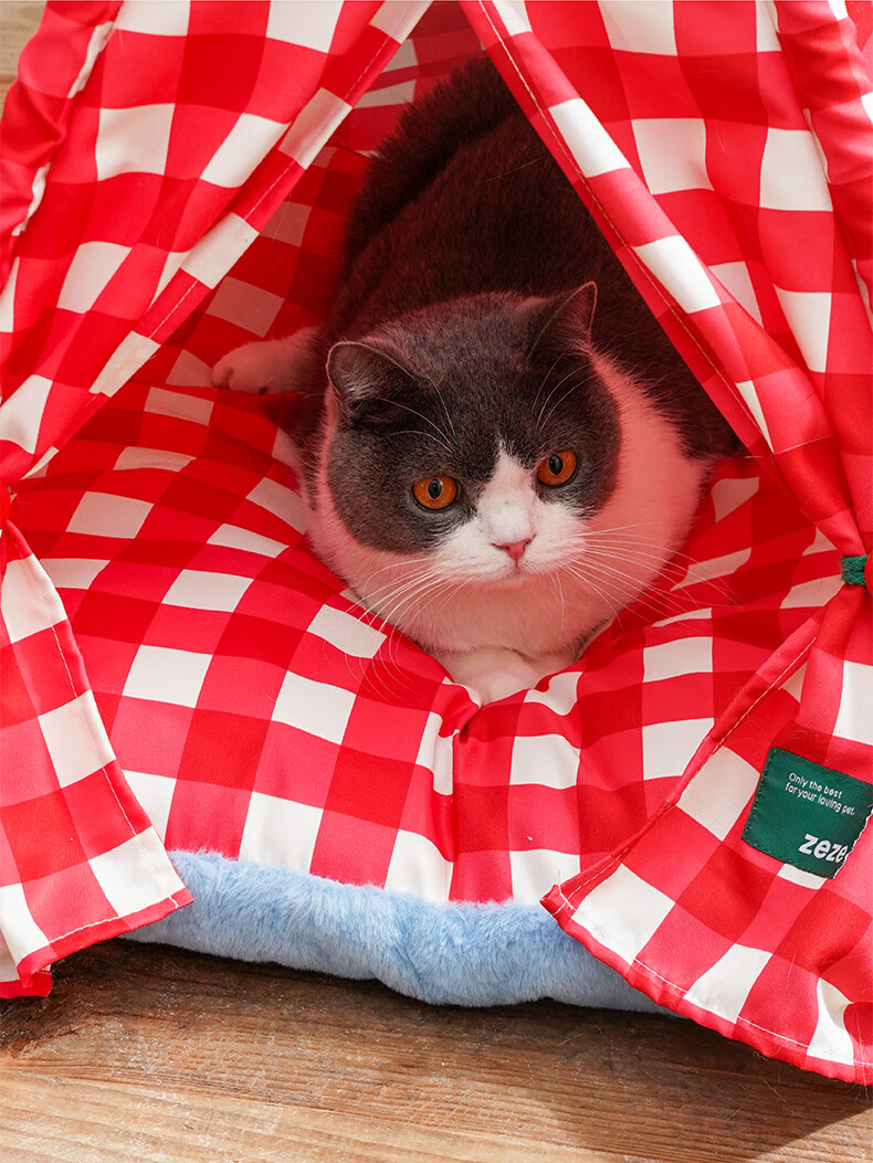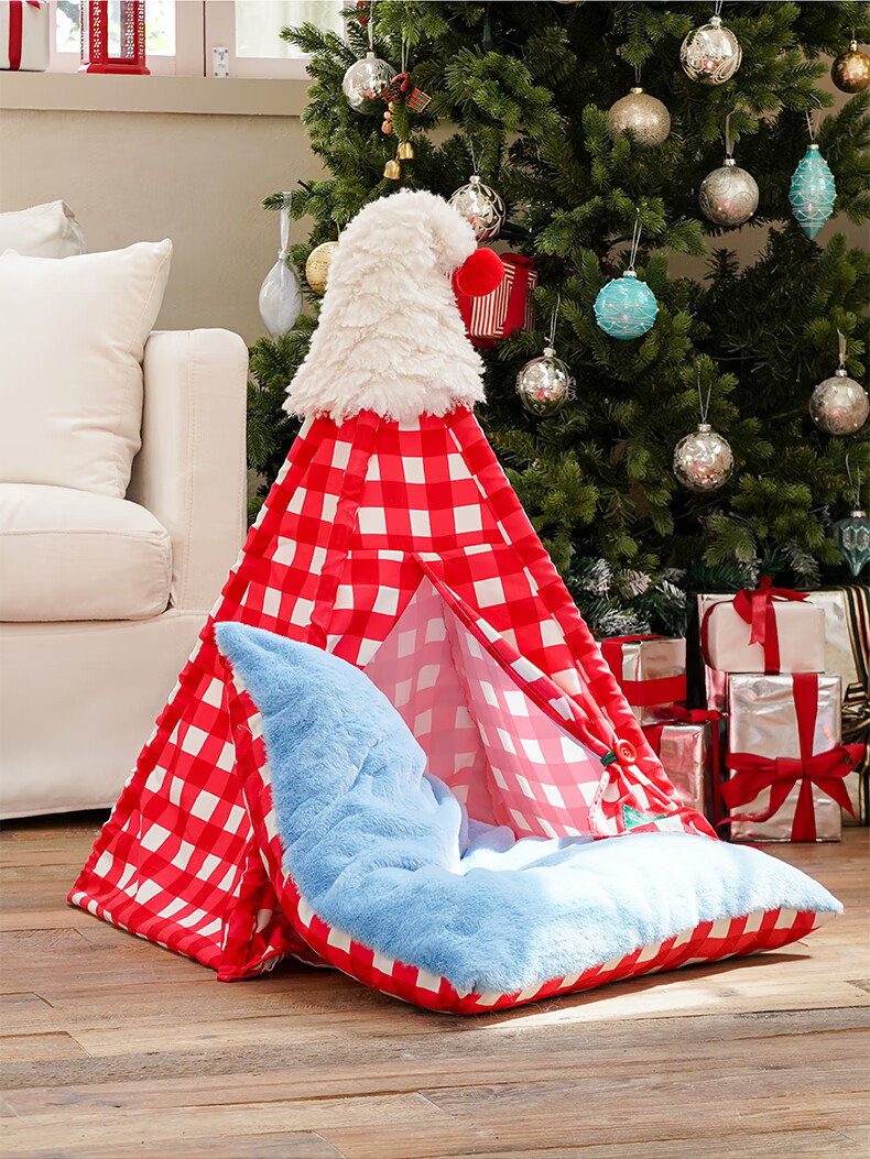 ZEZE圣诞保暖宠物帐篷宠物屋猫窝半封闭可拆洗垫猫床四季通用狗窝狗床