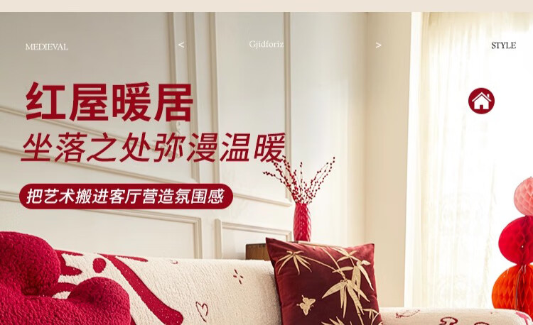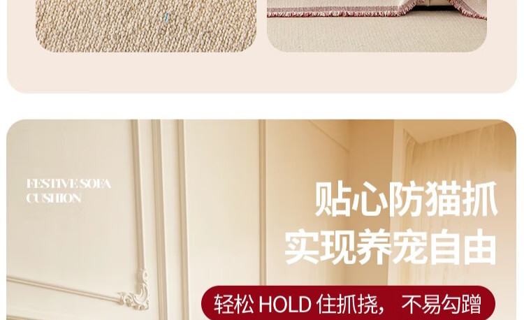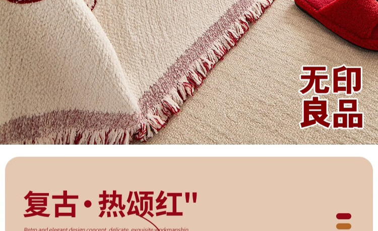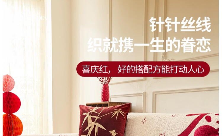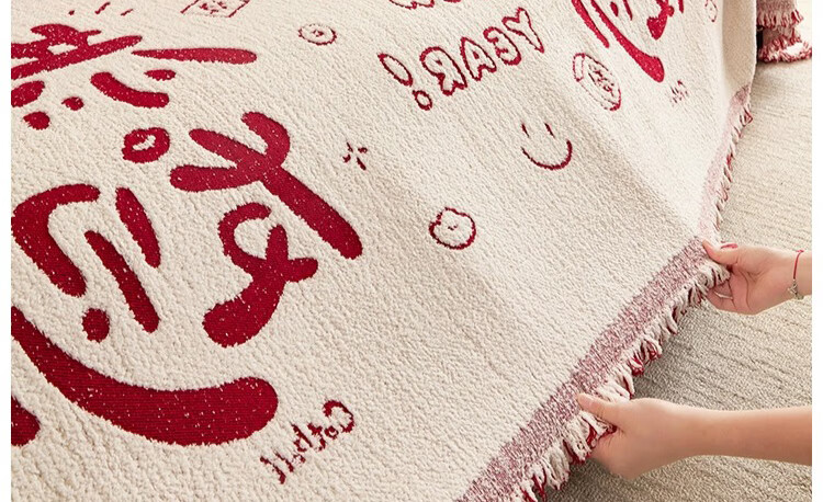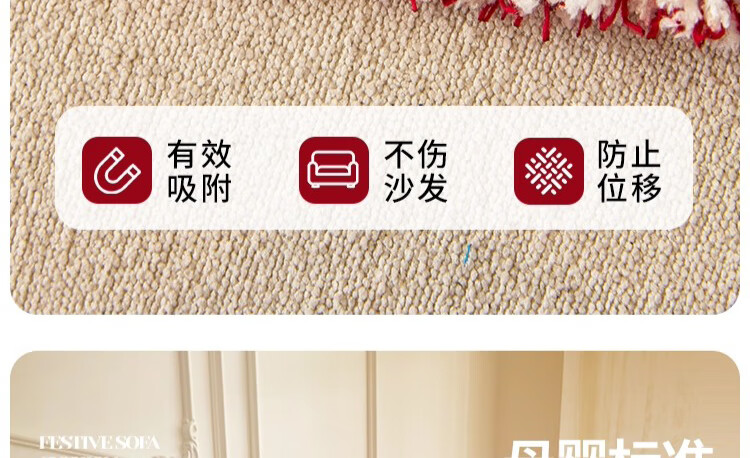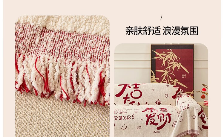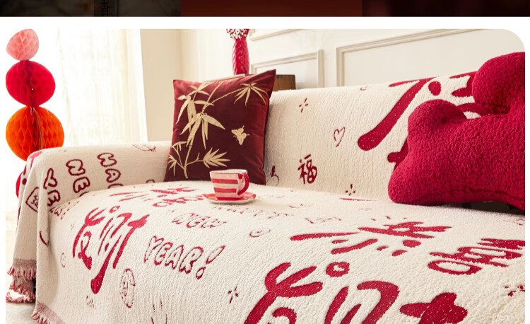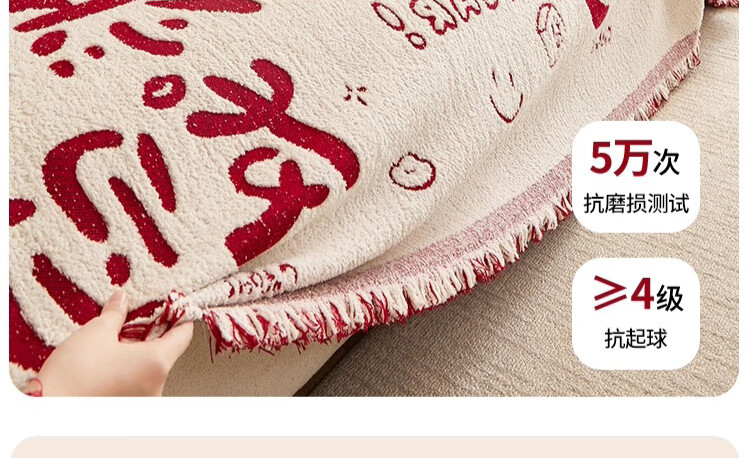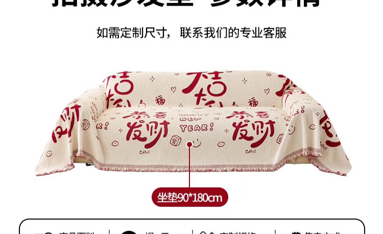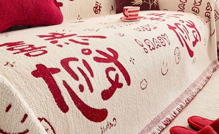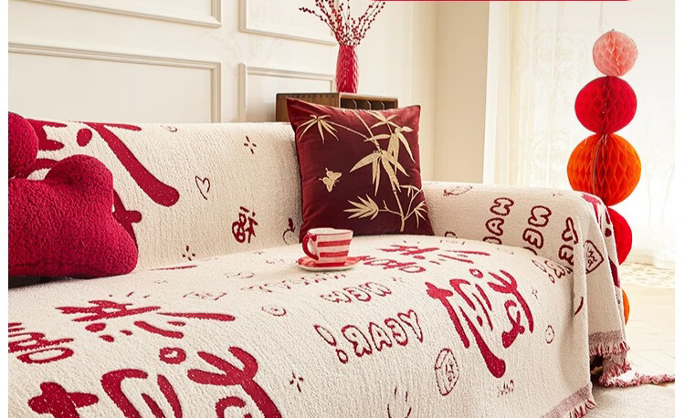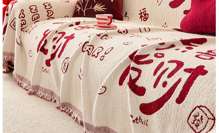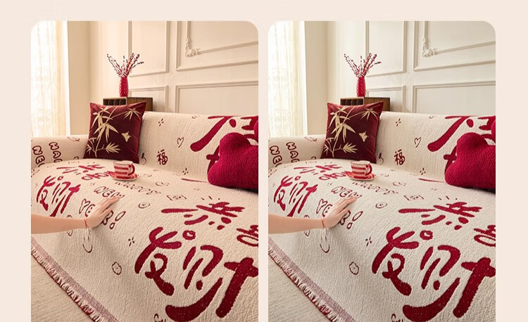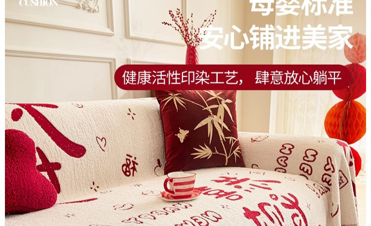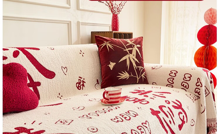 无印良品沙发盖垫红色喜庆防滑沙发垫防猫抓沙发巾全盖坐垫毛绒套罩垫布 大吉大利-中国红【冬季毛绒 防猫抓】 180X130cm 【适合小单人位】