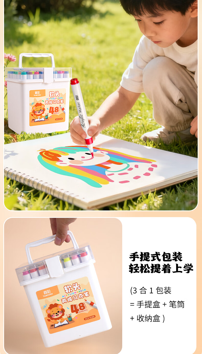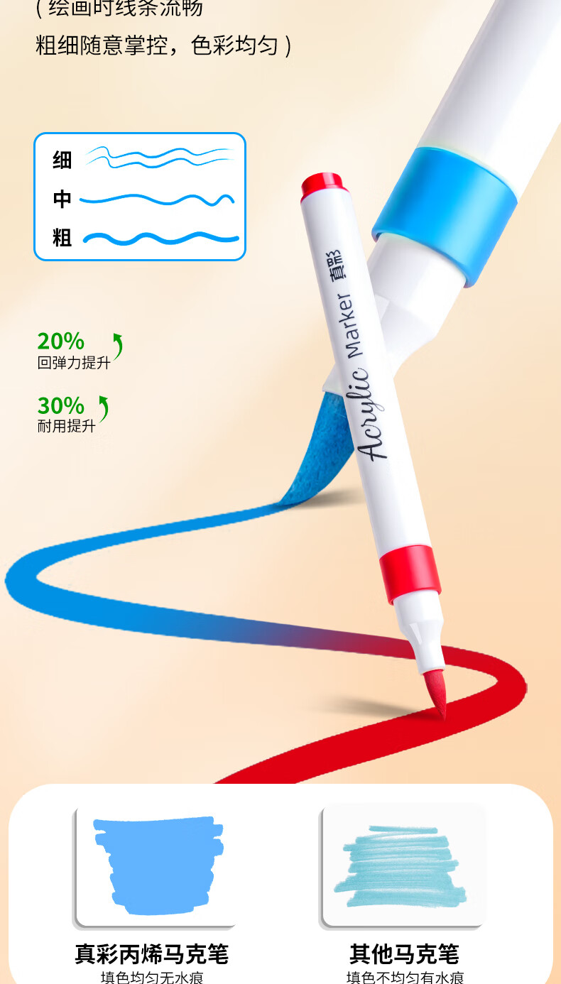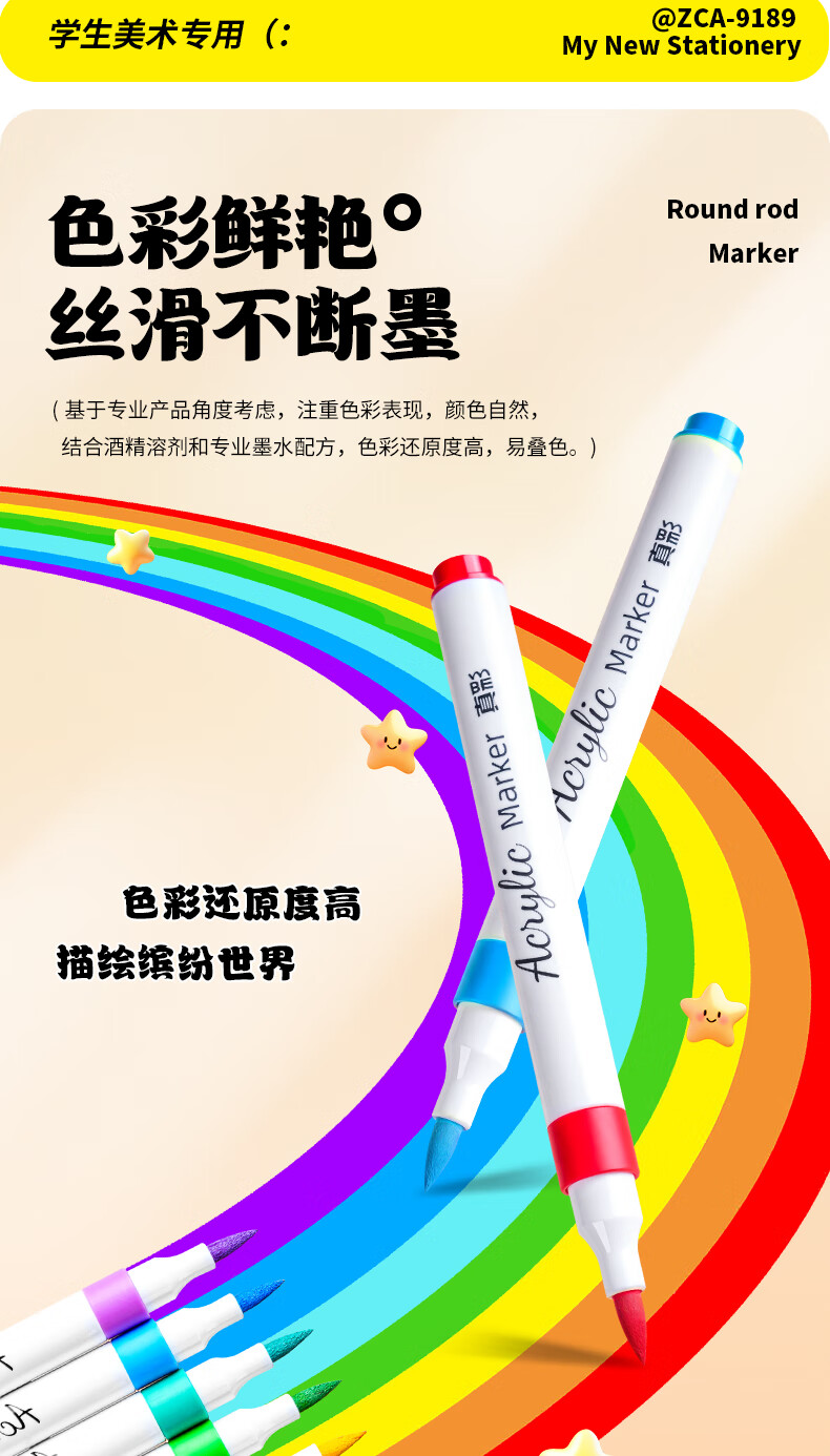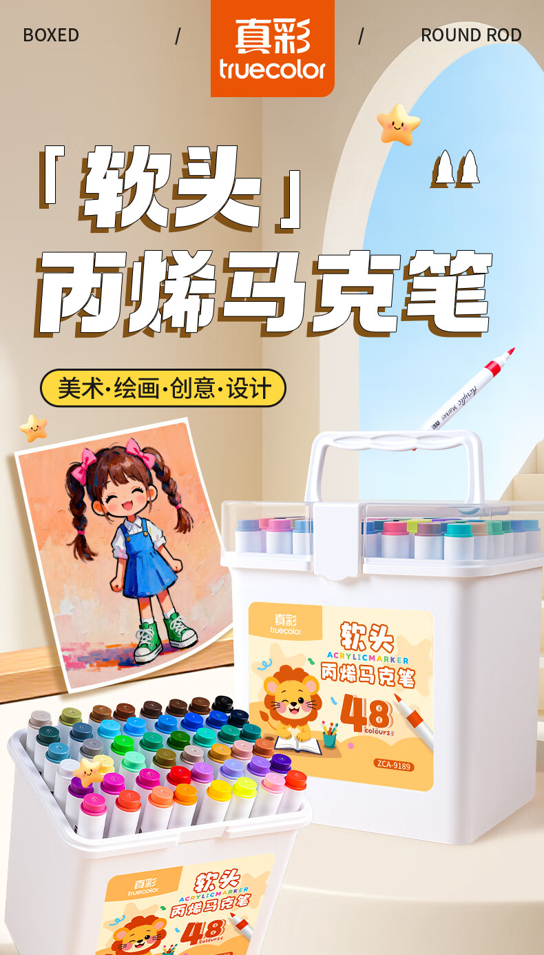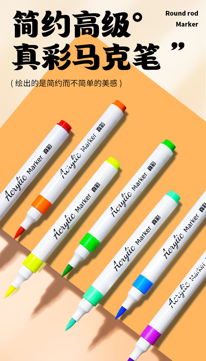 真彩(TRUECOLOR)12色丙烯软头马克笔小学生幼儿园儿童美术专用画笔不透色可叠色硬头可水洗无毒桶装涂鸦ZCA-9189