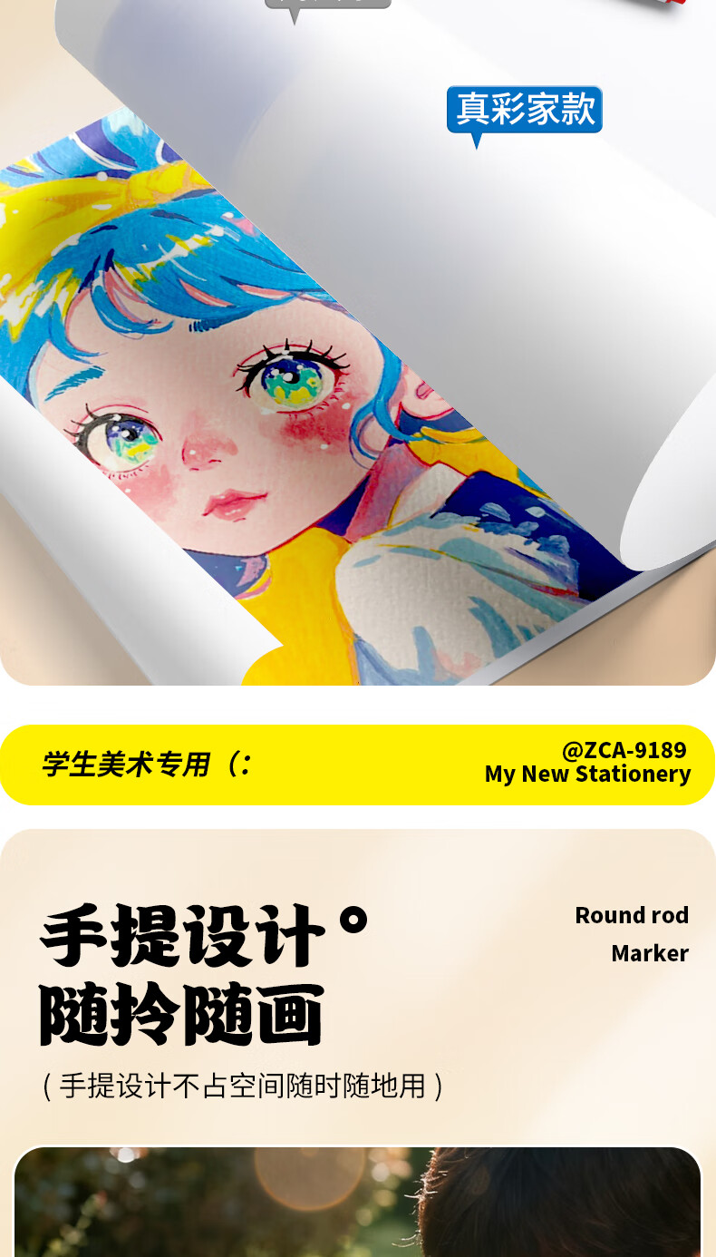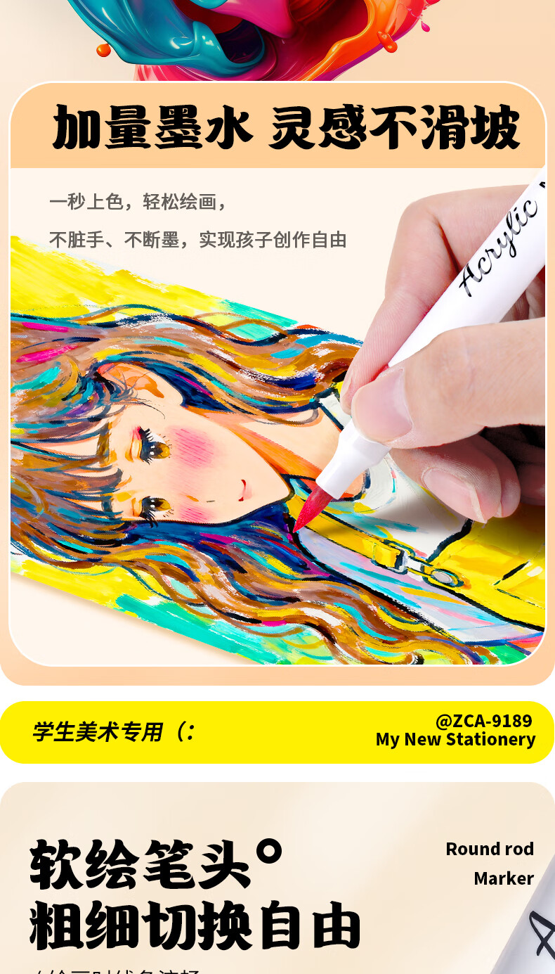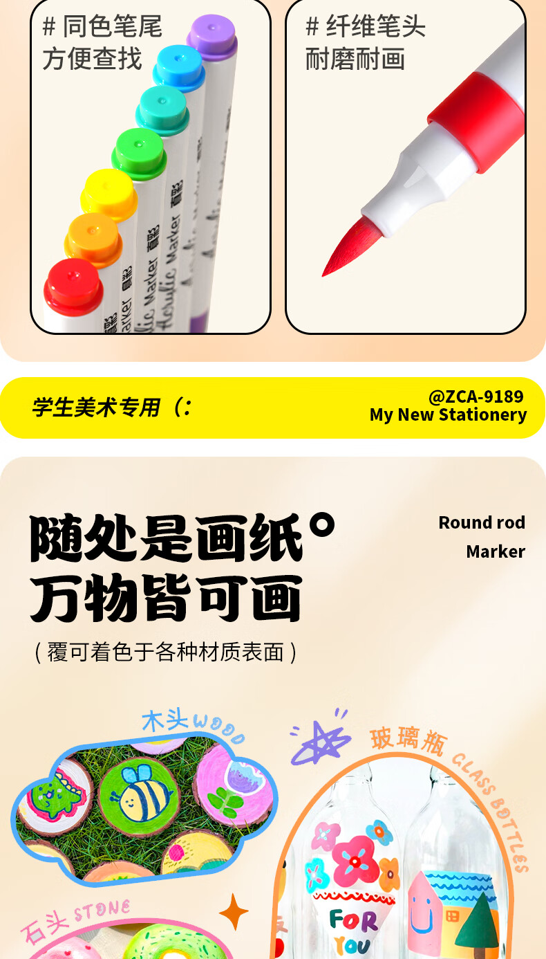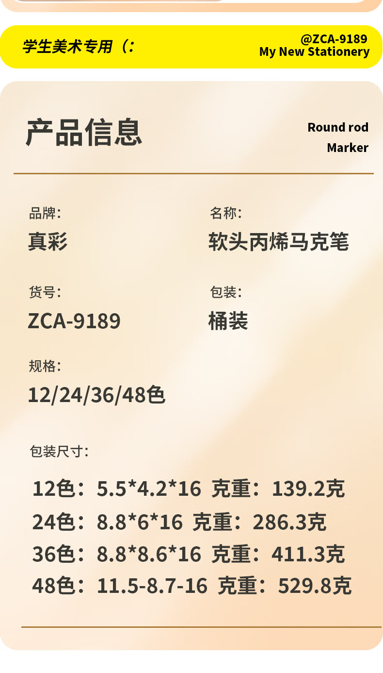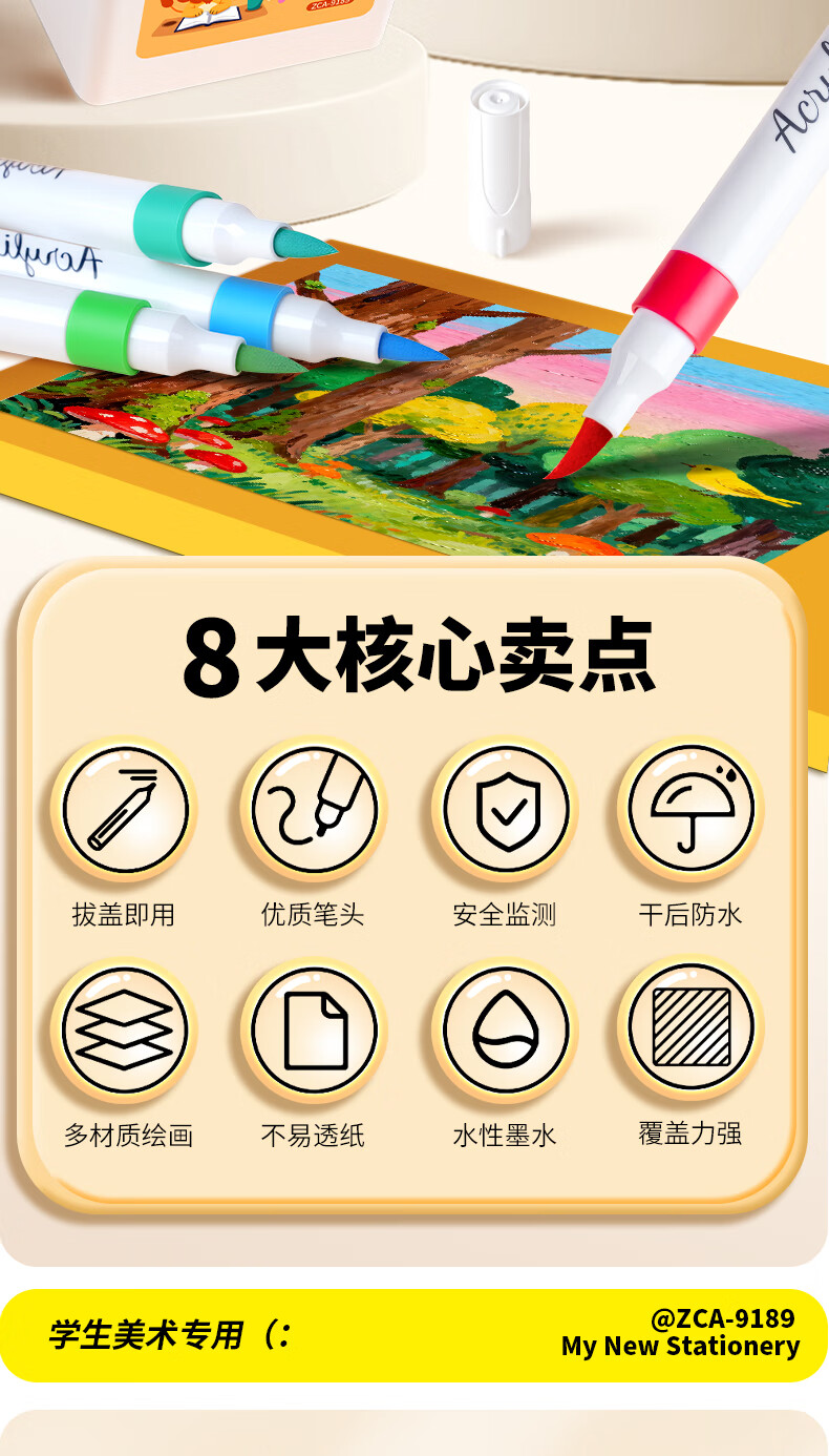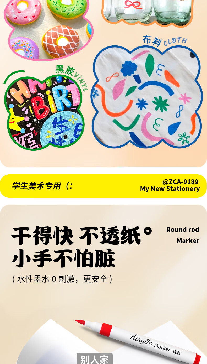 真彩(TRUECOLOR)12色丙烯软头马克笔小学生幼儿园儿童美术专用画笔不透色可叠色硬头可水洗无毒桶装涂鸦ZCA-9189