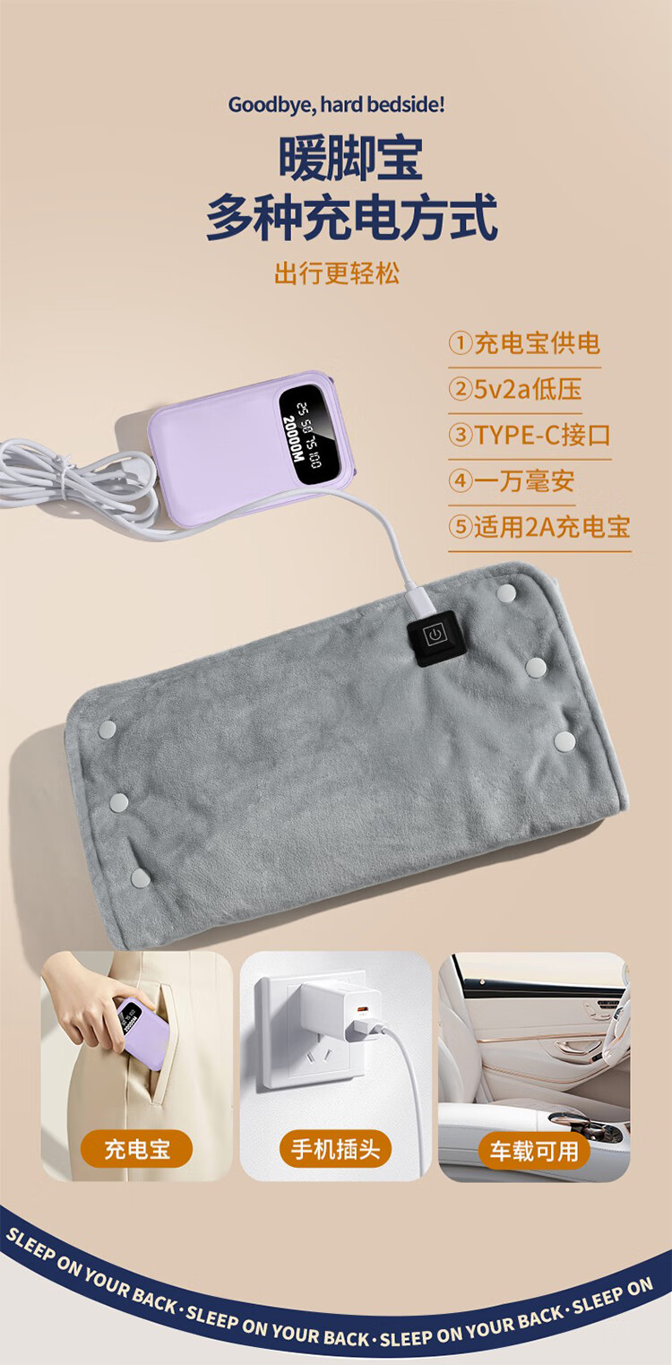 筏芯德国冬季石墨烯加热暖脚宝床上睡觉发热袋usb插电办公室暖脚垫 咖啡色—石墨烯加热暖脚宝