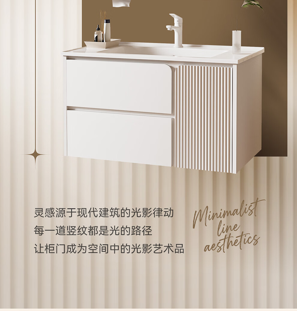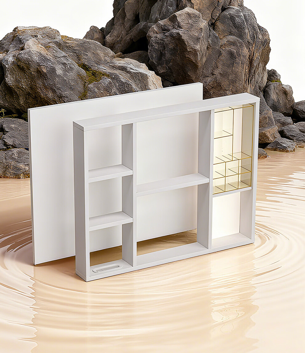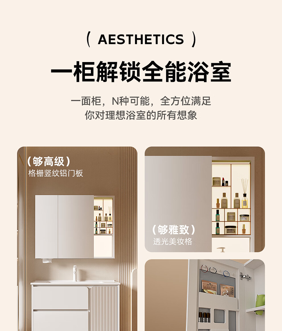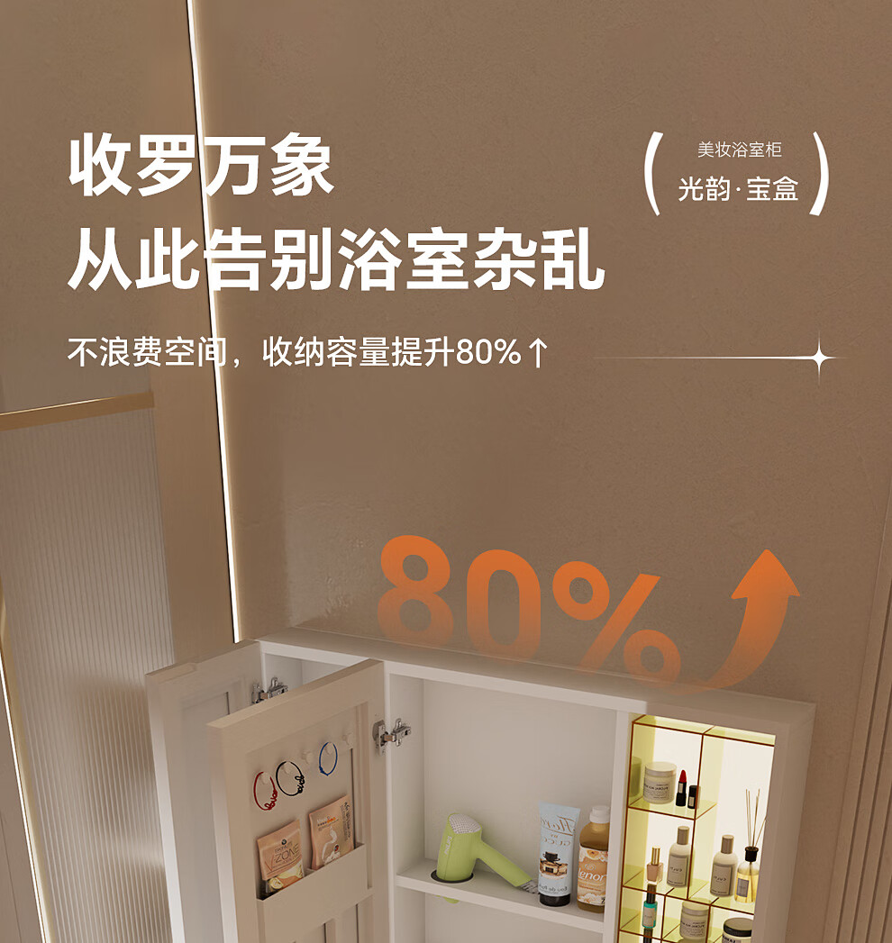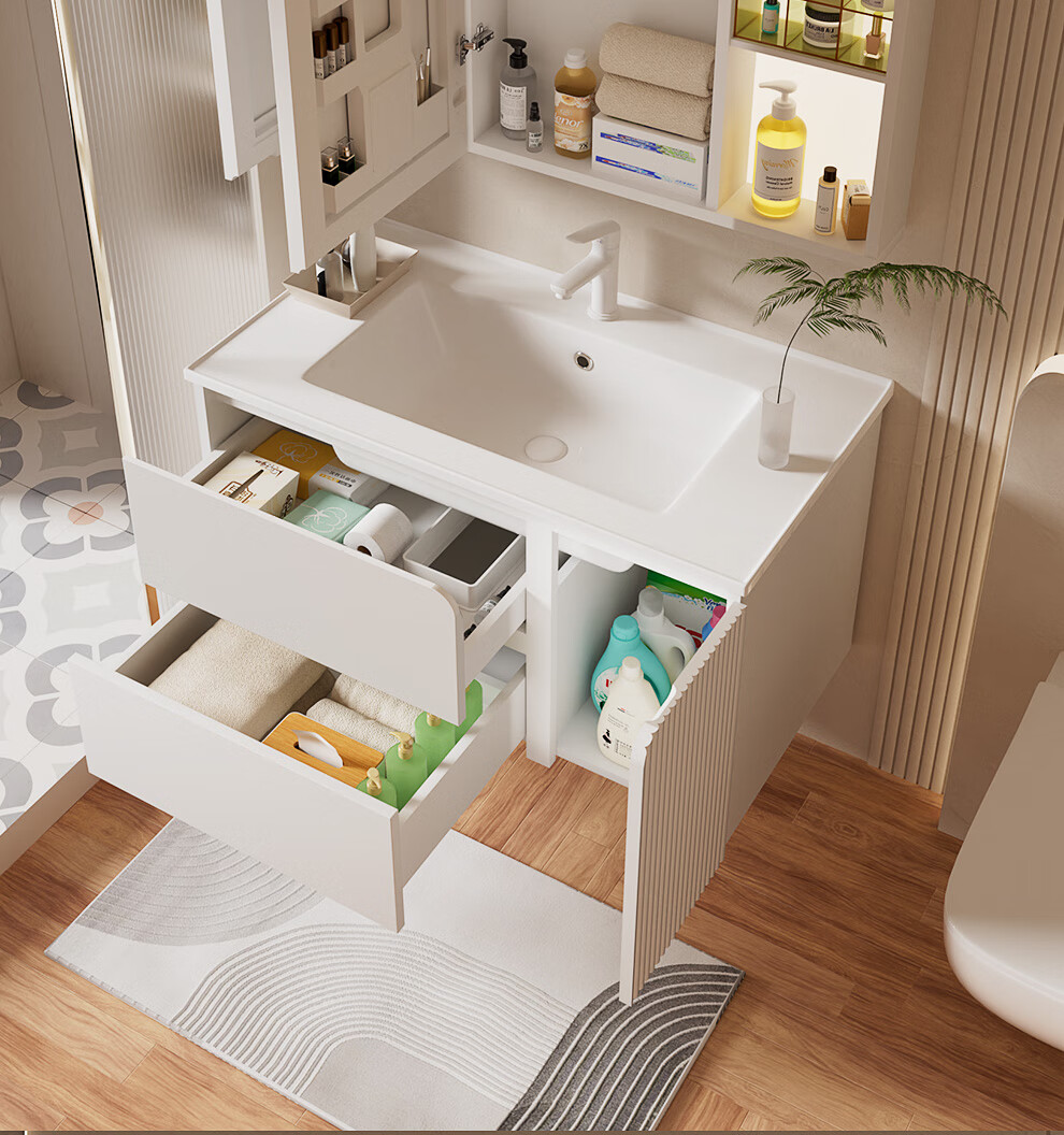 浪鲸(SSWW)卫浴简约风浴室柜陶瓷一体盆家用洗脸盆柜组合铝合金智能浴室柜 【宝盒系列】美妆置物格镜柜-80cm(白色) 不含龙头配件