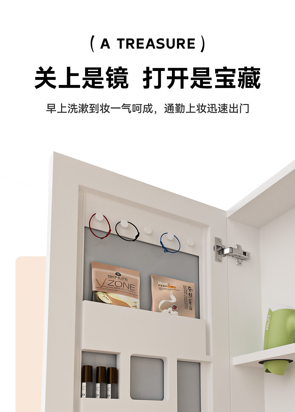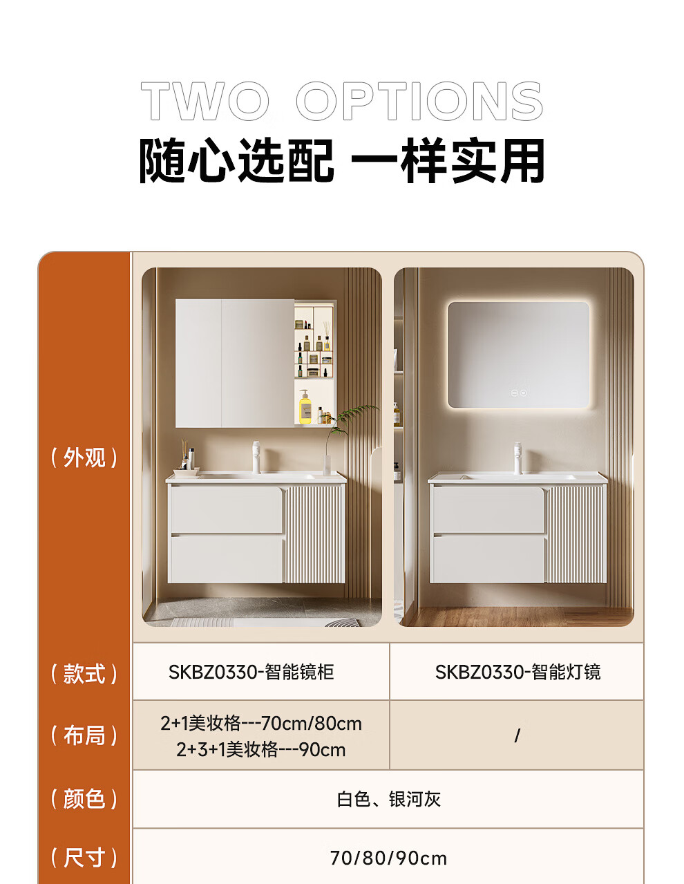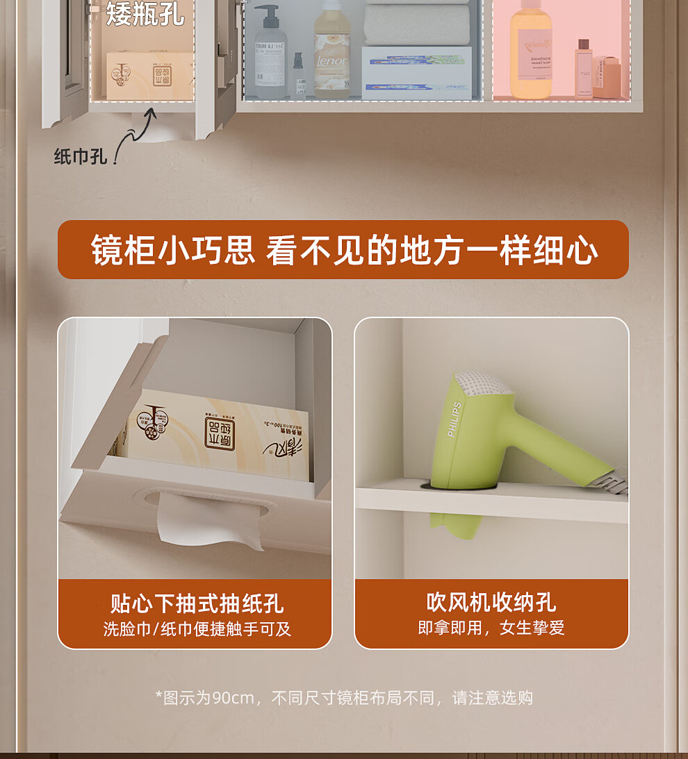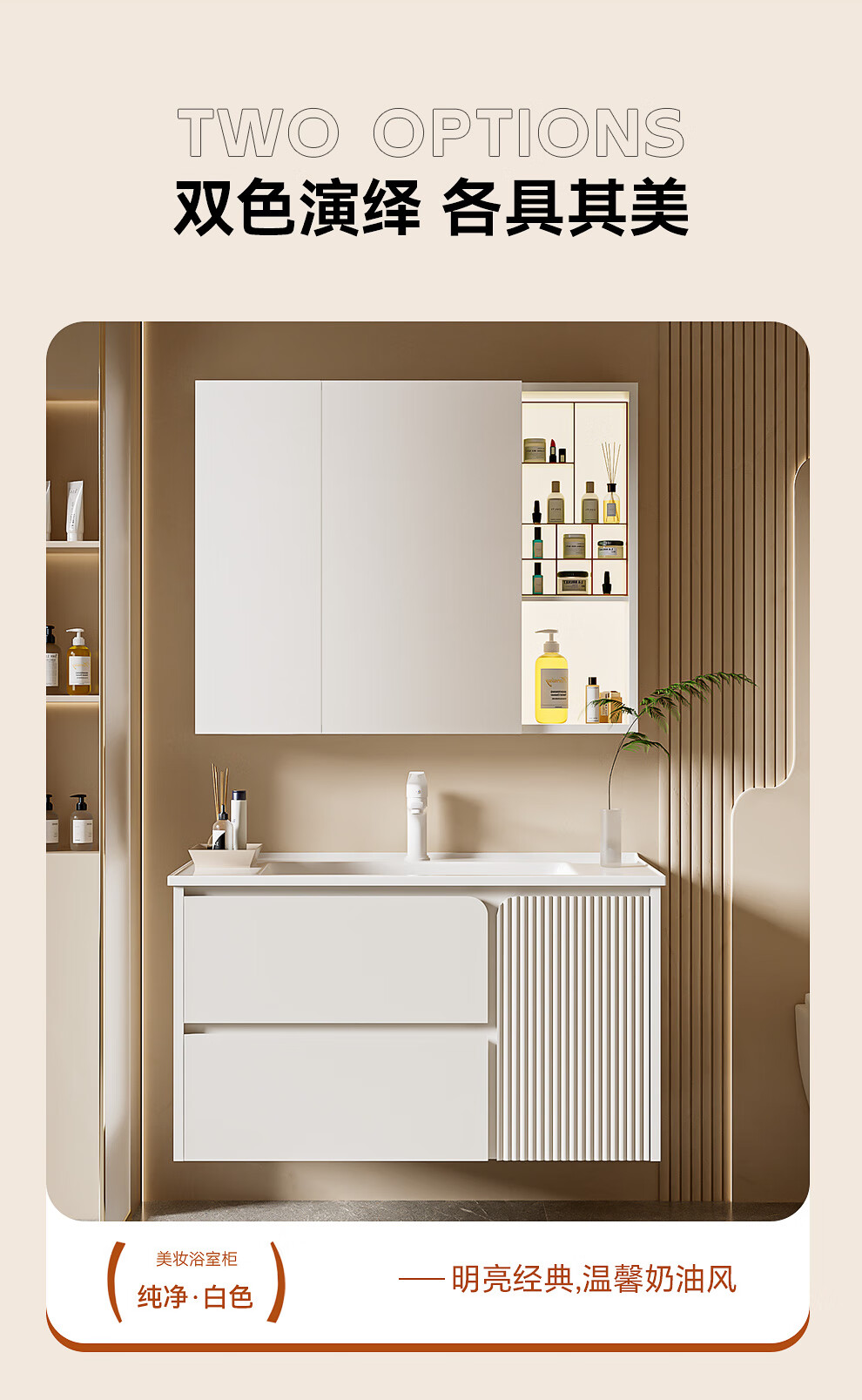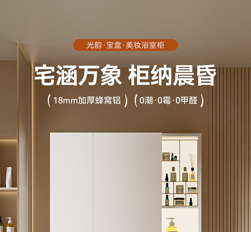 浪鲸(SSWW)卫浴简约风浴室柜陶瓷一体盆家用洗脸盆柜组合铝合金智能浴室柜 【宝盒系列】美妆置物格镜柜-80cm(白色) 不含龙头配件