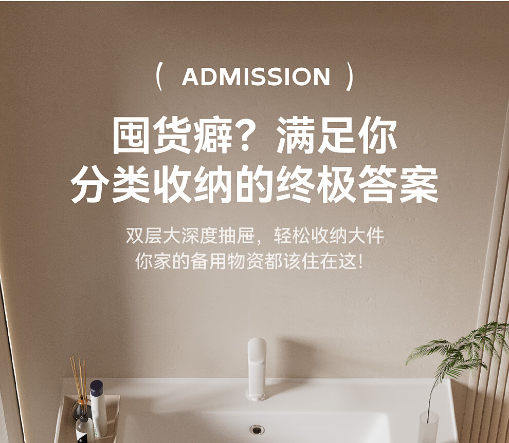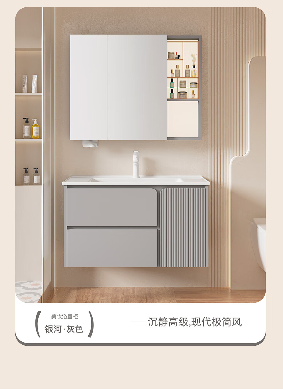 恒洁(HEGII)浴室柜E0级陶瓷一体盆折叠镜柜双抽BC2522(BM2201-75Q卡其灰智能