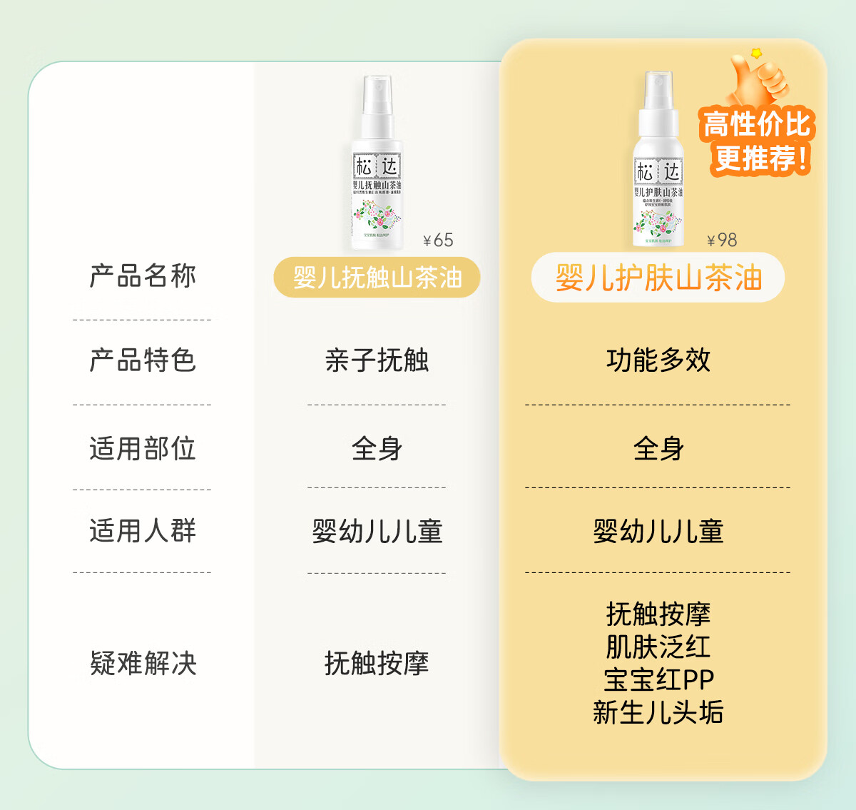 松达婴儿抚触油山茶油儿童润肤油按摩油护肤保湿秋冬季宝宝润肤油 【清爽不油】抚触山茶油50ml