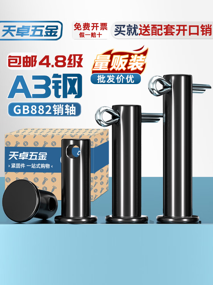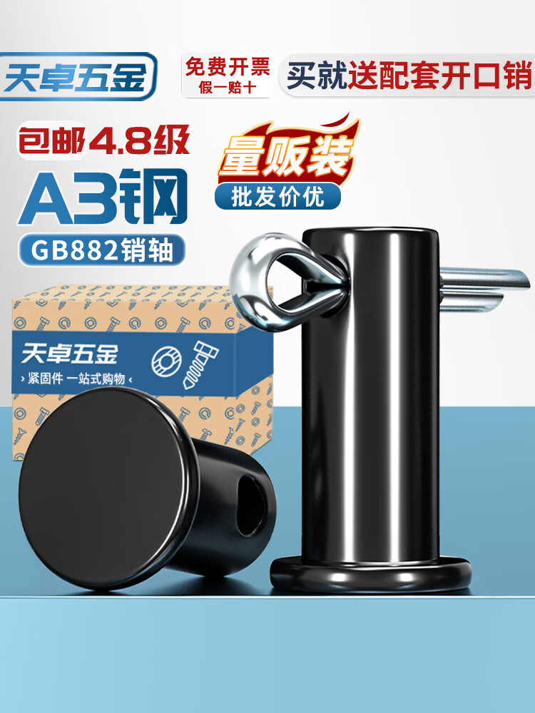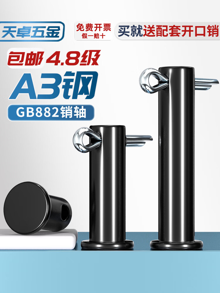 天卓五金GB882铁黑色带孔销轴平头带孔销钉插销A3定位销MM5M6M8M10M12-M30 M4*10(80套)