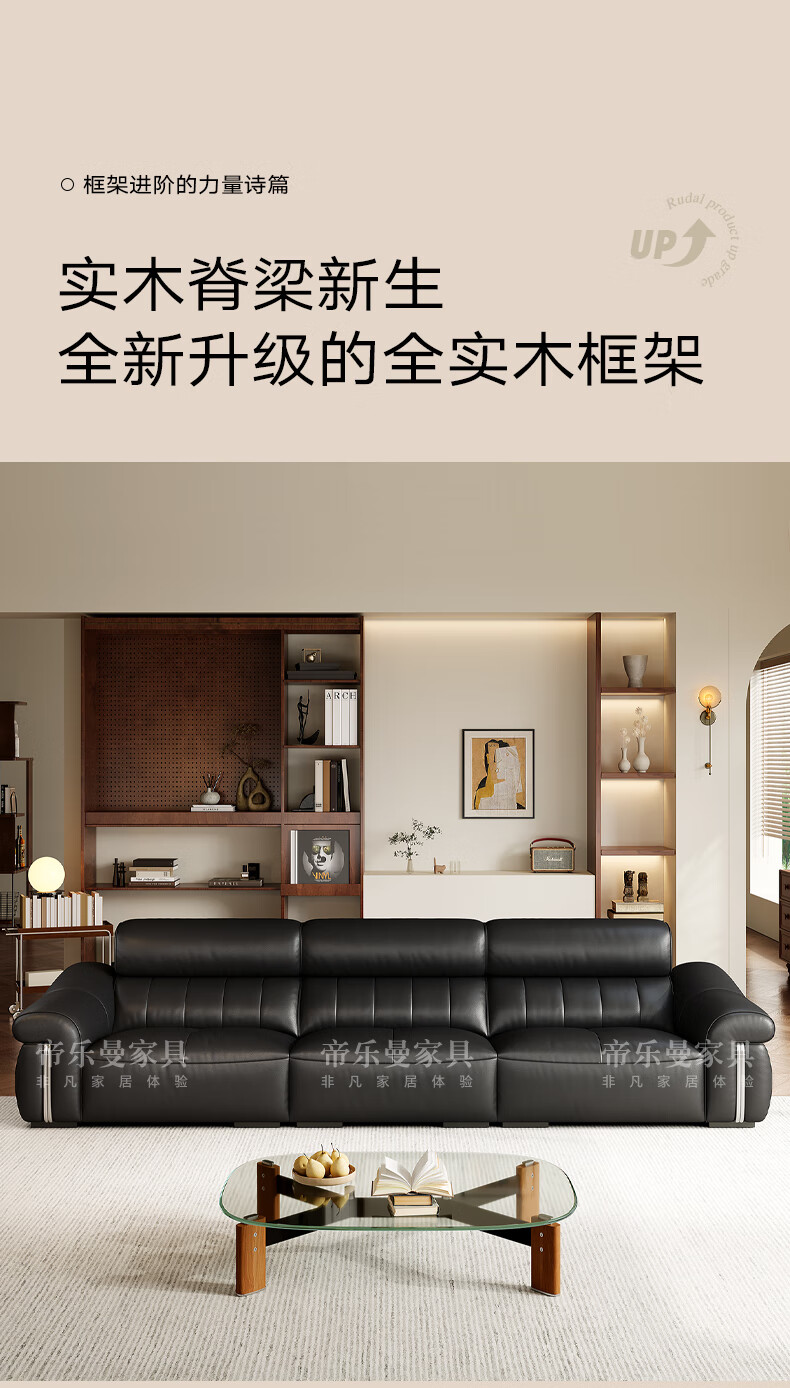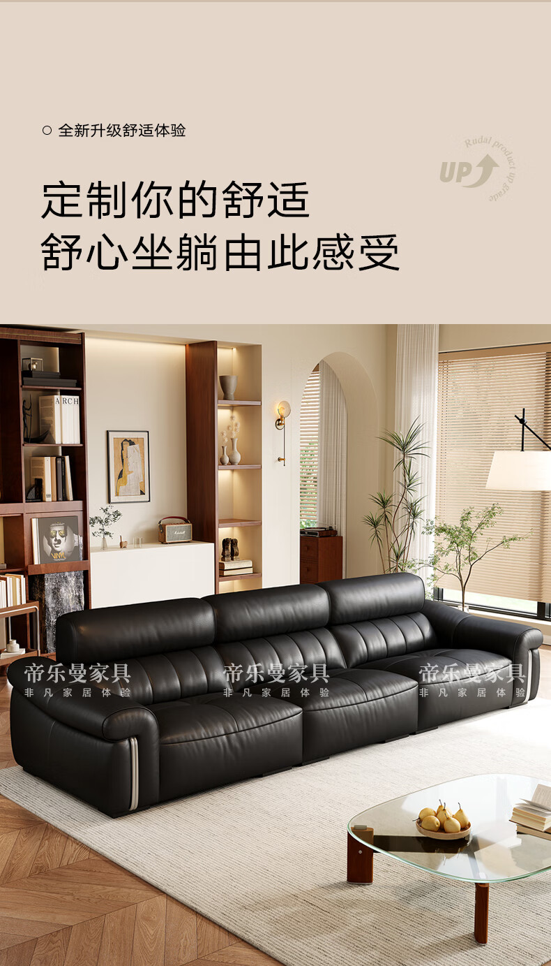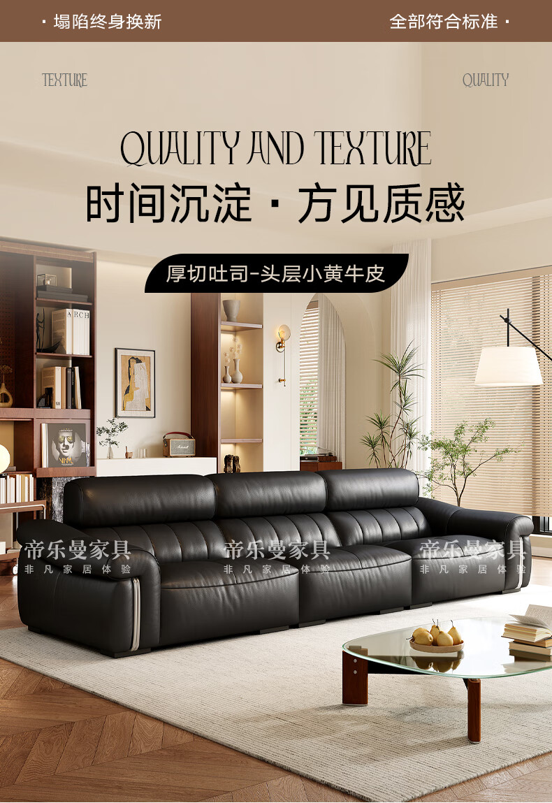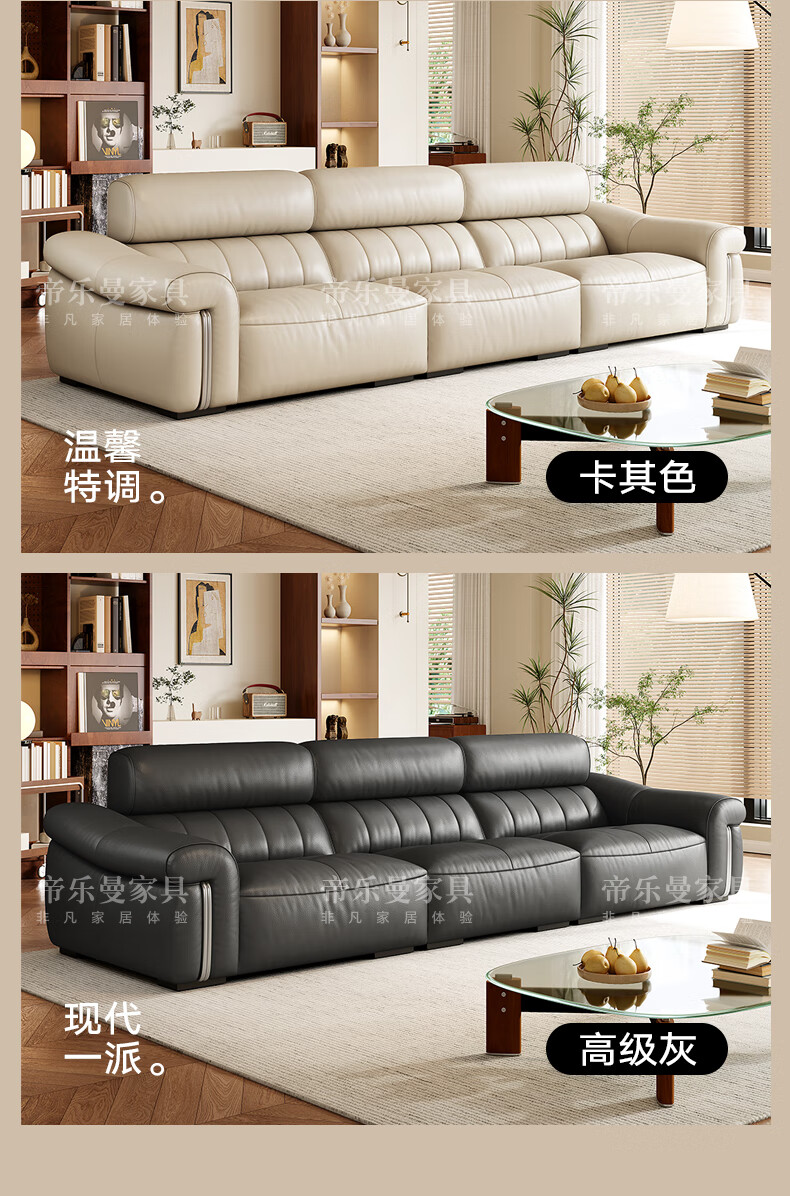 帝乐曼意式极简大黑牛真皮沙发客厅202新款小户型简约皮艺直排佛山沙发 3.6米多人位【重磅迭代 第七代磐石框架】 【全真皮】3.0mm进口头层真皮