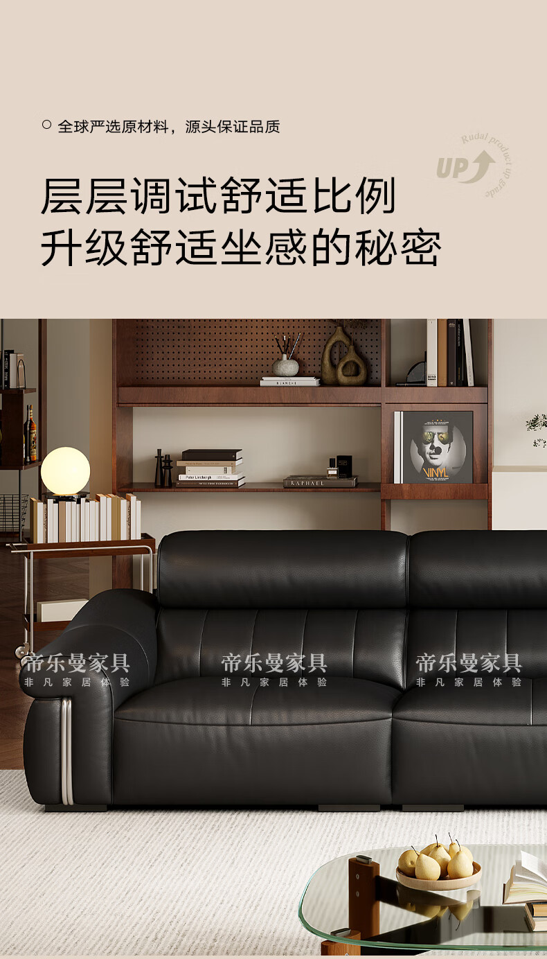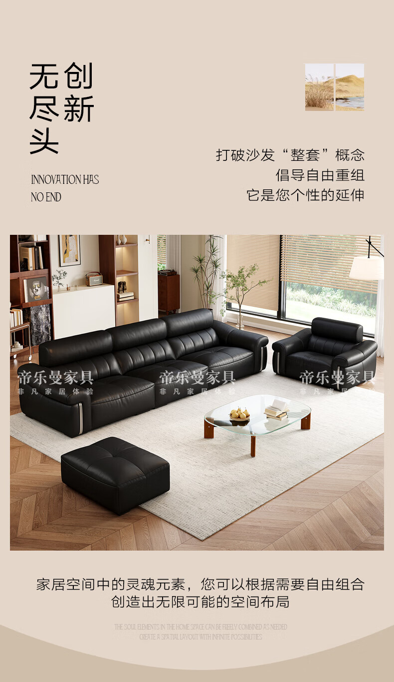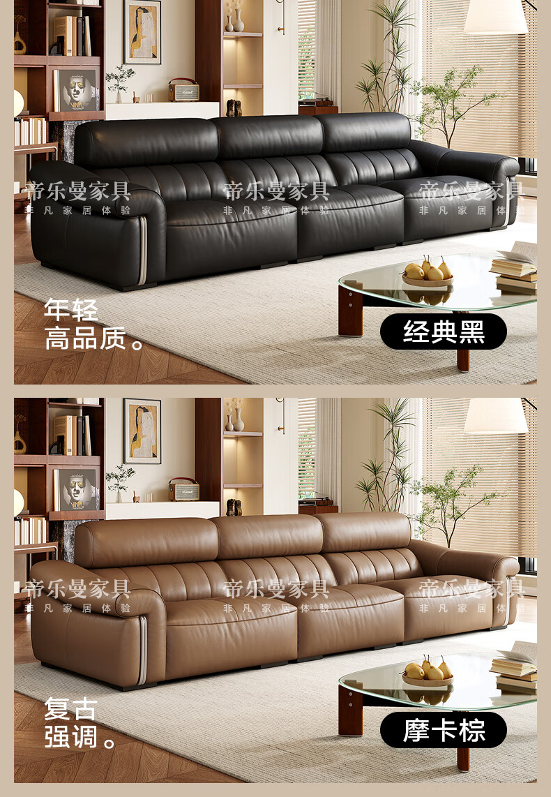 帝乐曼意式极简大黑牛真皮沙发客厅202新款小户型简约皮艺直排佛山沙发 3.6米多人位【重磅迭代 第七代磐石框架】 【全真皮】3.0mm进口头层真皮