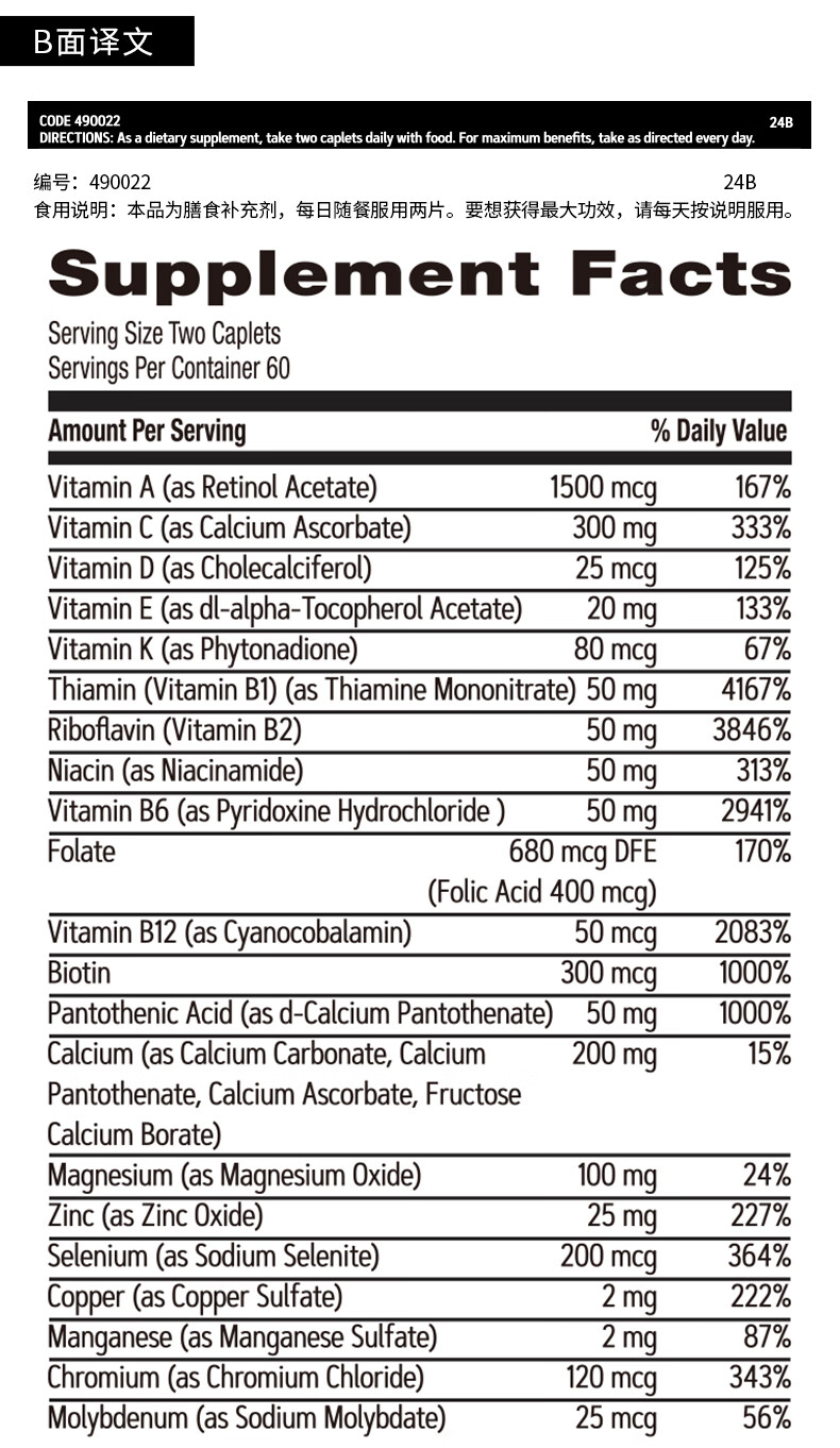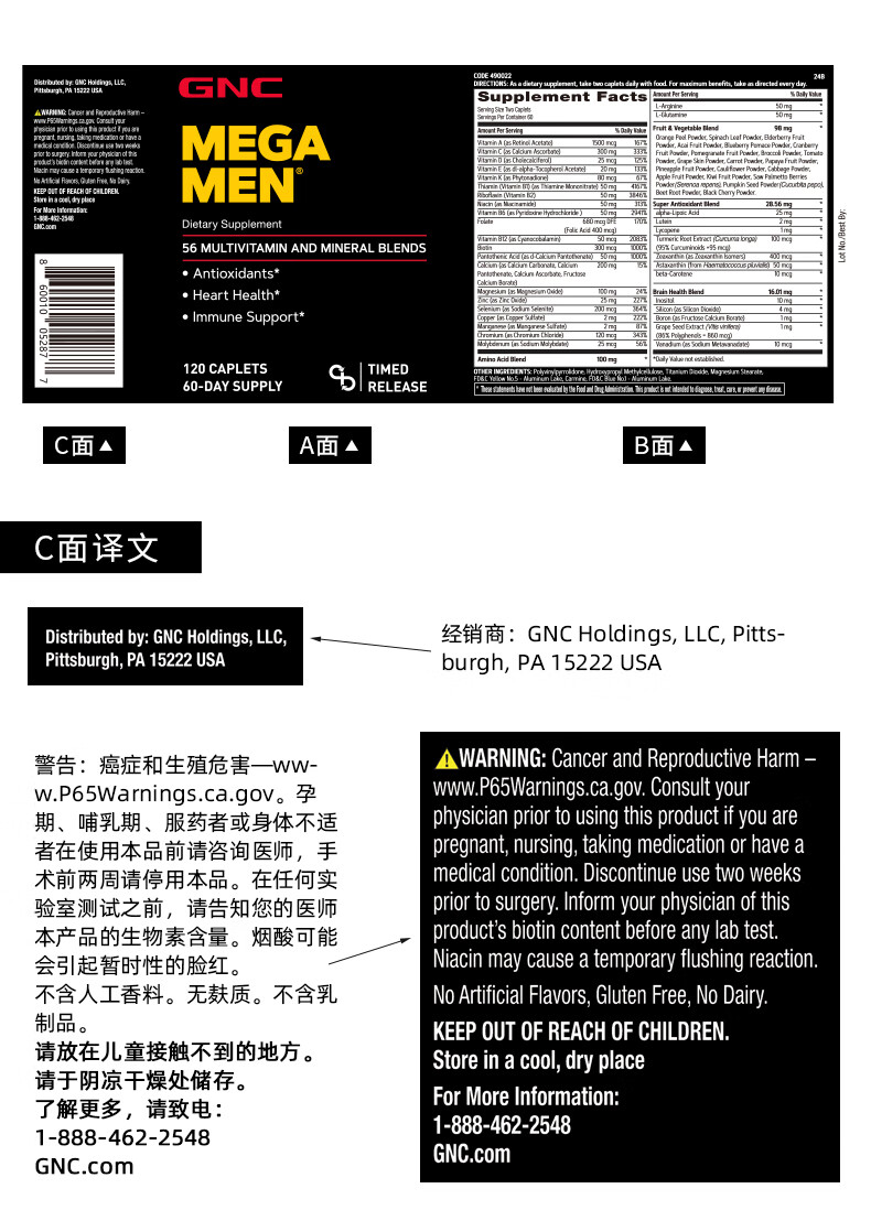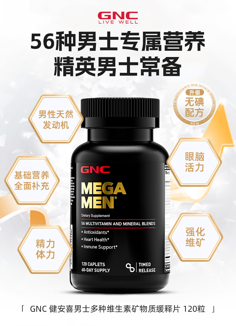 GNC健安喜男士多种复合维生素矿物质缓释片 富含56种营养均衡补充 男性56种营养素 120粒/瓶