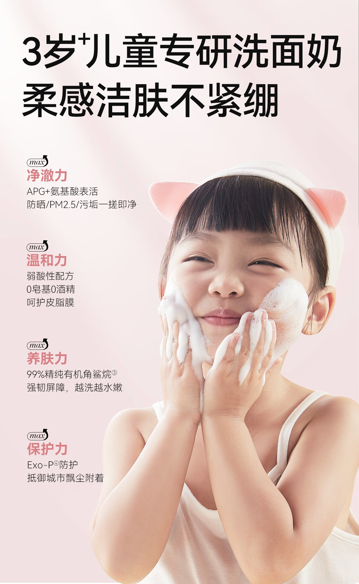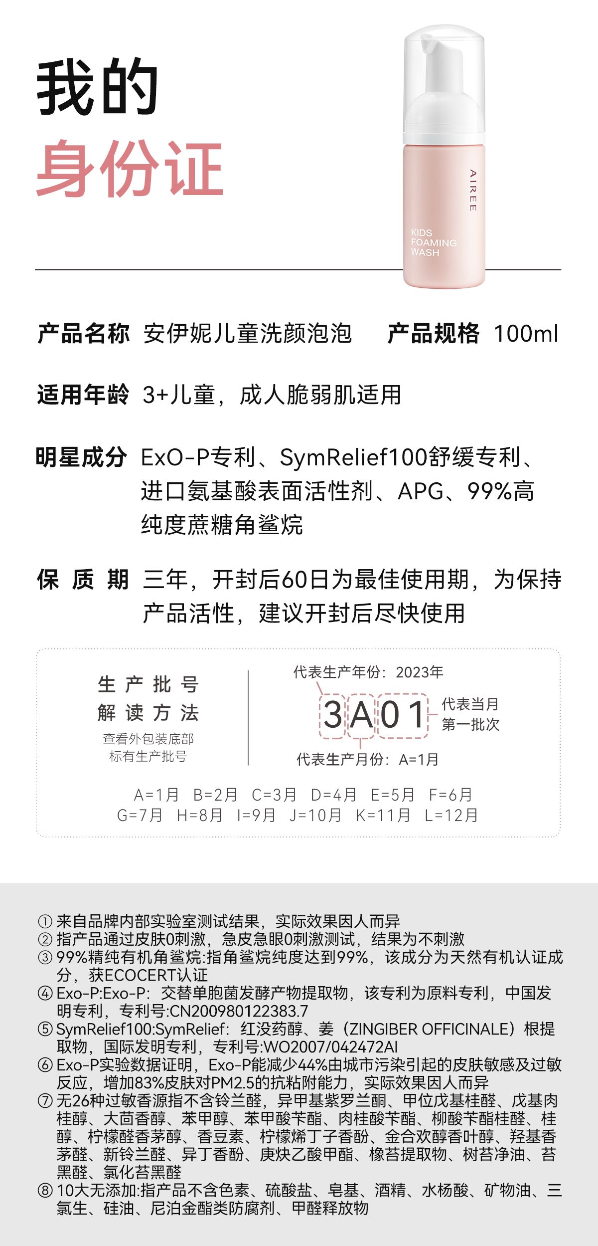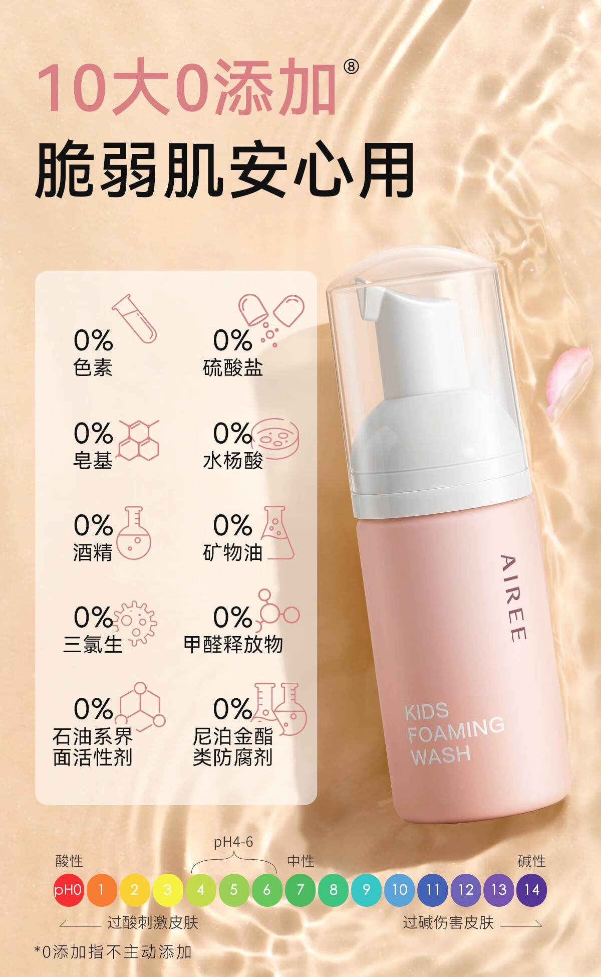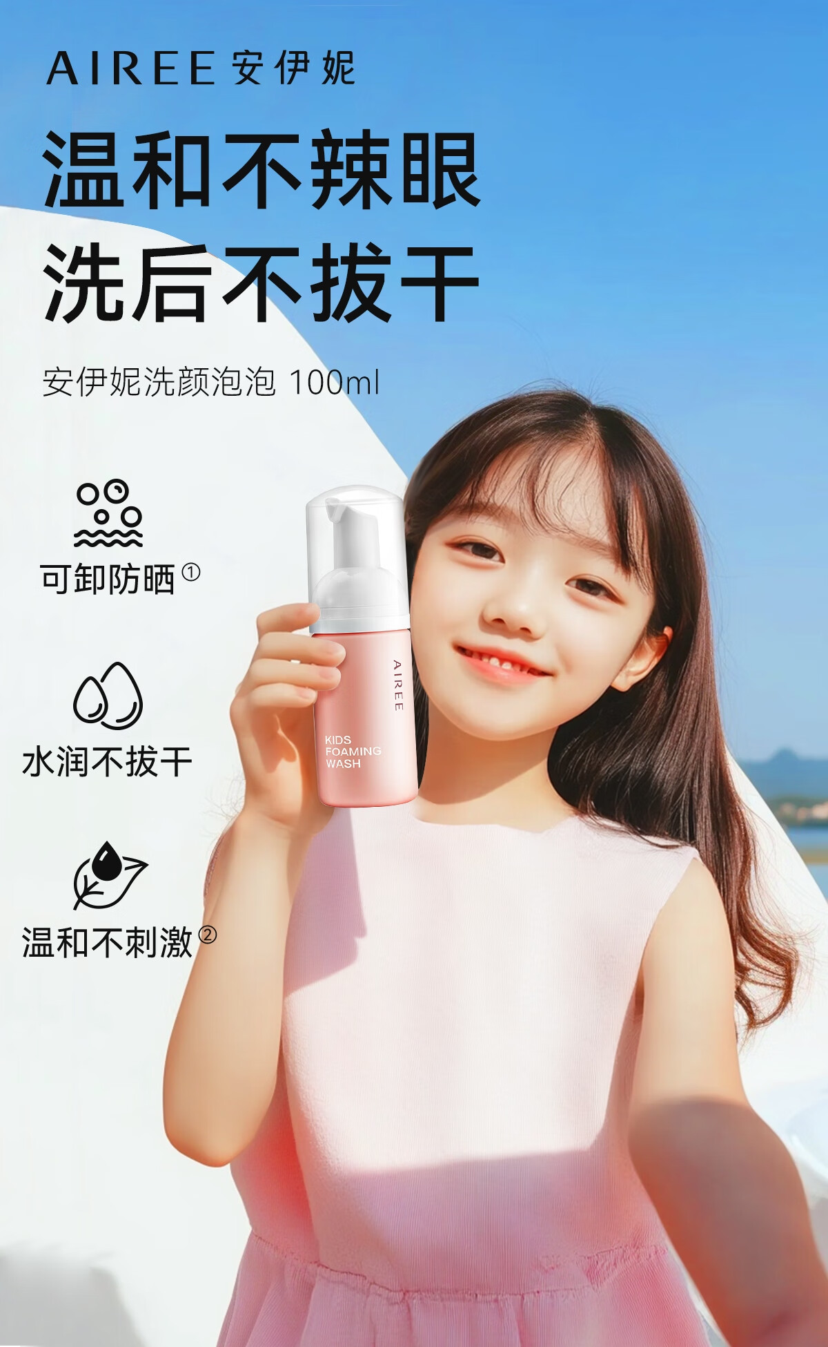 安伊妮(AIREE)【临期品】儿童洗面奶卸防晒泡泡洁面温和不刺激眼睛无泪配方 【有效期 26年6月11日】洁面泡泡100ml