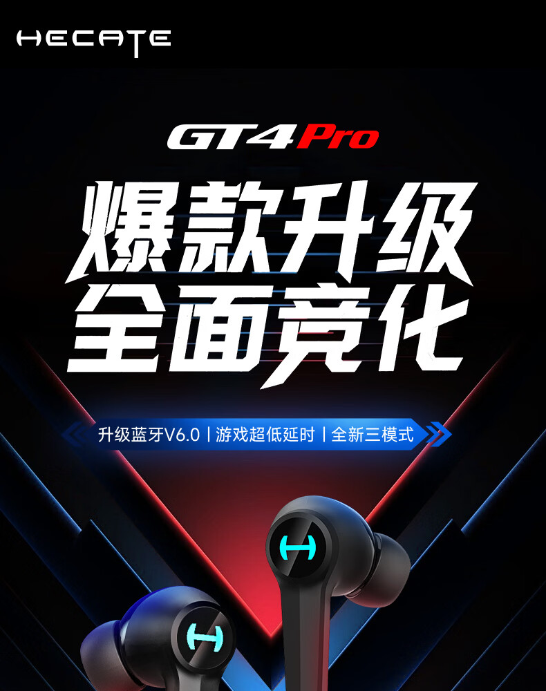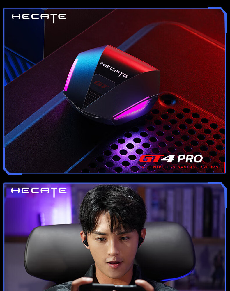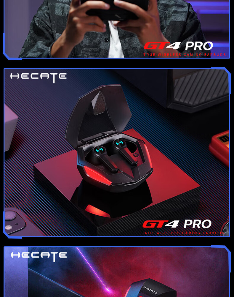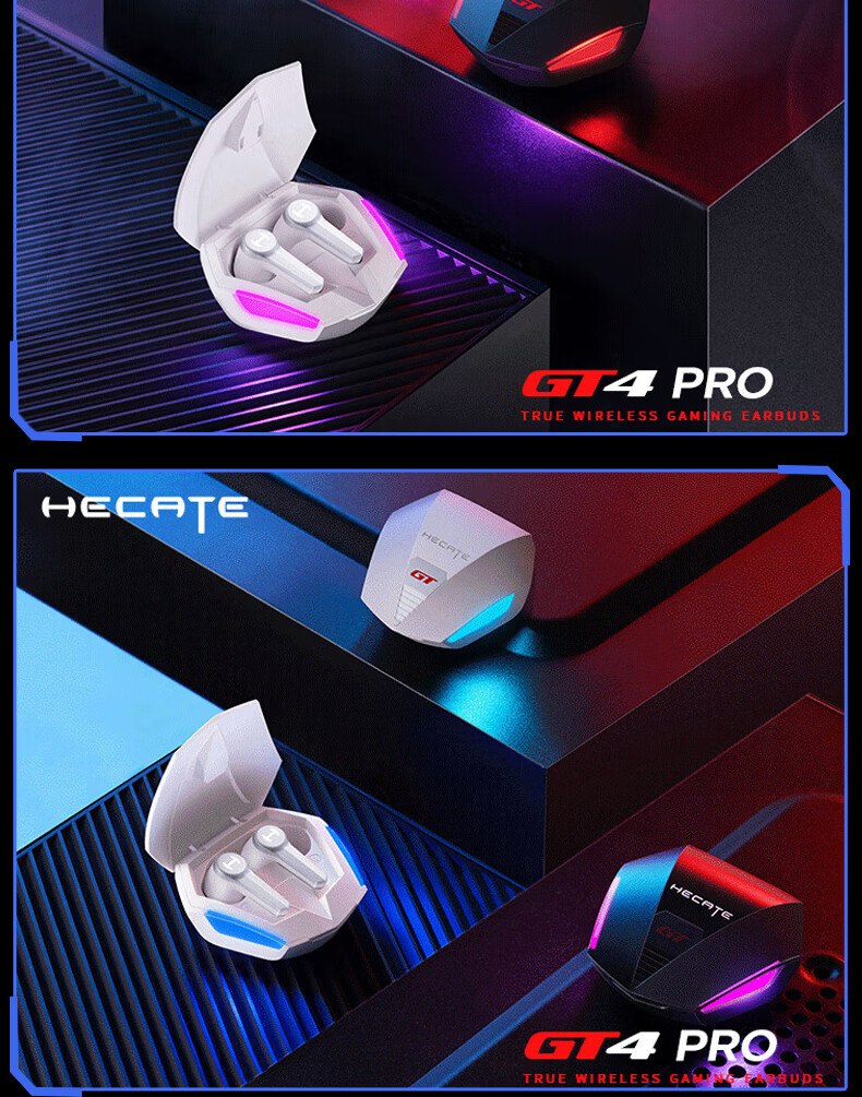 漫步者(EDIFIER)HECATE【45MS无感延迟】GT4 Pro电竞游戏专用低延迟真无线蓝牙耳机降噪入耳式运动适用于苹果华为 战斗黑+雷神锤耳机套