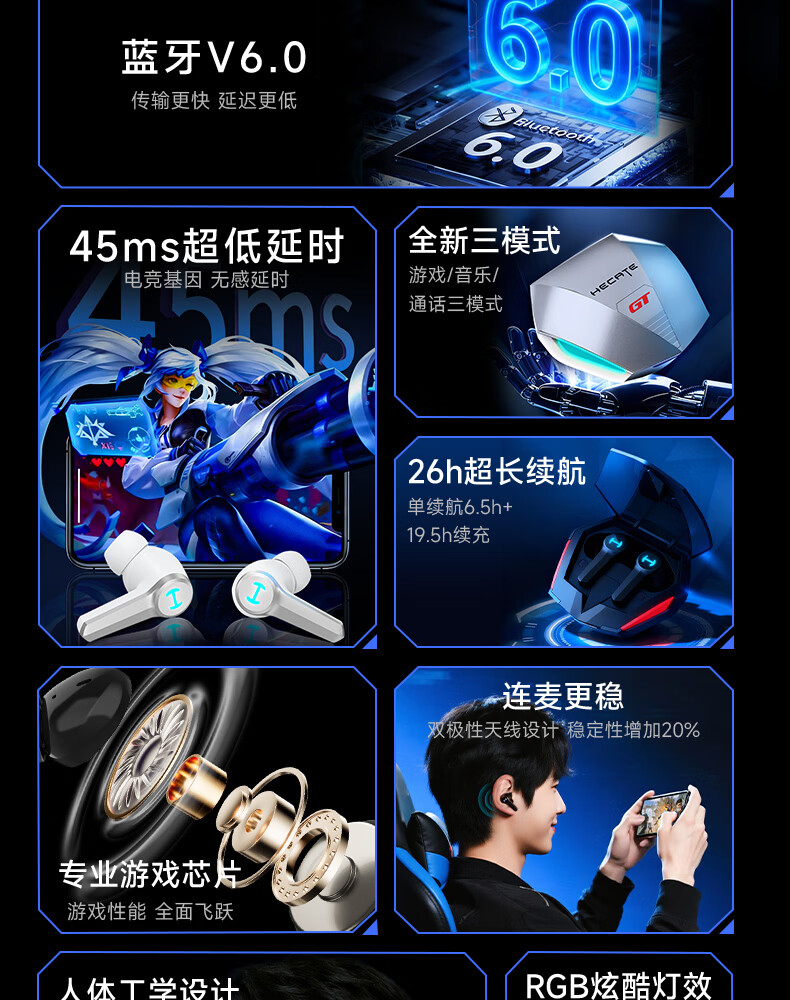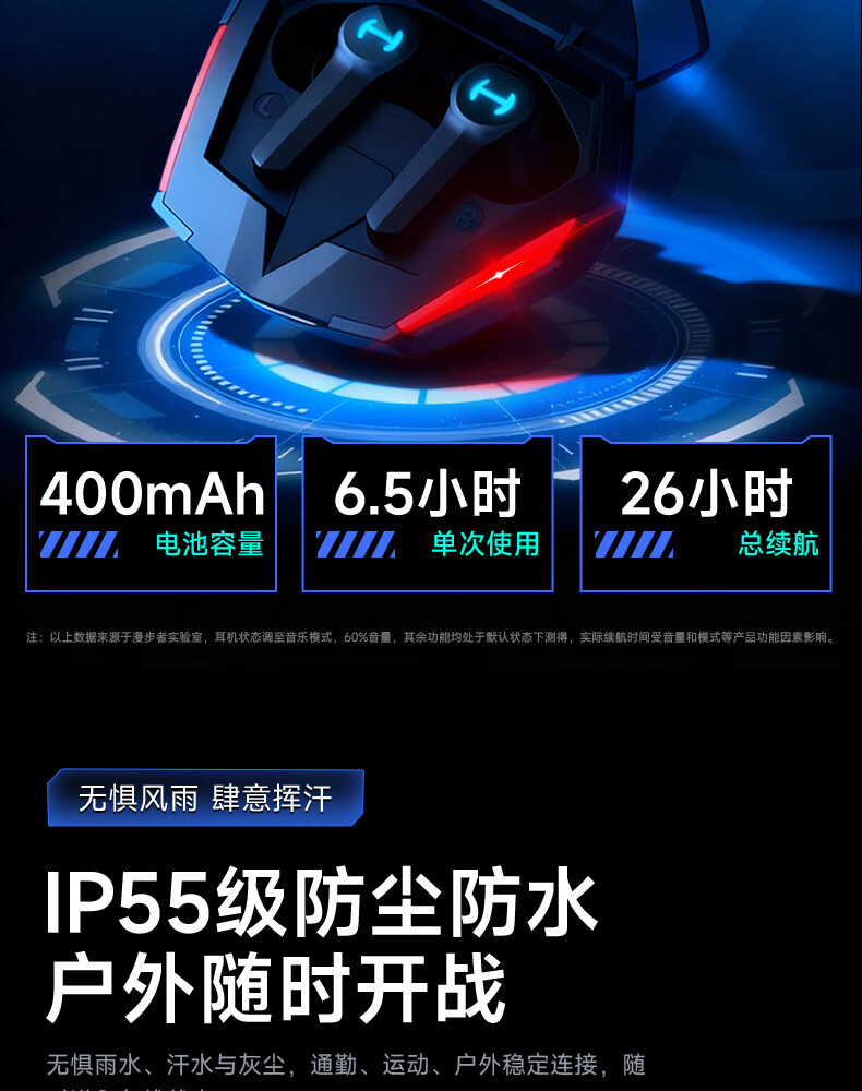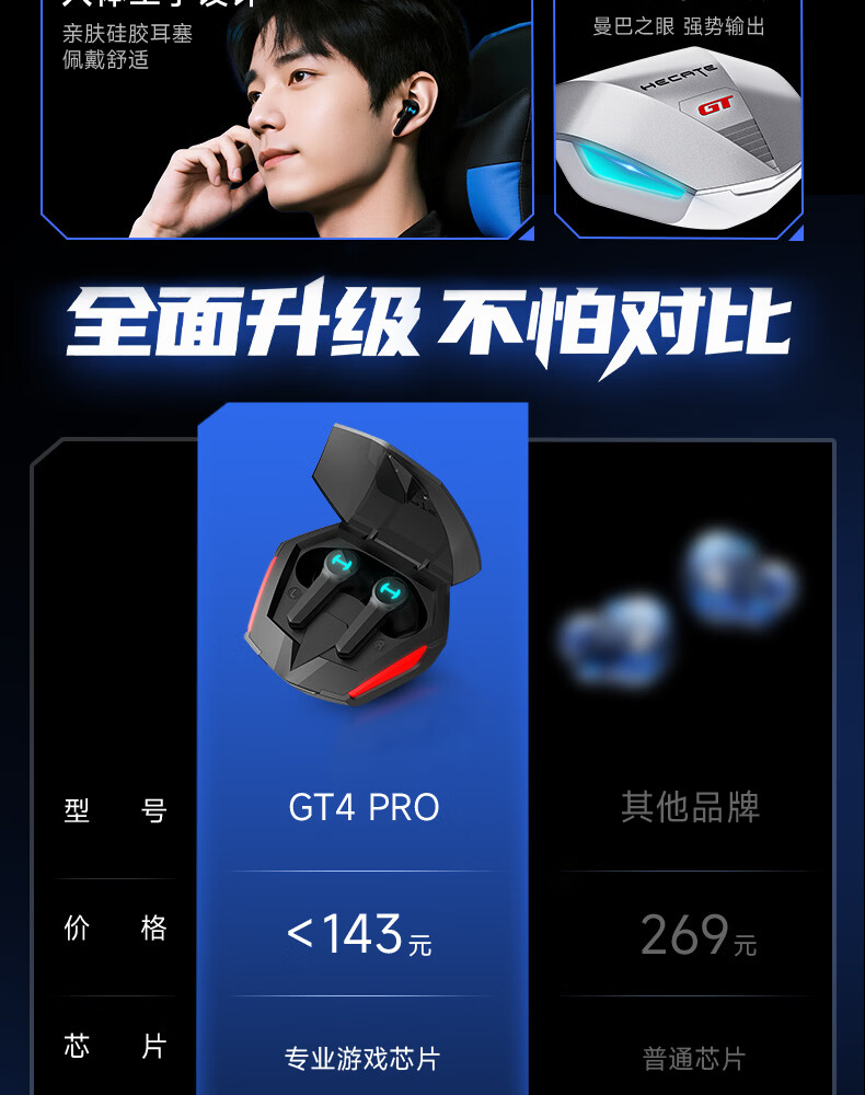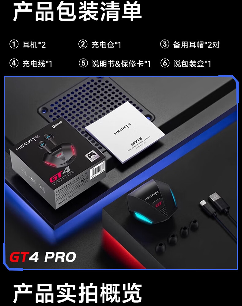 漫步者(EDIFIER)HECATE【45MS无感延迟】GT4 Pro电竞游戏专用低延迟真无线蓝牙耳机降噪入耳式运动适用于苹果华为 战斗黑+雷神锤耳机套