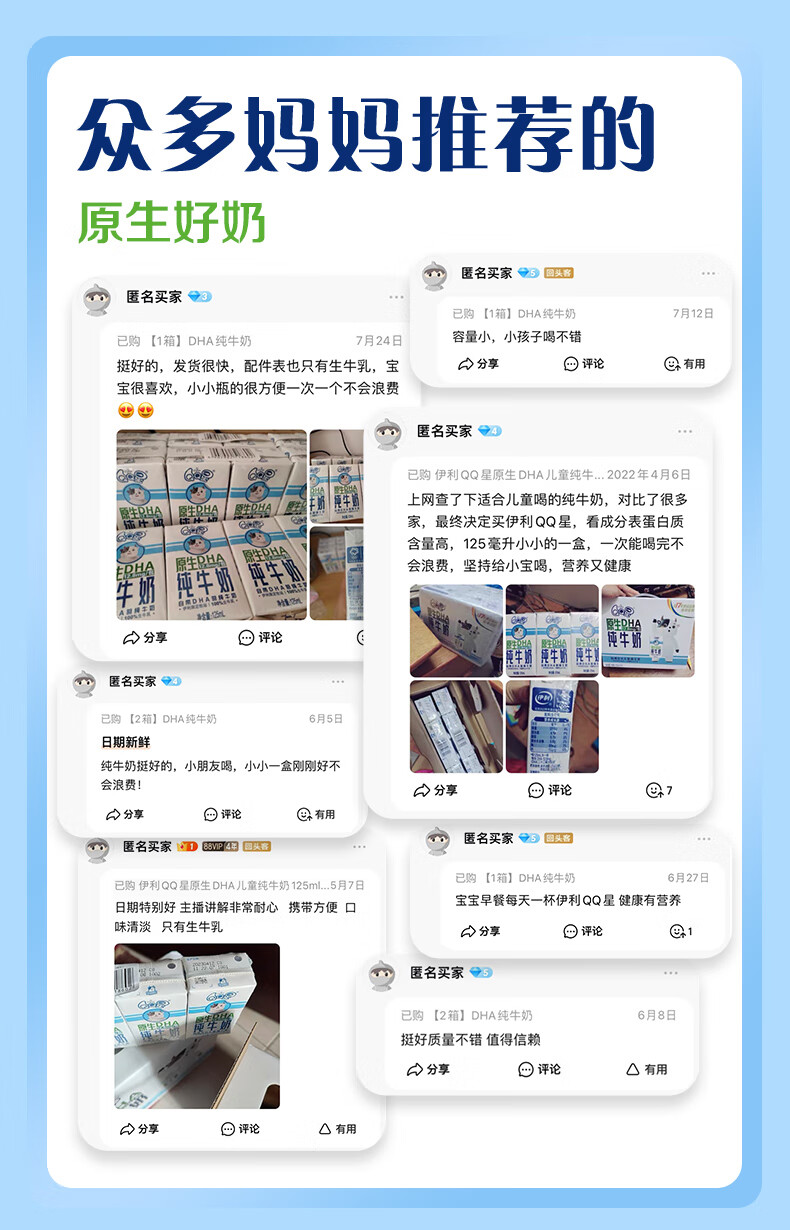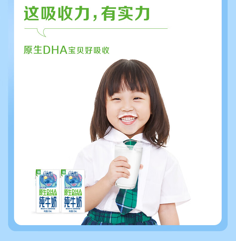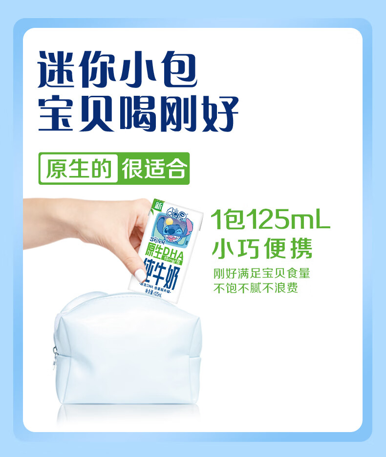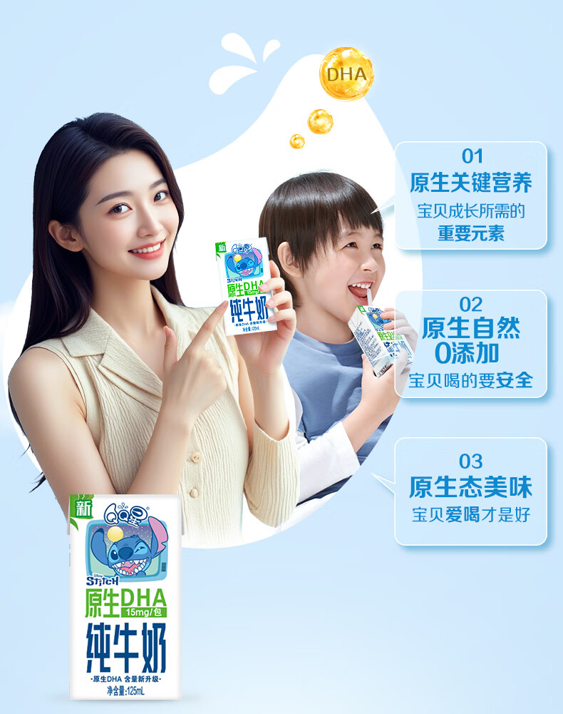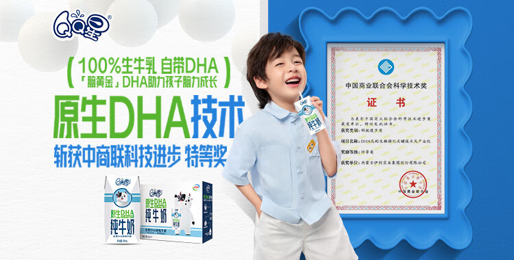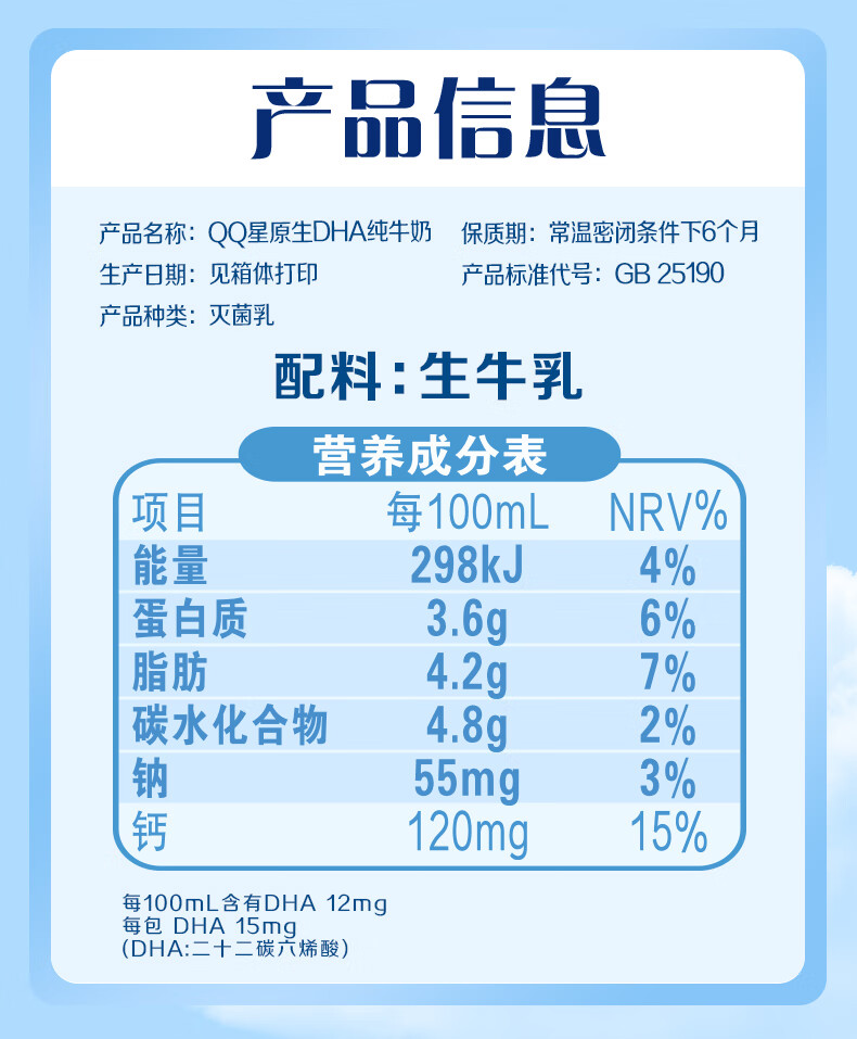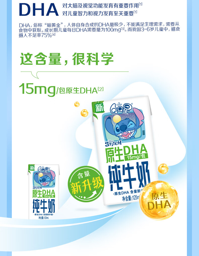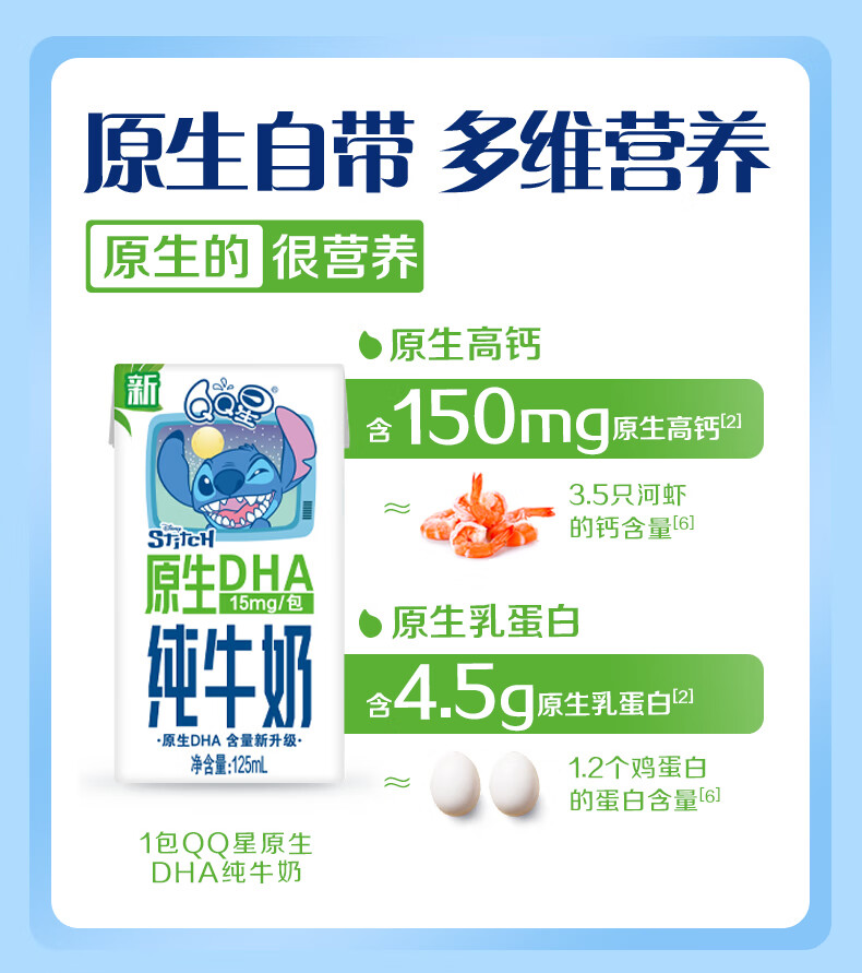 QQ星伊利原生DHA儿童牛奶125ml*16盒/箱 高钙儿童牛奶