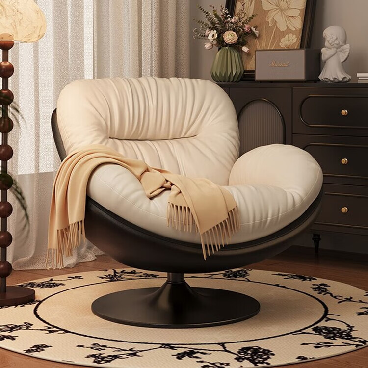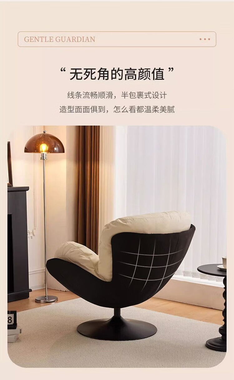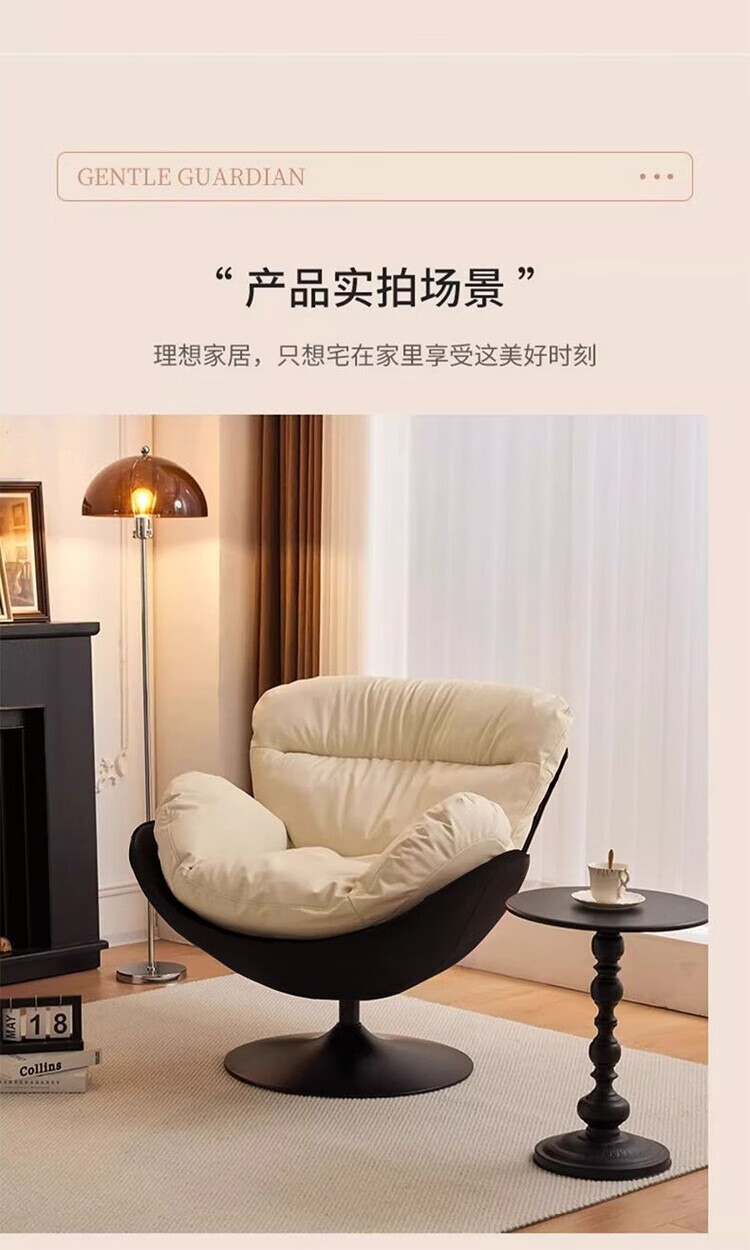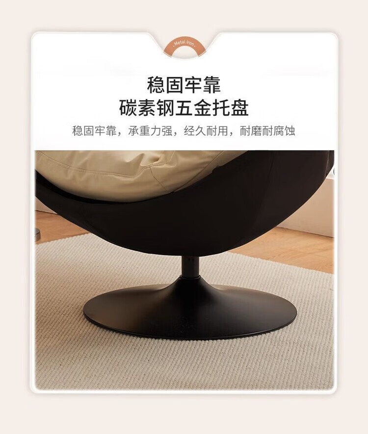 柏帝奇懒人沙发旋转蛋壳椅摇摇椅躺椅阳台家用可睡觉休闲单人沙发窝窝椅 高级黑拼白色(公仔棉)
