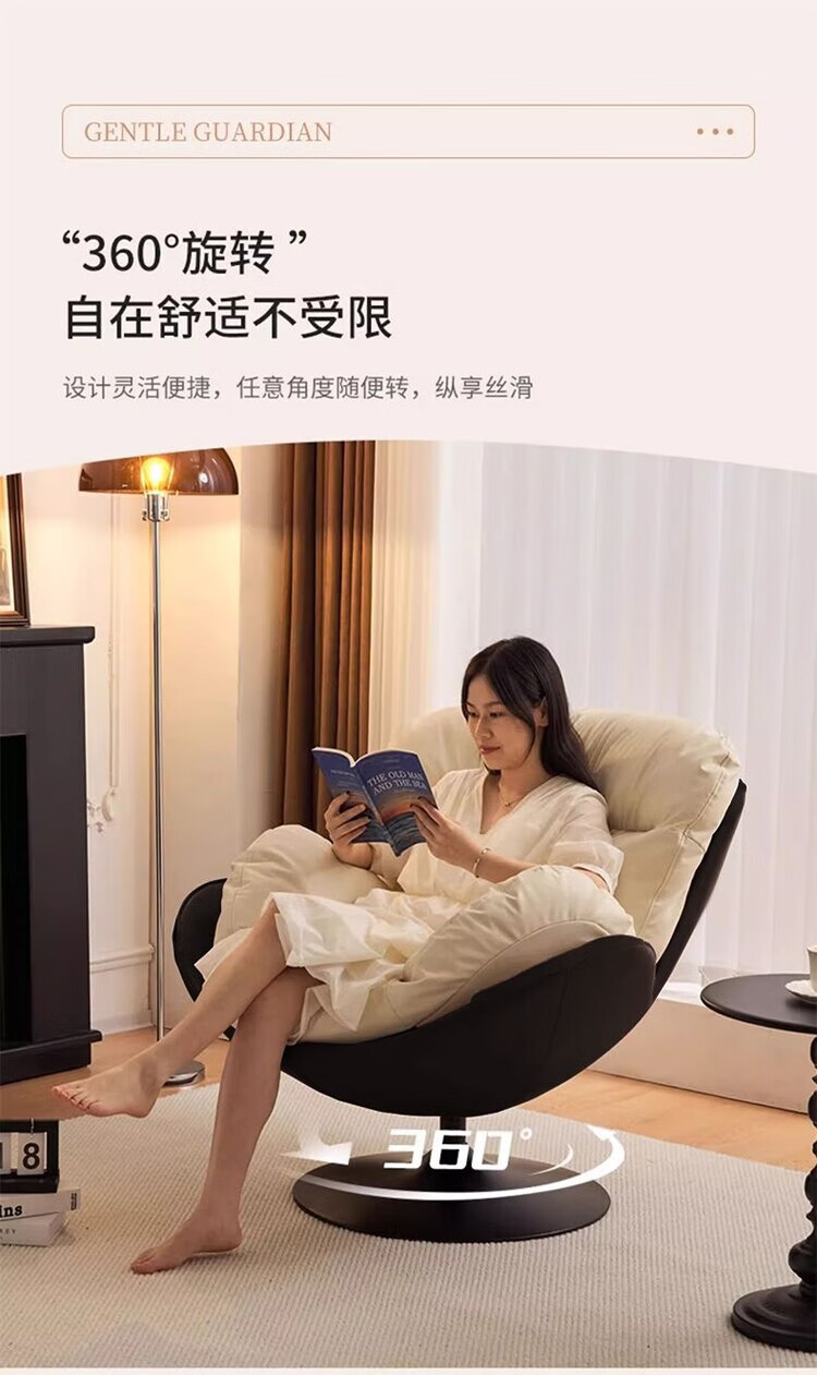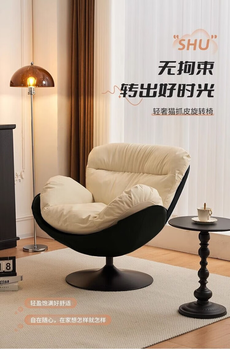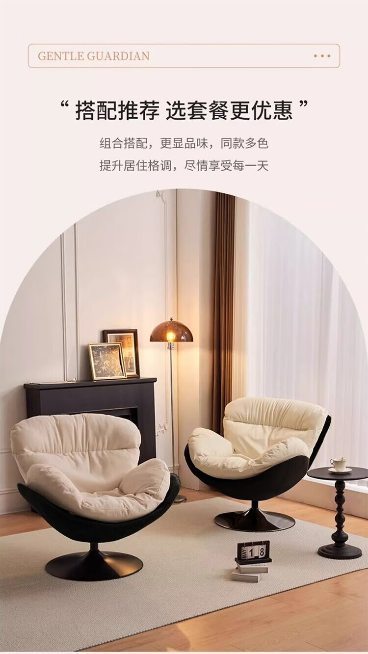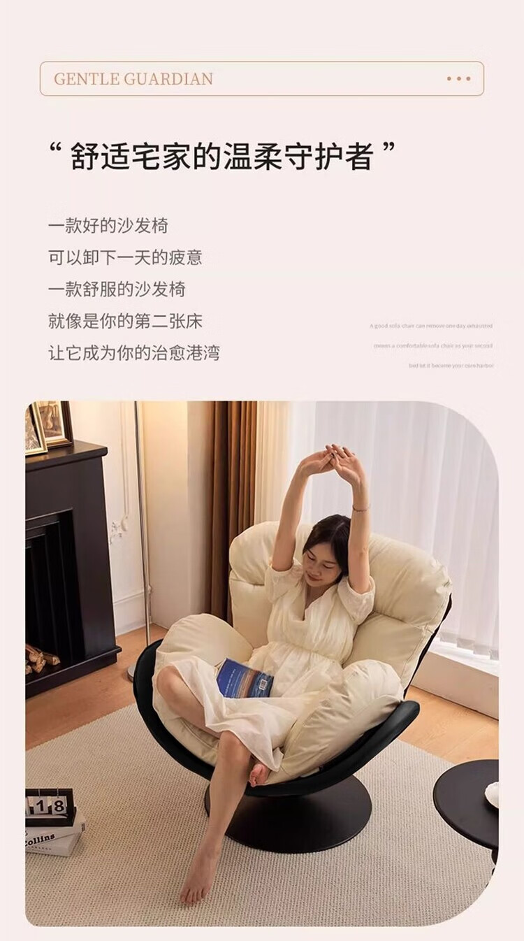 柏帝奇懒人沙发旋转蛋壳椅摇摇椅躺椅阳台家用可睡觉休闲单人沙发窝窝椅 高级黑拼白色(公仔棉)