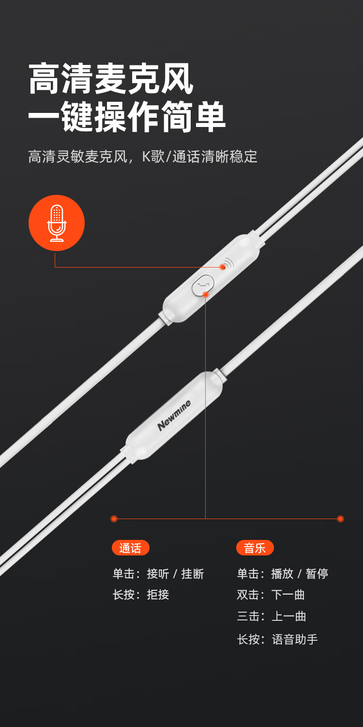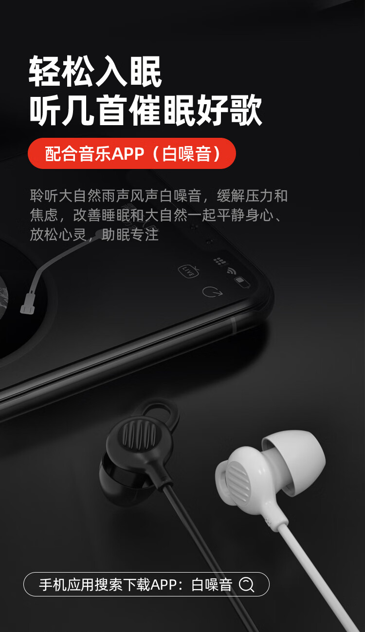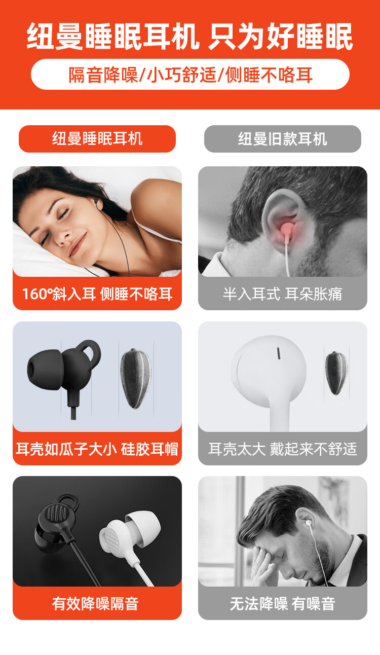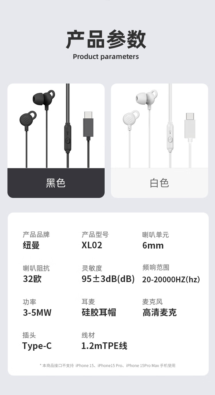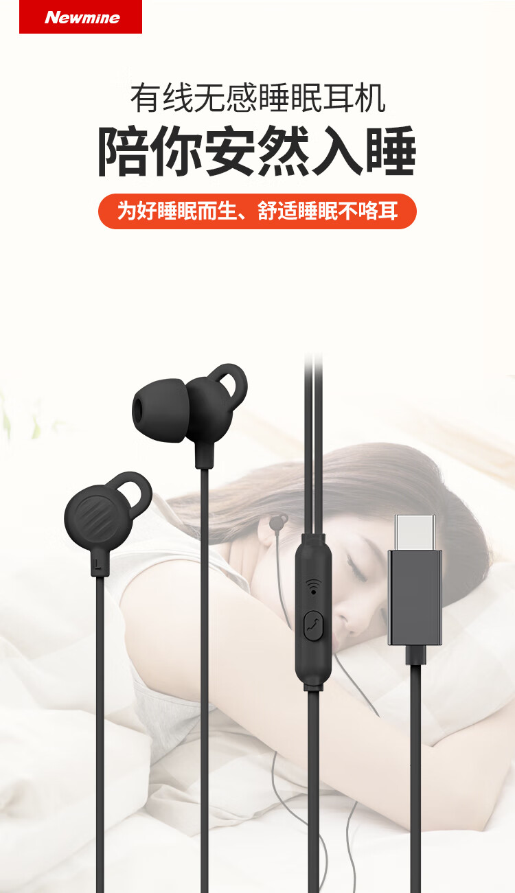 纽曼(Newmine)XL02 typec有线降噪隔音睡眠线控音乐手机模拟耳机入耳式type-c版侧睡不压耳耳塞安卓适配 白色