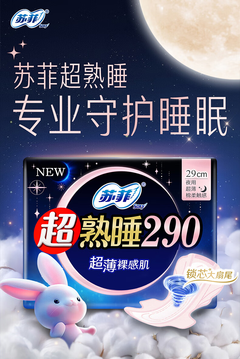 苏菲卫生巾超熟睡弹力贴身零敏肌日夜组合63片卫生巾姨妈巾 护垫日夜组合63片
