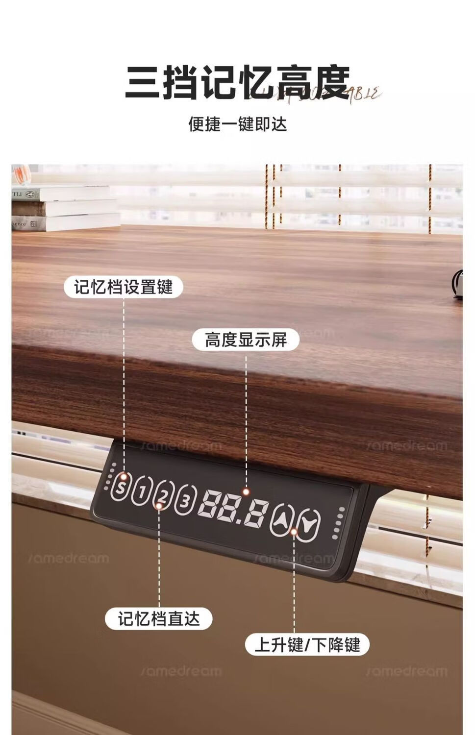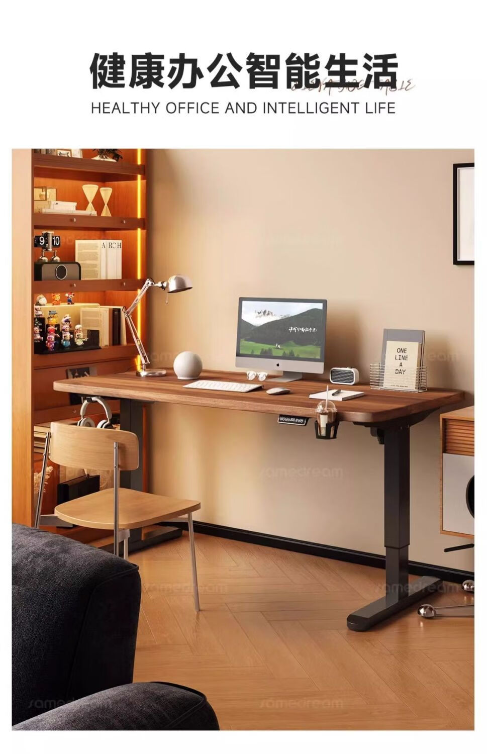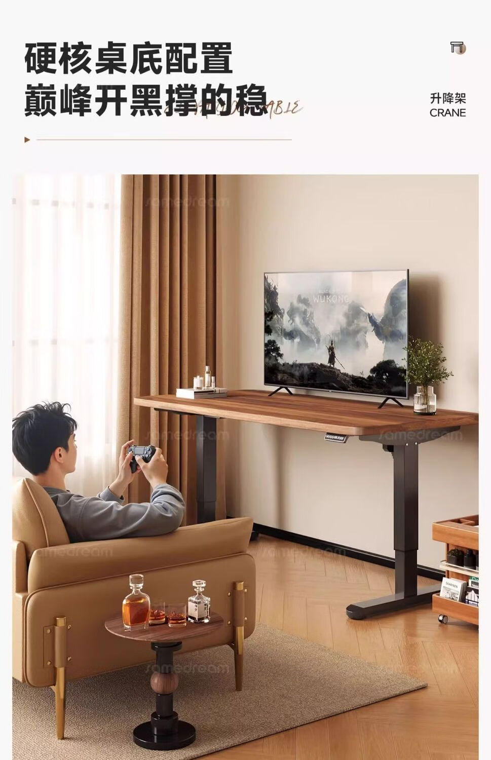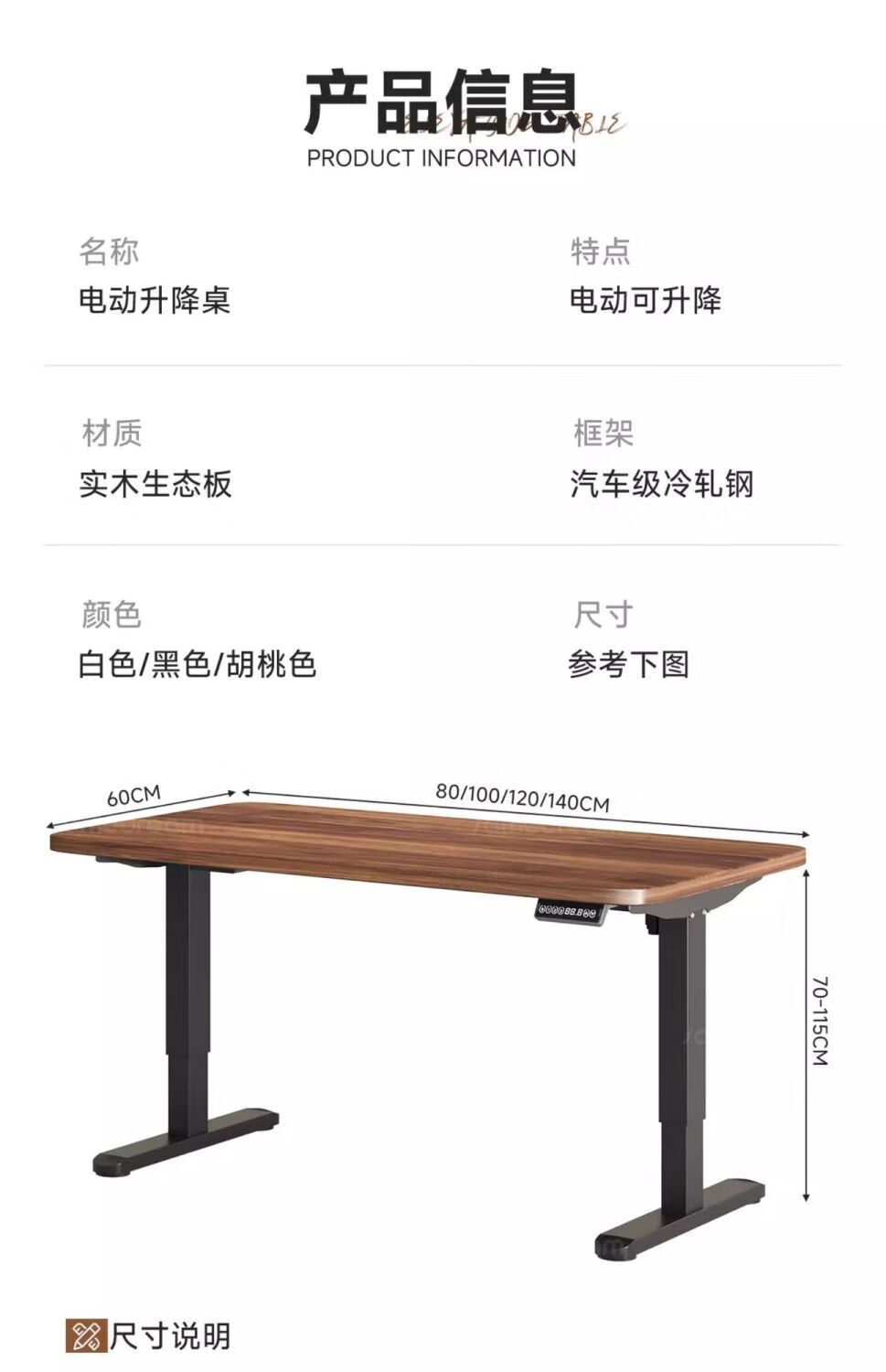 迈途森电动升降桌实木台式家用电脑桌客厅茶几办公桌工作台边几茶几 【智控升降】黑胡桃尊享80版
