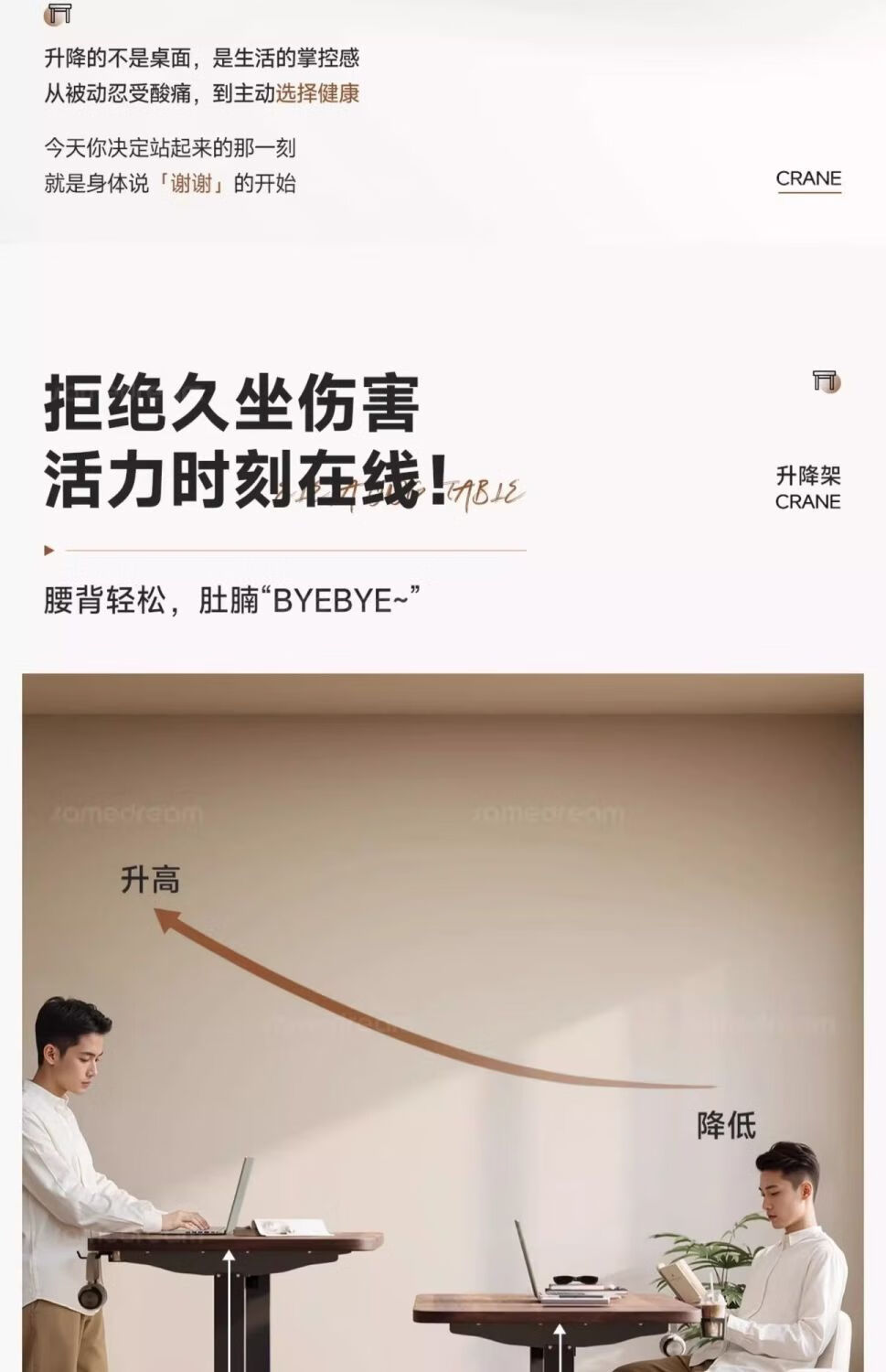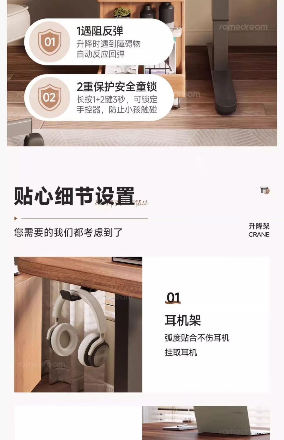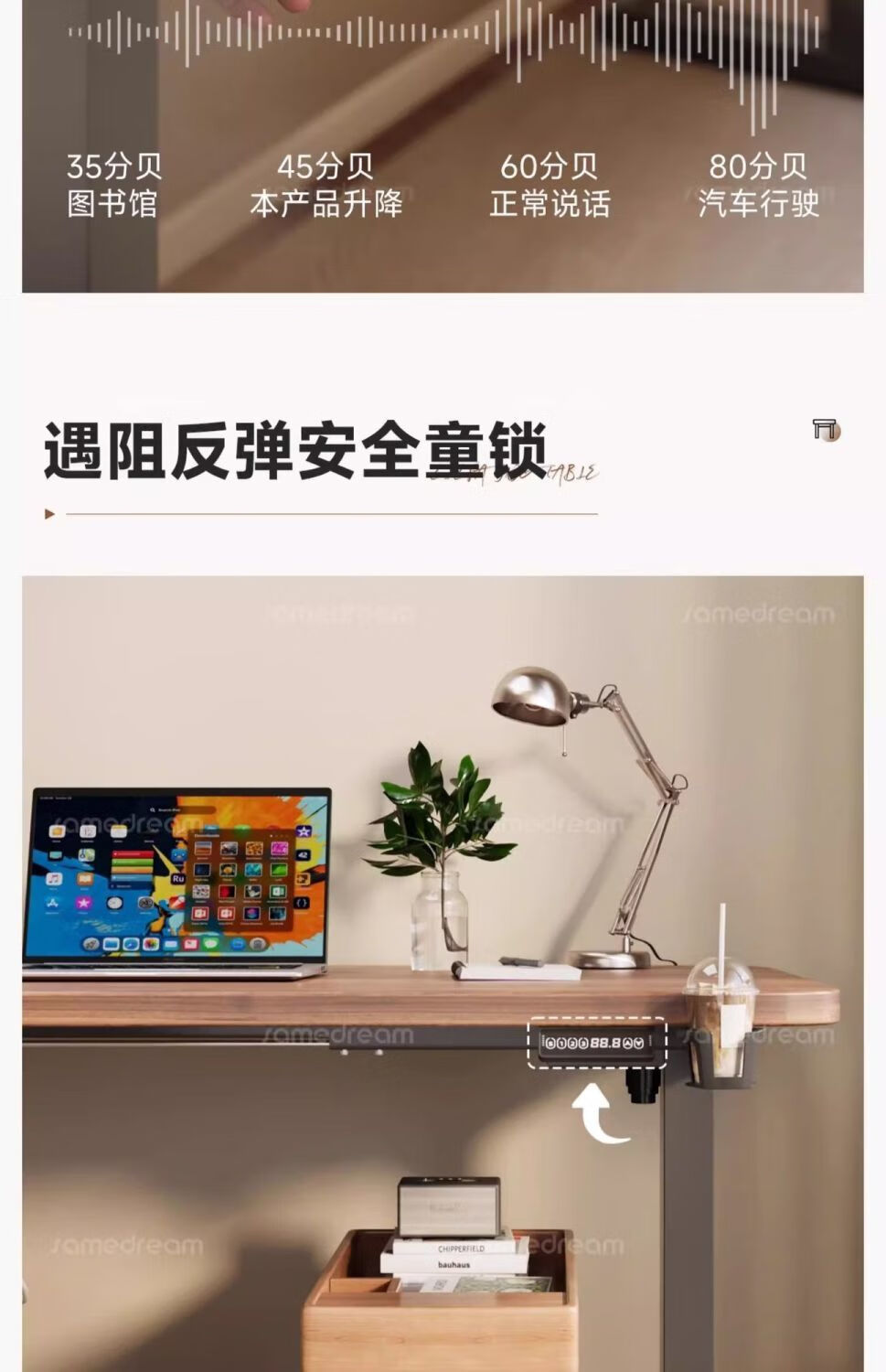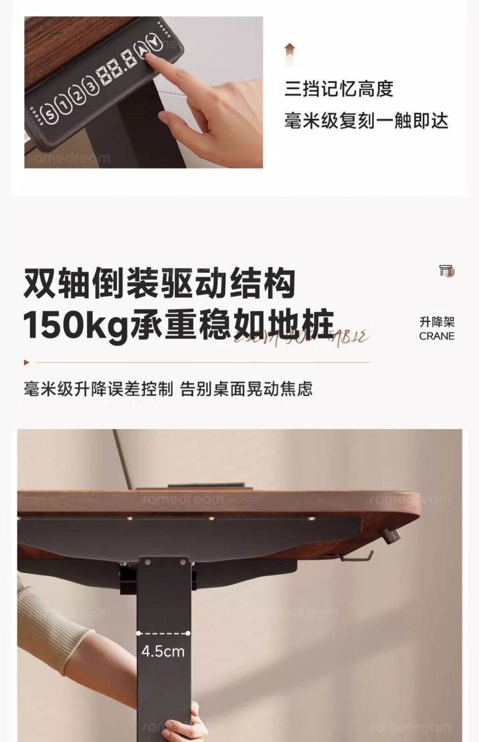 迈途森电动升降桌实木台式家用电脑桌客厅茶几办公桌工作台边几茶几 【智控升降】黑胡桃尊享80版