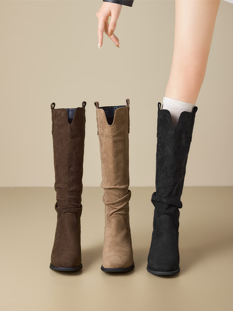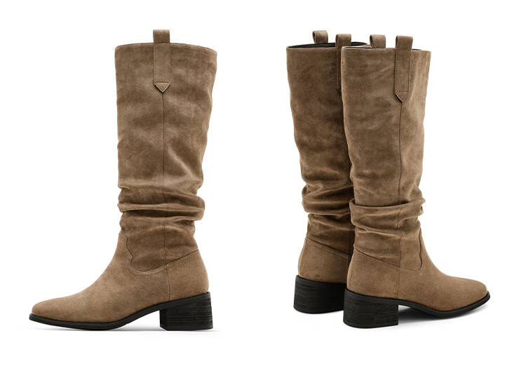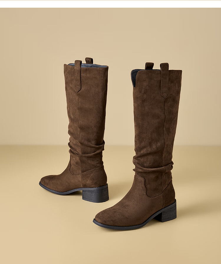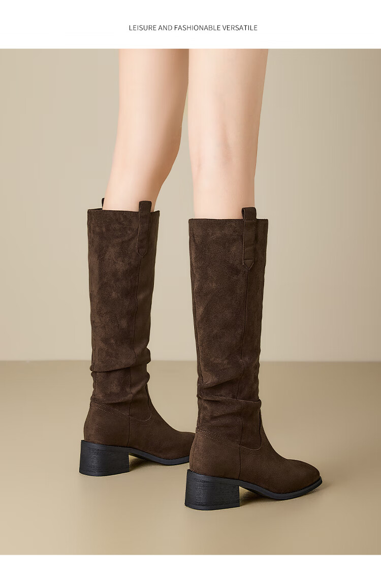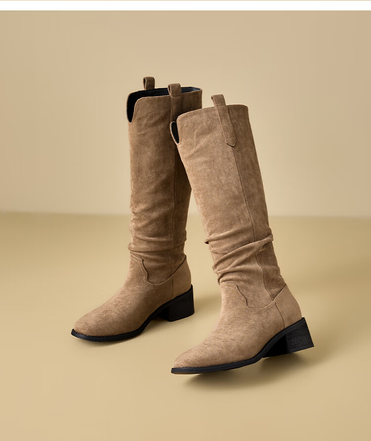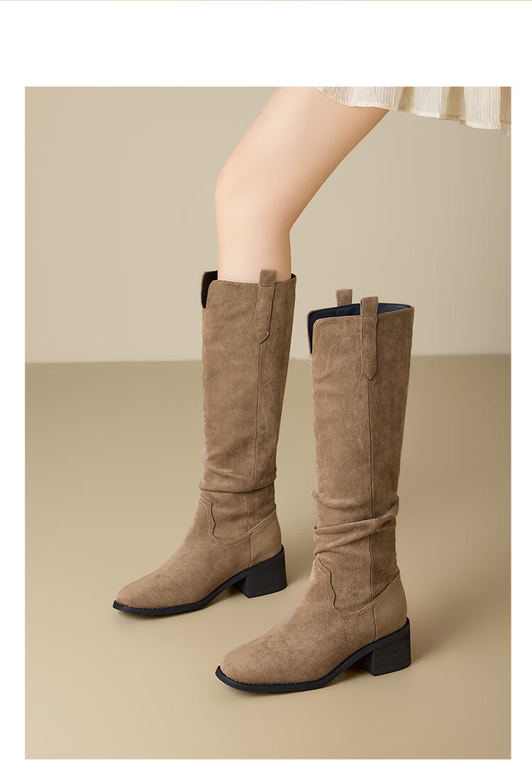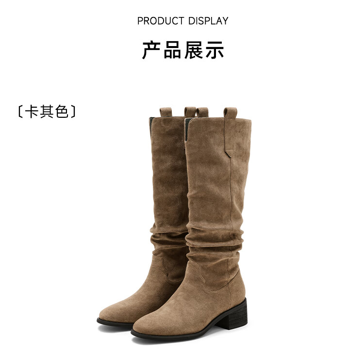 星期六粗跟美拉德长筒靴女2025新款秋季尖头显瘦堆堆靴西部骑士靴 黑色 37