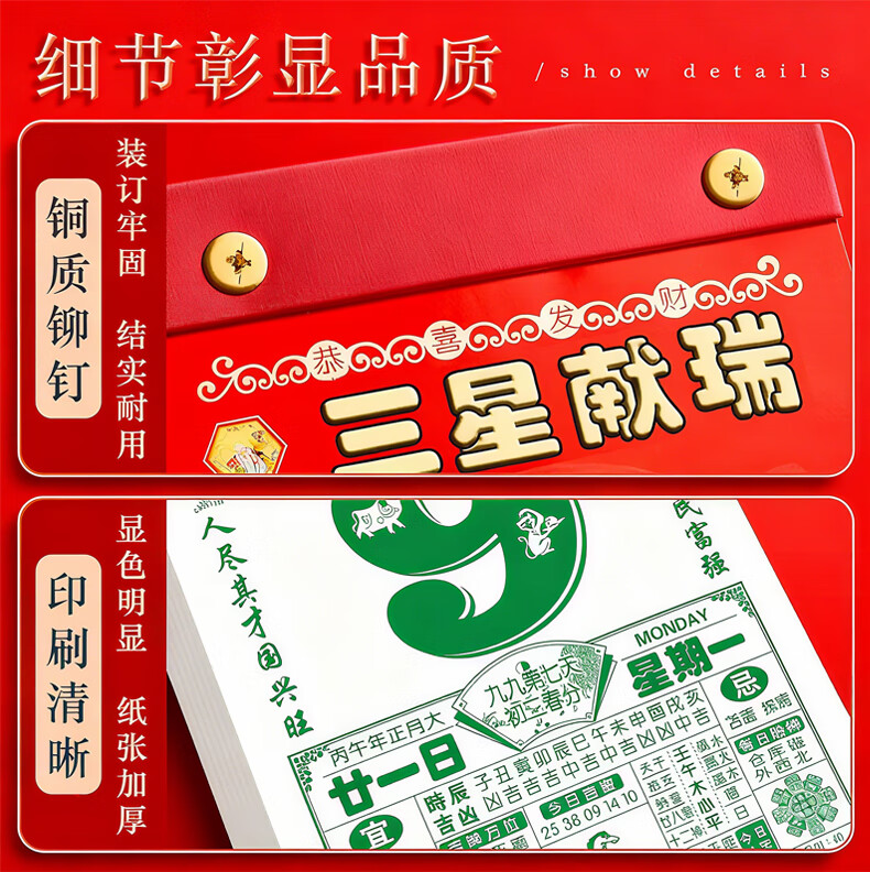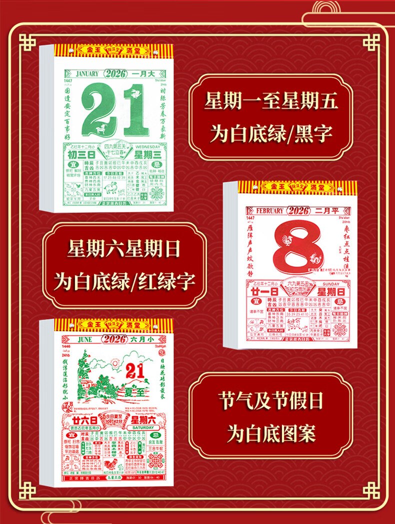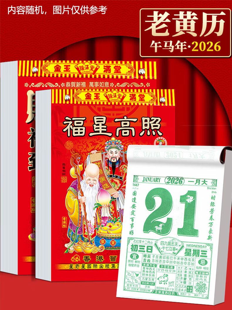 具才2026年新款马年老黄历正版书黄道吉日查询万年历年历手撕日历家用挂历老式农历12生肖一天一页厂直