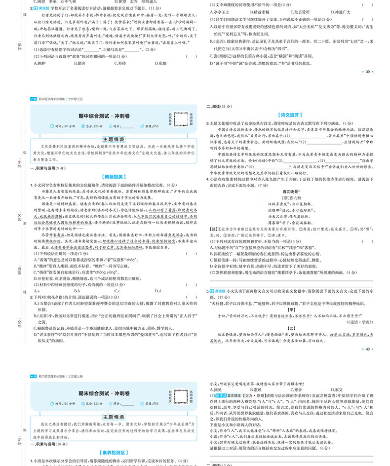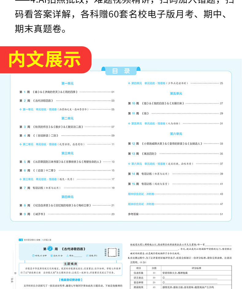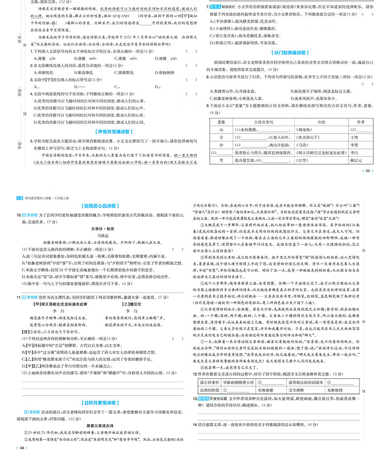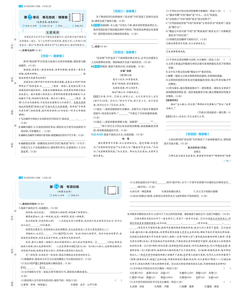 25秋一本周末小测卷七年级上册初一练习册试卷单元检测卷课本同步 【七上】语文-人教版