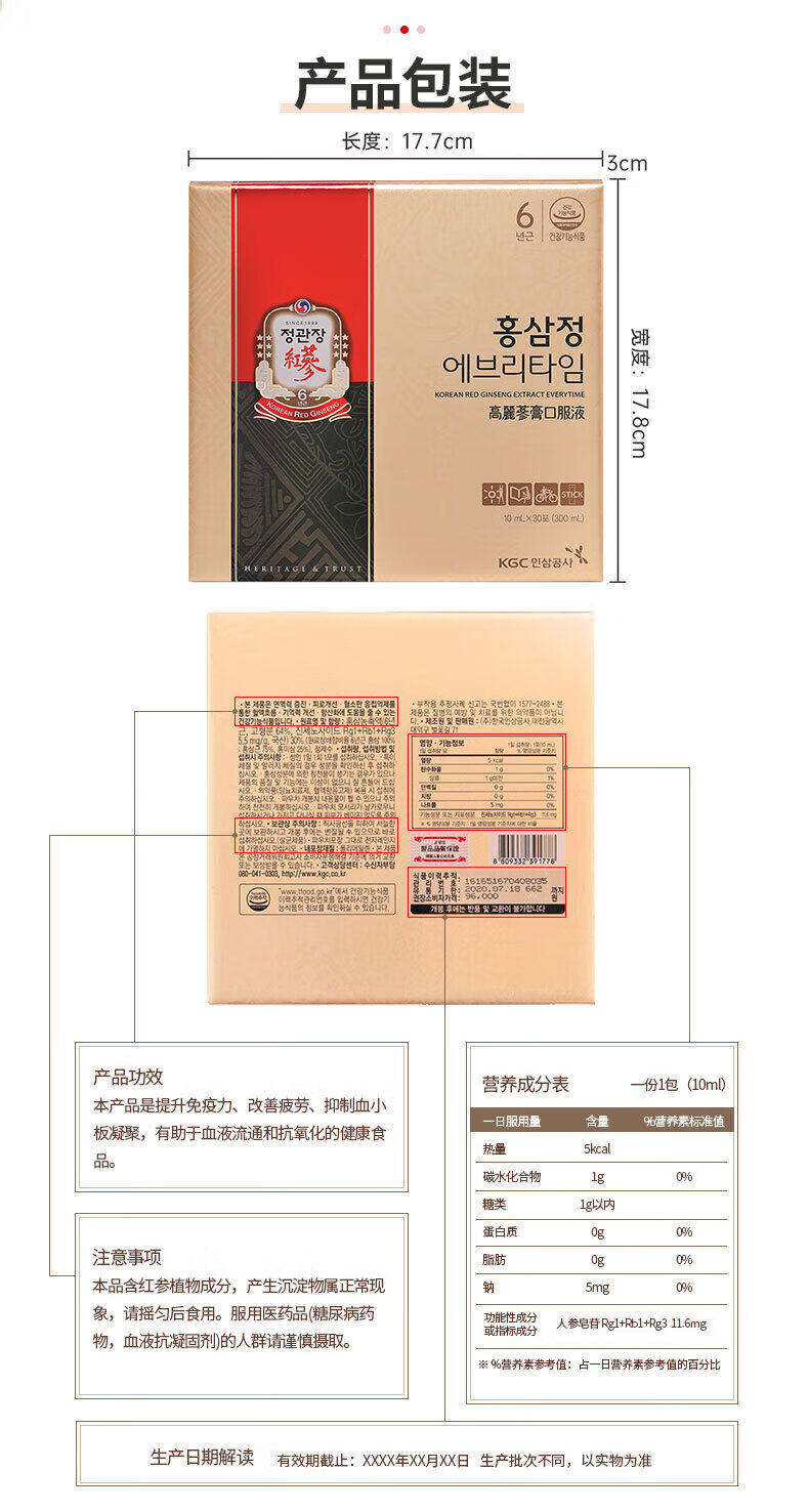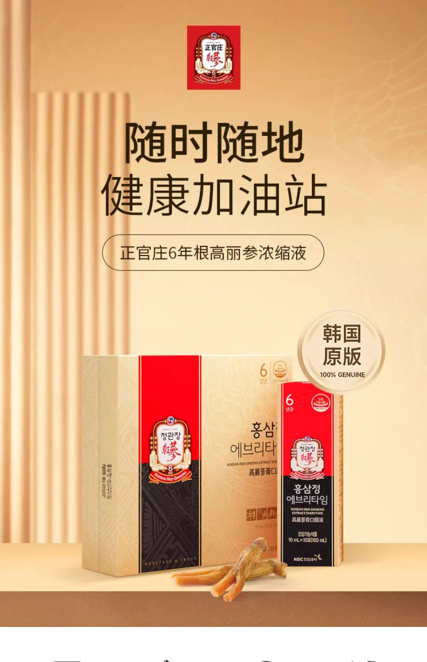 正官庄高丽红参人参浆6年根补气血营养品 补品礼盒 EVERYTIME 韩国进口 30条*2盒 【26年9.24日到期】