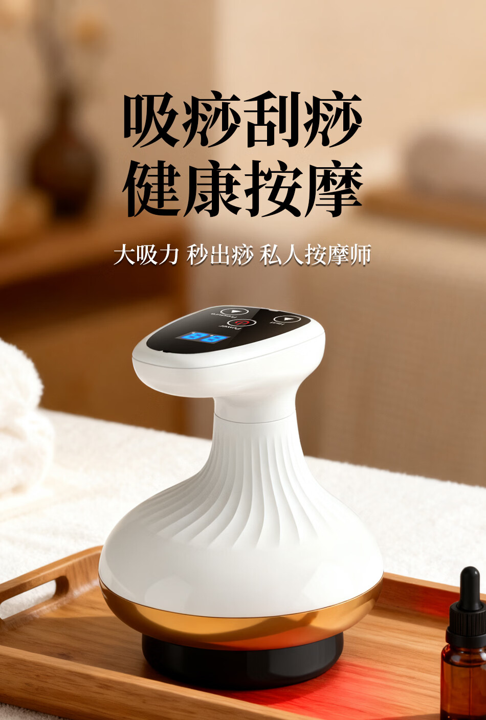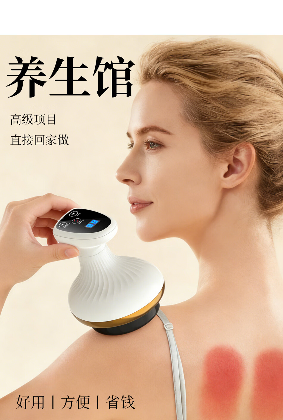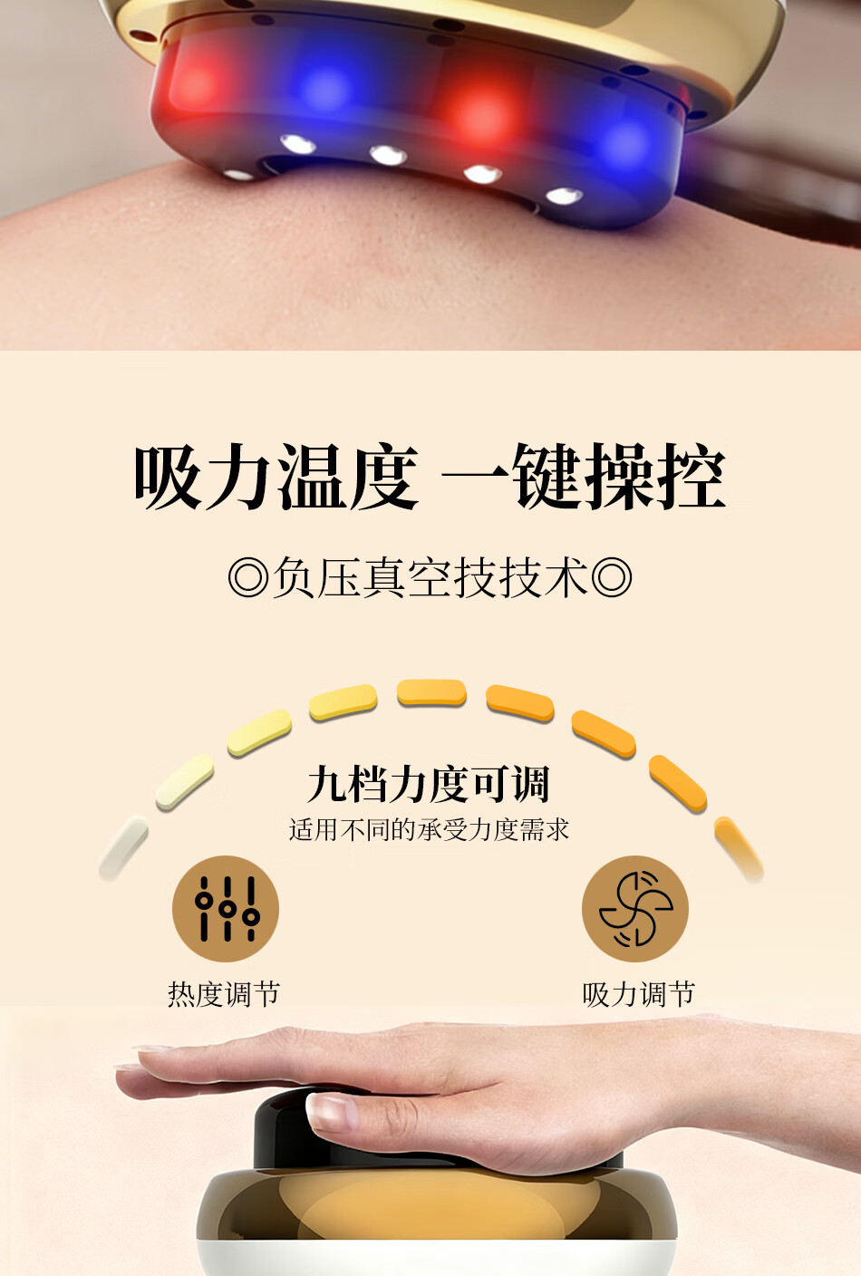 福然客 电动刮痧仪器真空拔罐器家用砭石温灸仪负压热敷刮痧板片艾灸吸痧 豪华旗舰款金色