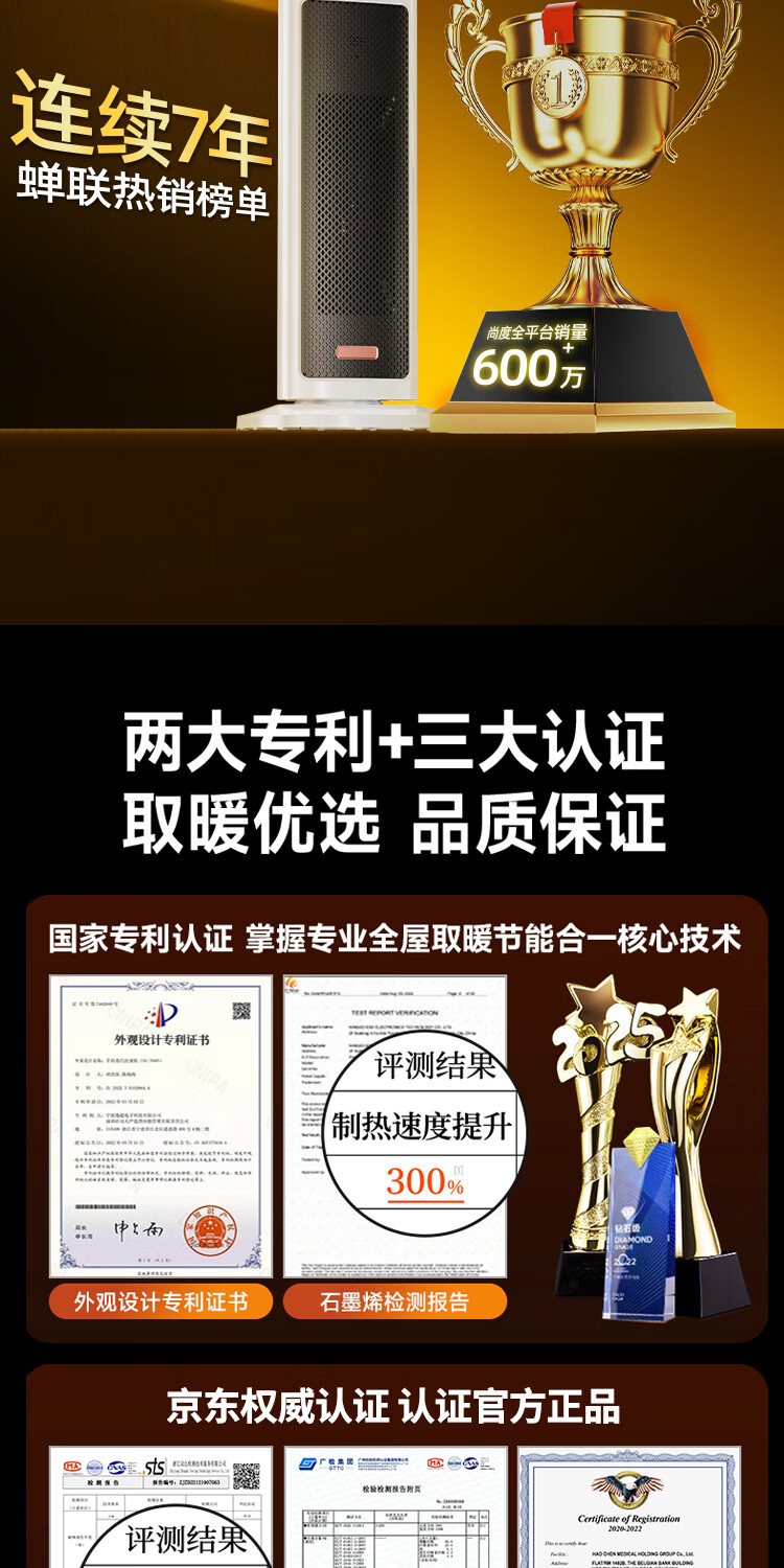 尚度【智能节能省电王·全屋速热】电热取暖器暖风机石墨烯电暖气家用浴室大面积30平方卧室静音小太阳 旗舰版丨小程序APP丨语音智控丨变频静音节能 2025年新款丨工厂直营丨5年质保90天试用
