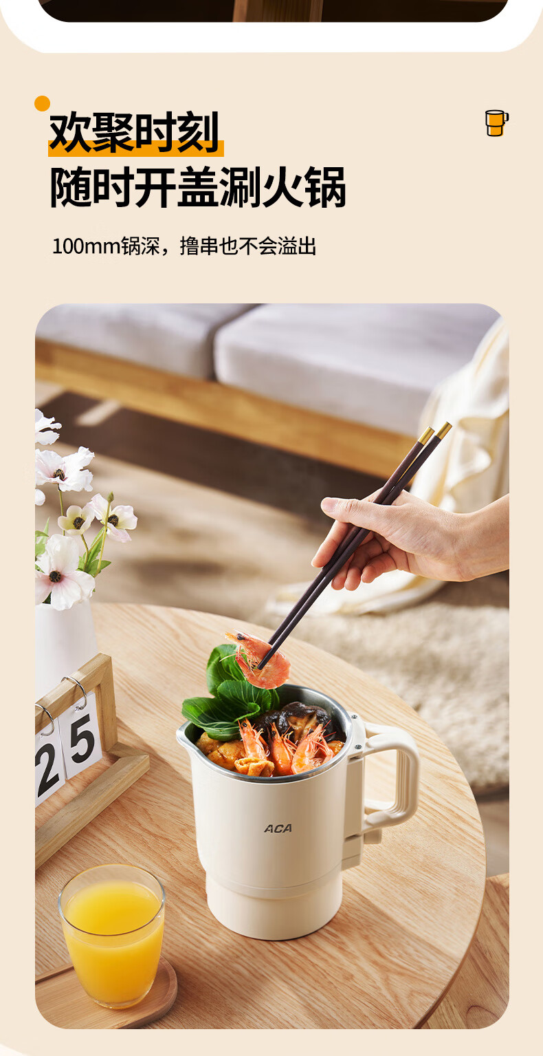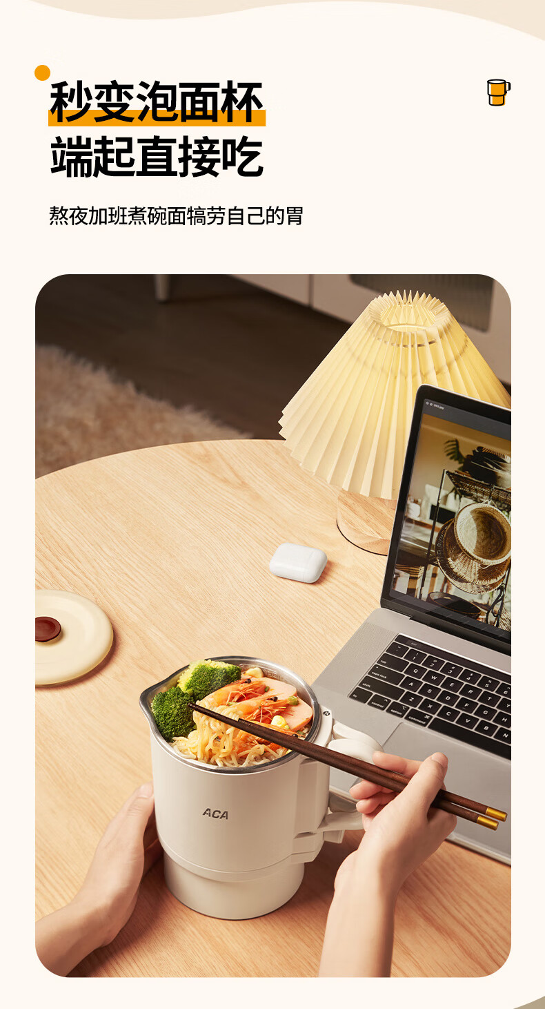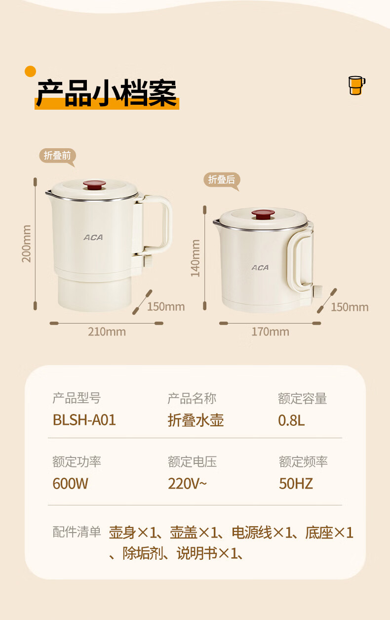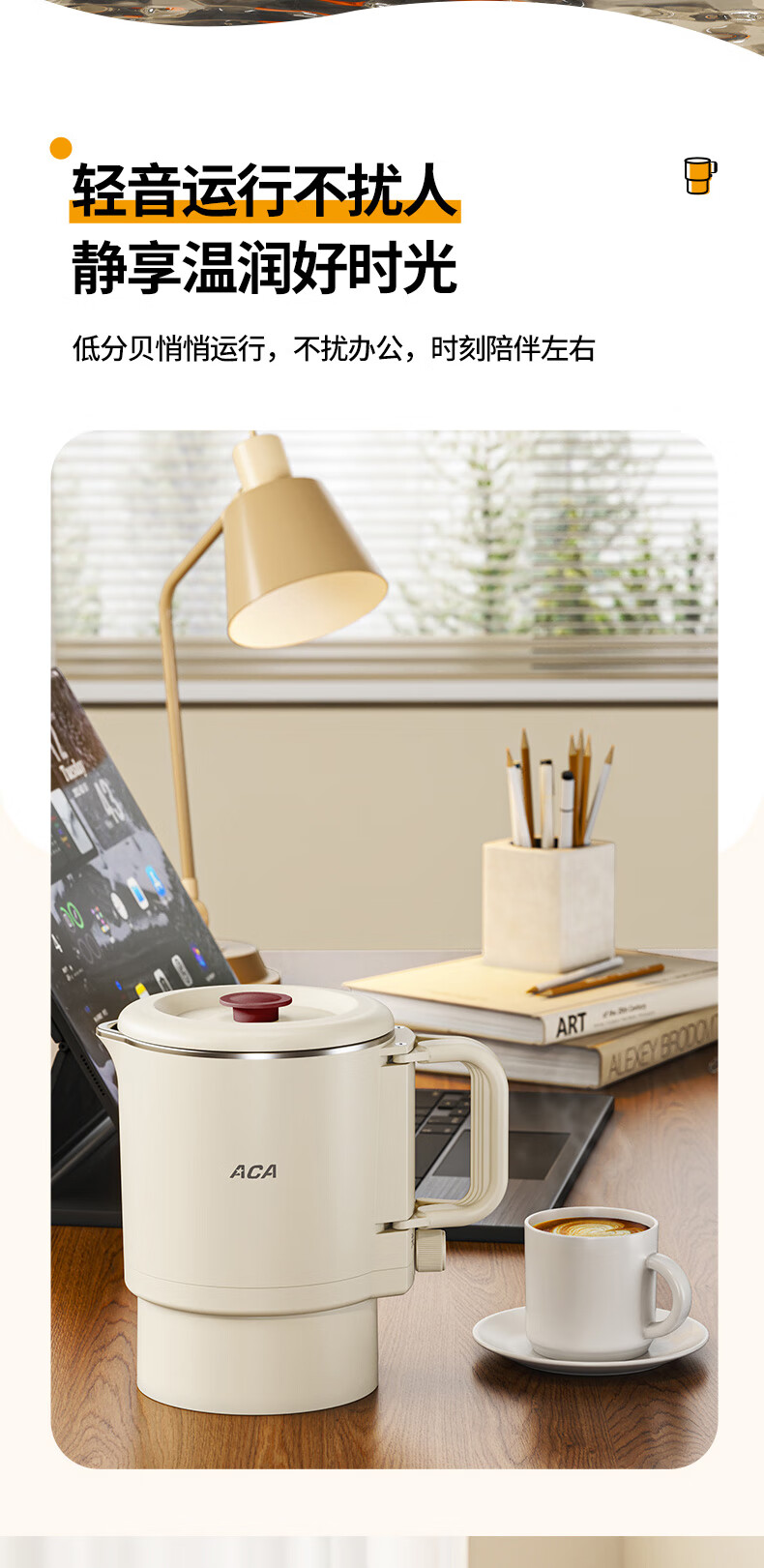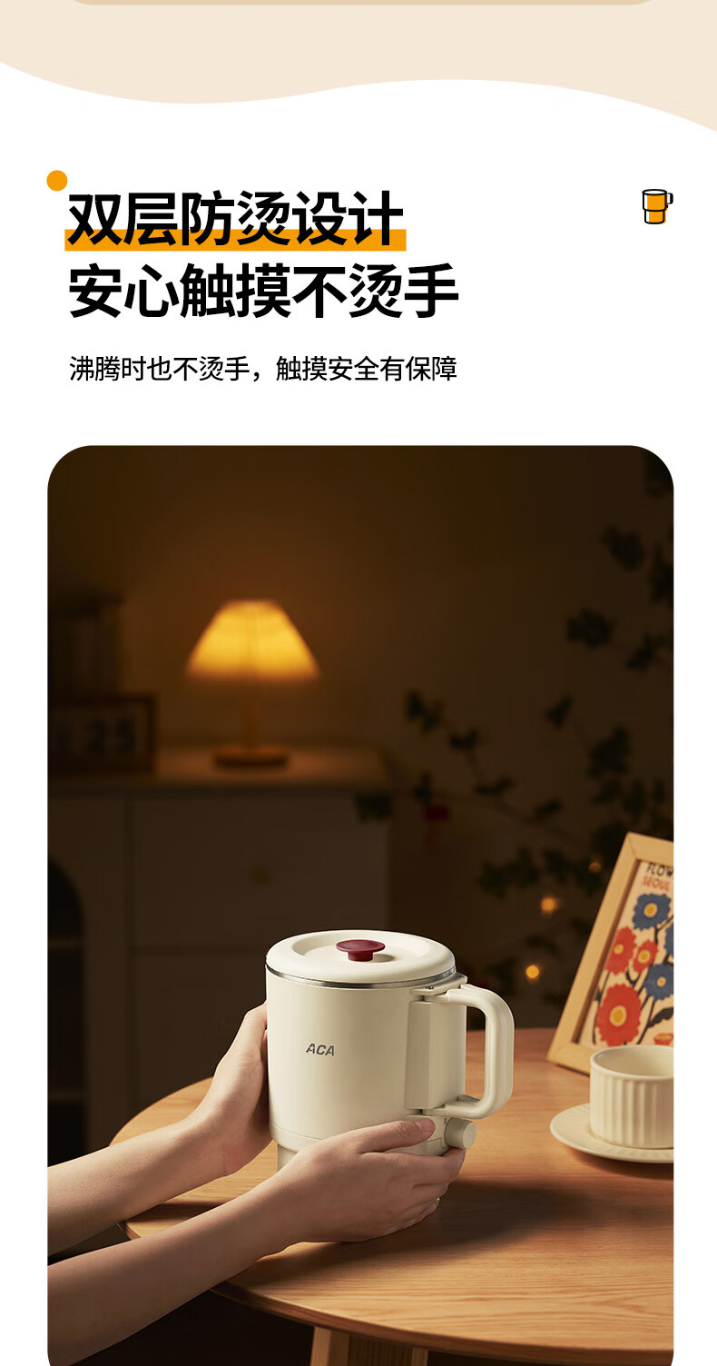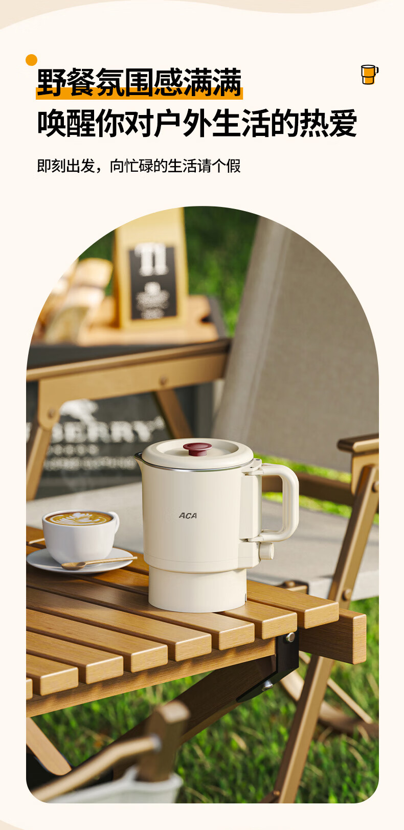 北美电器便携式烧水壶电水壶折叠旅行出差家用养生冲奶电热水壶学生316不锈钢泡面杯 304不锈钢 只可折叠把手