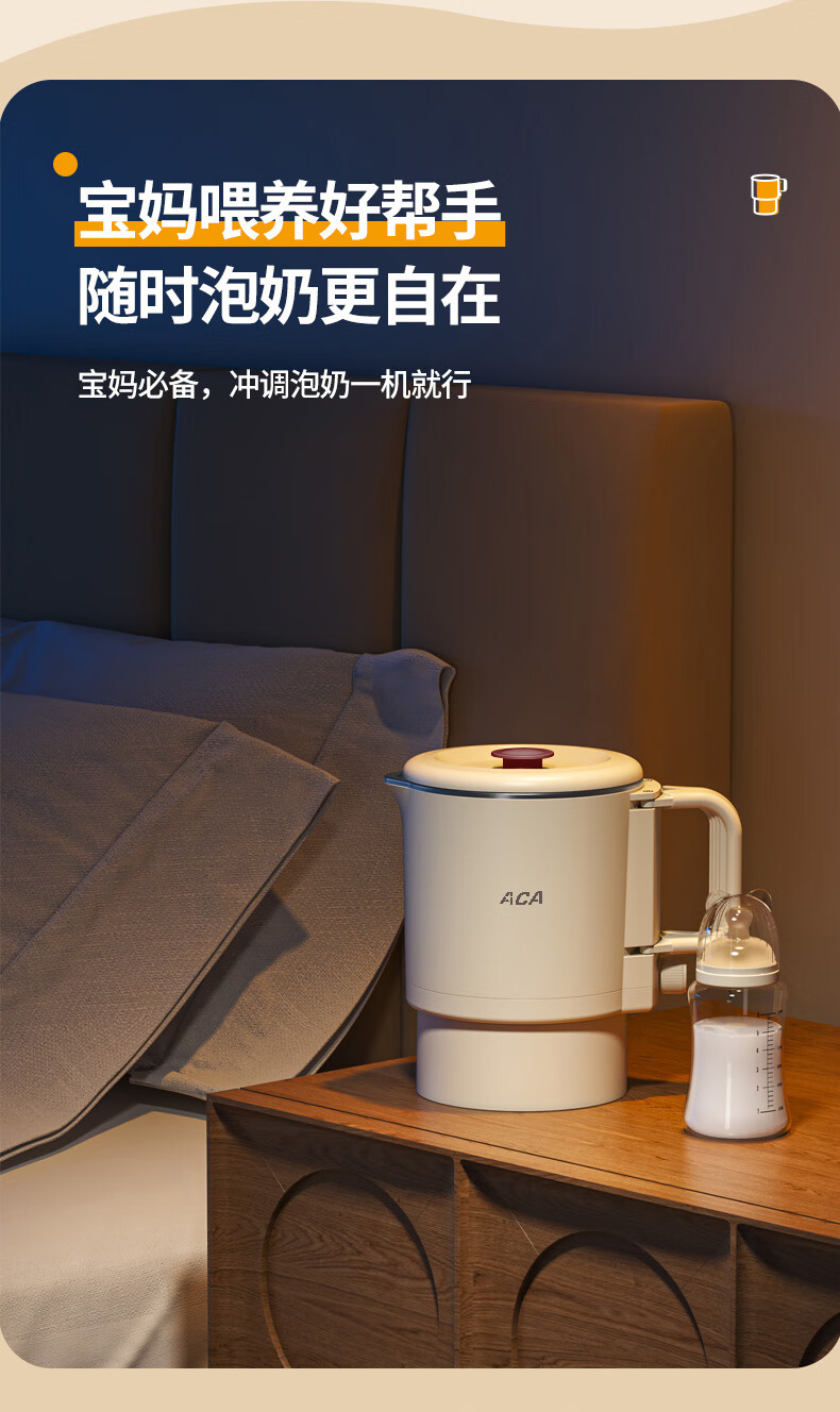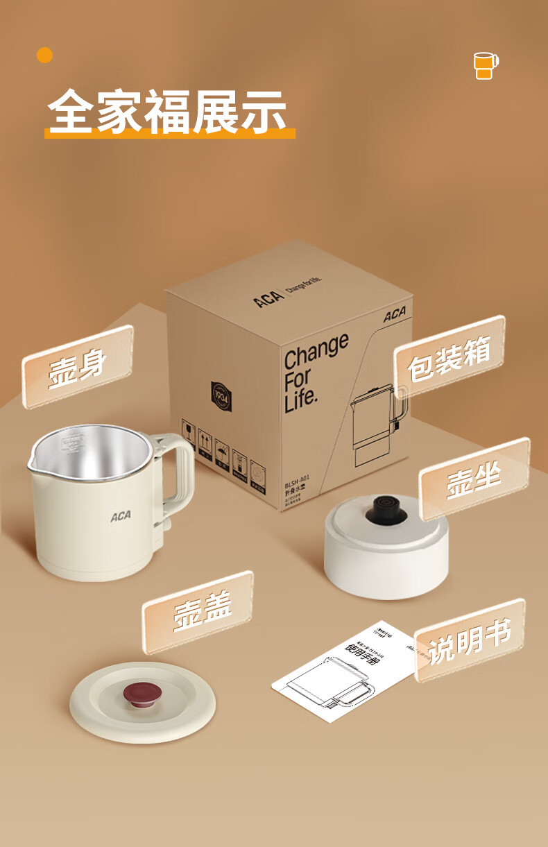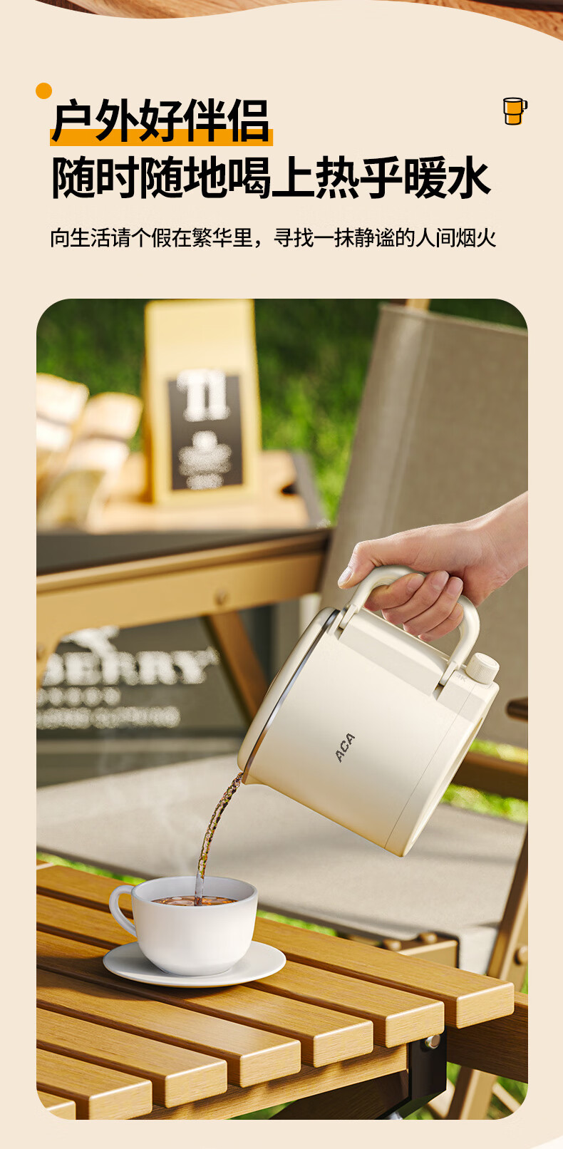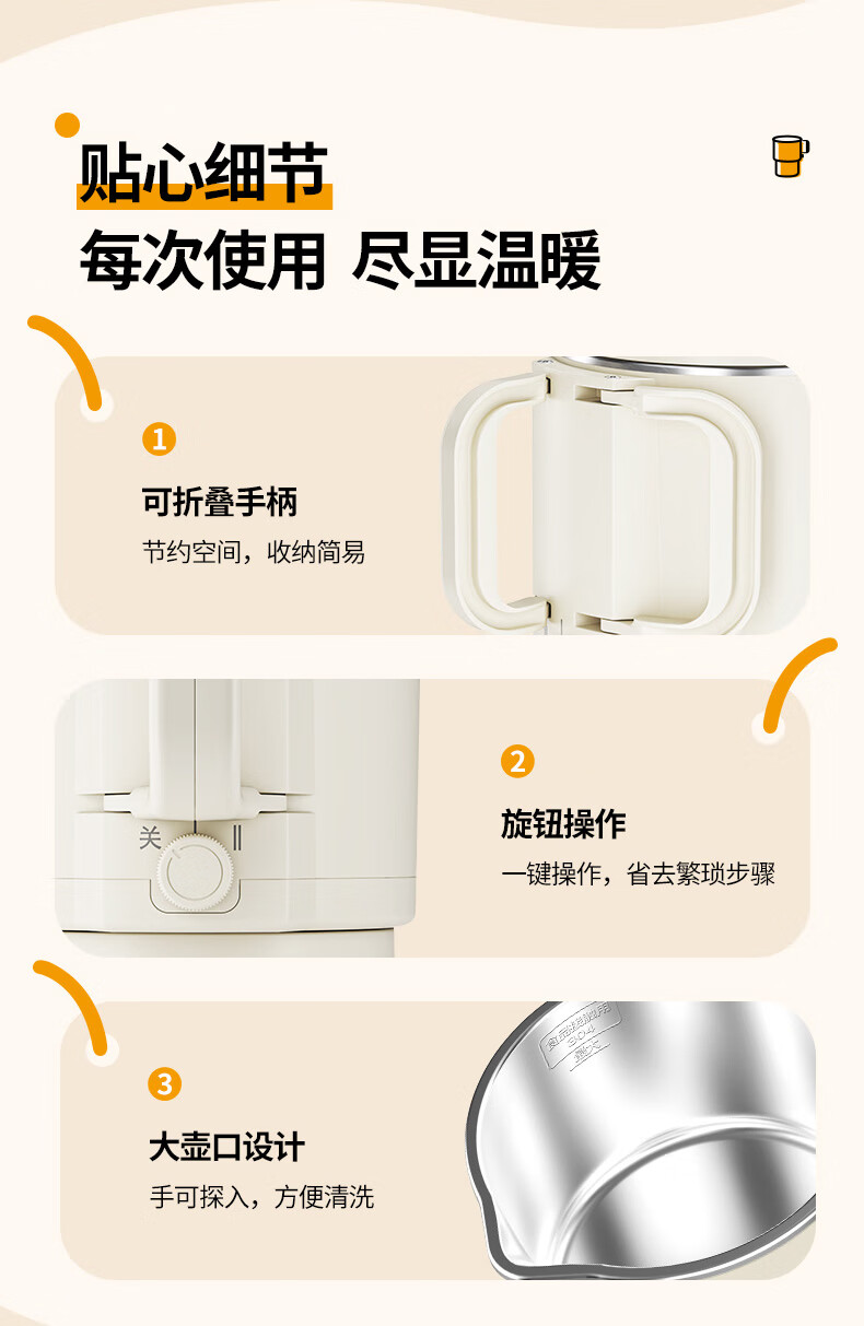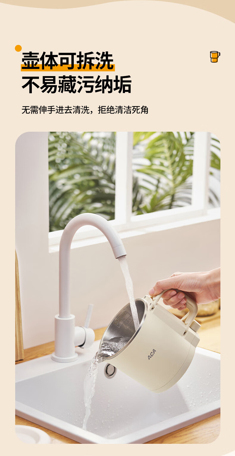 北美电器便携式烧水壶电水壶折叠旅行出差家用养生冲奶电热水壶学生316不锈钢泡面杯 304不锈钢 只可折叠把手