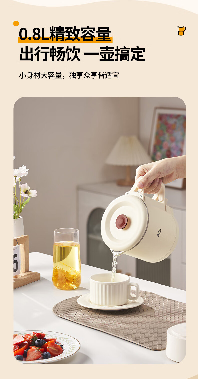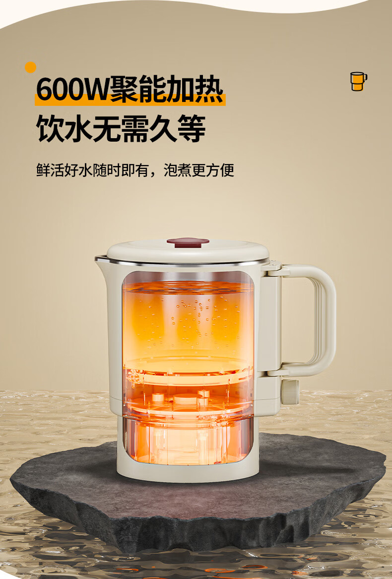 美的全玻璃养生壶 办公室烧水壶 家用多功能煮茶壶 花茶煮茶器 迷你小型电热水壶 围炉煮茶壶 【全玻璃】0金属0胶水0涂层 1L