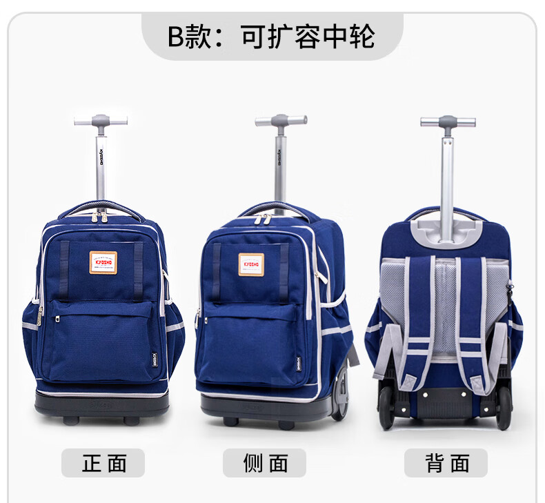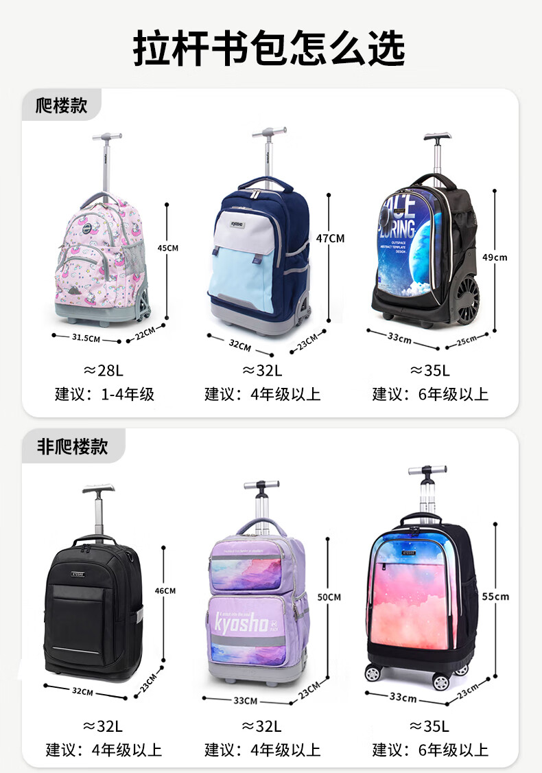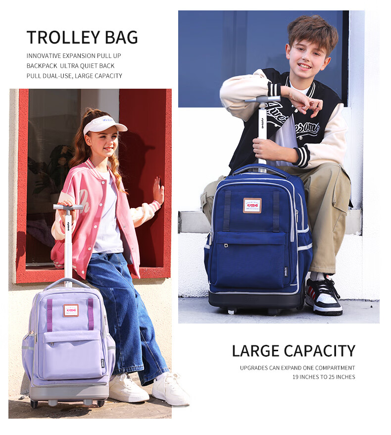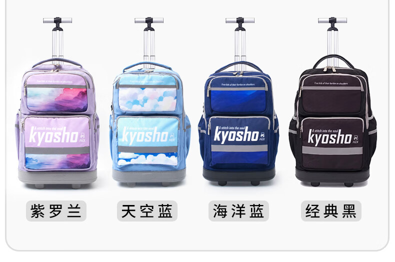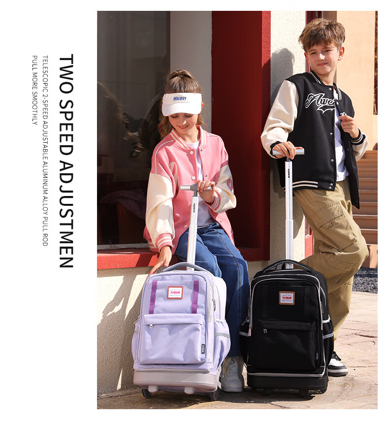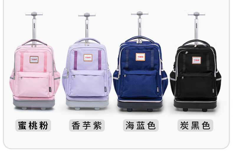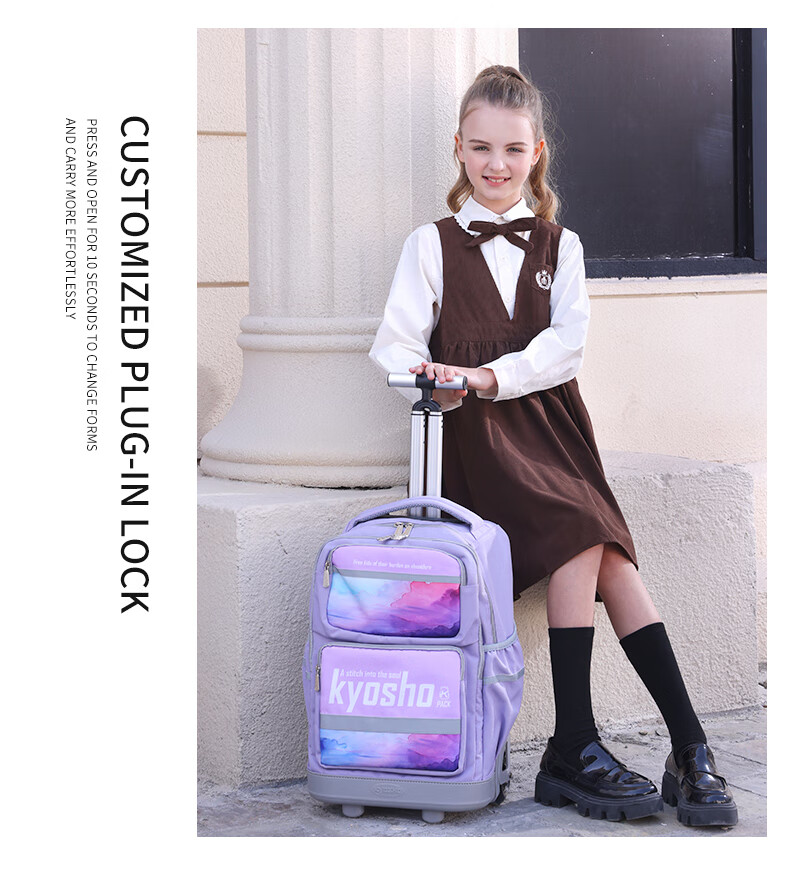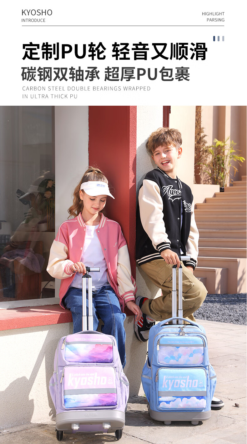 京商拉杆书包男女双肩背包男孩女孩小学生儿童包初中生减负护脊拉杆箱 紫色扩容款