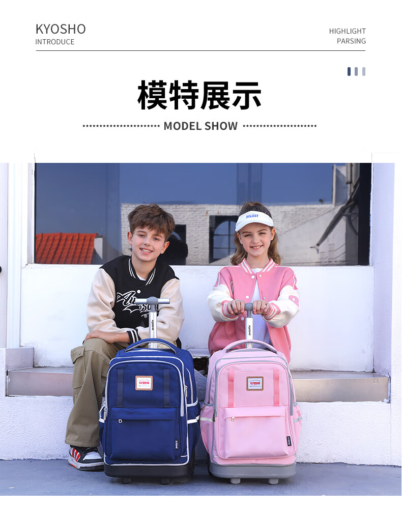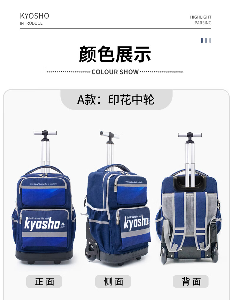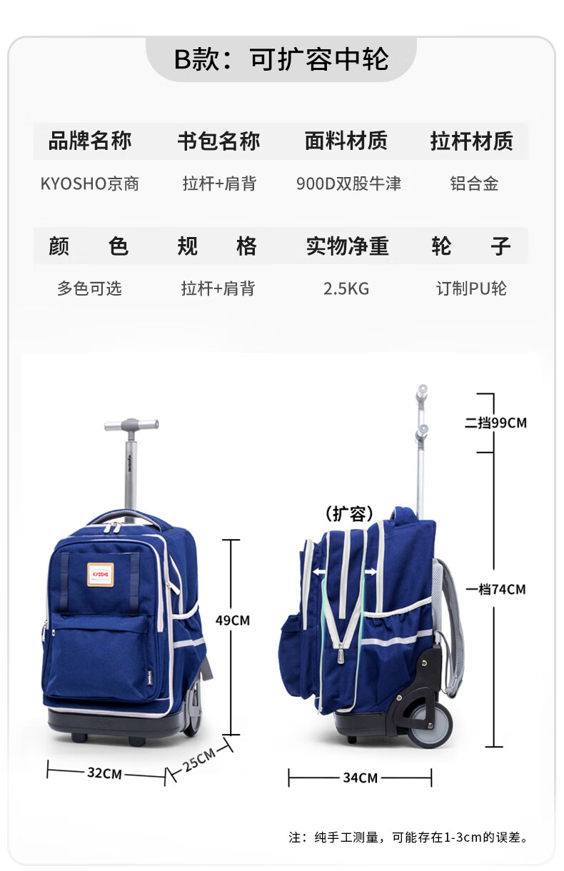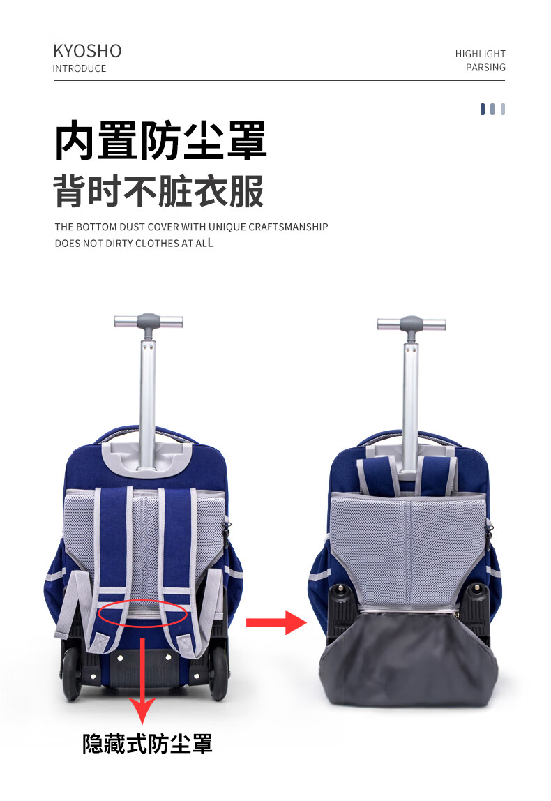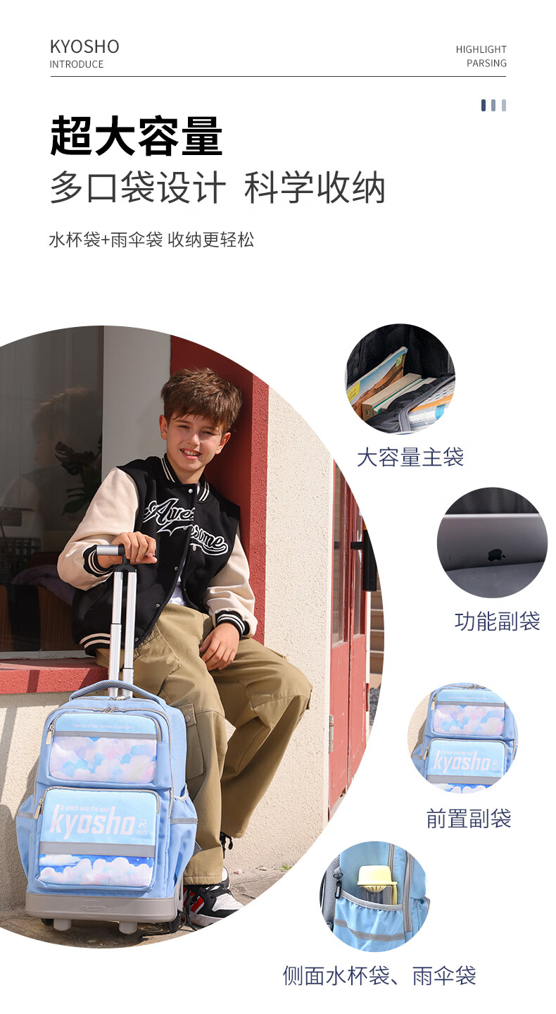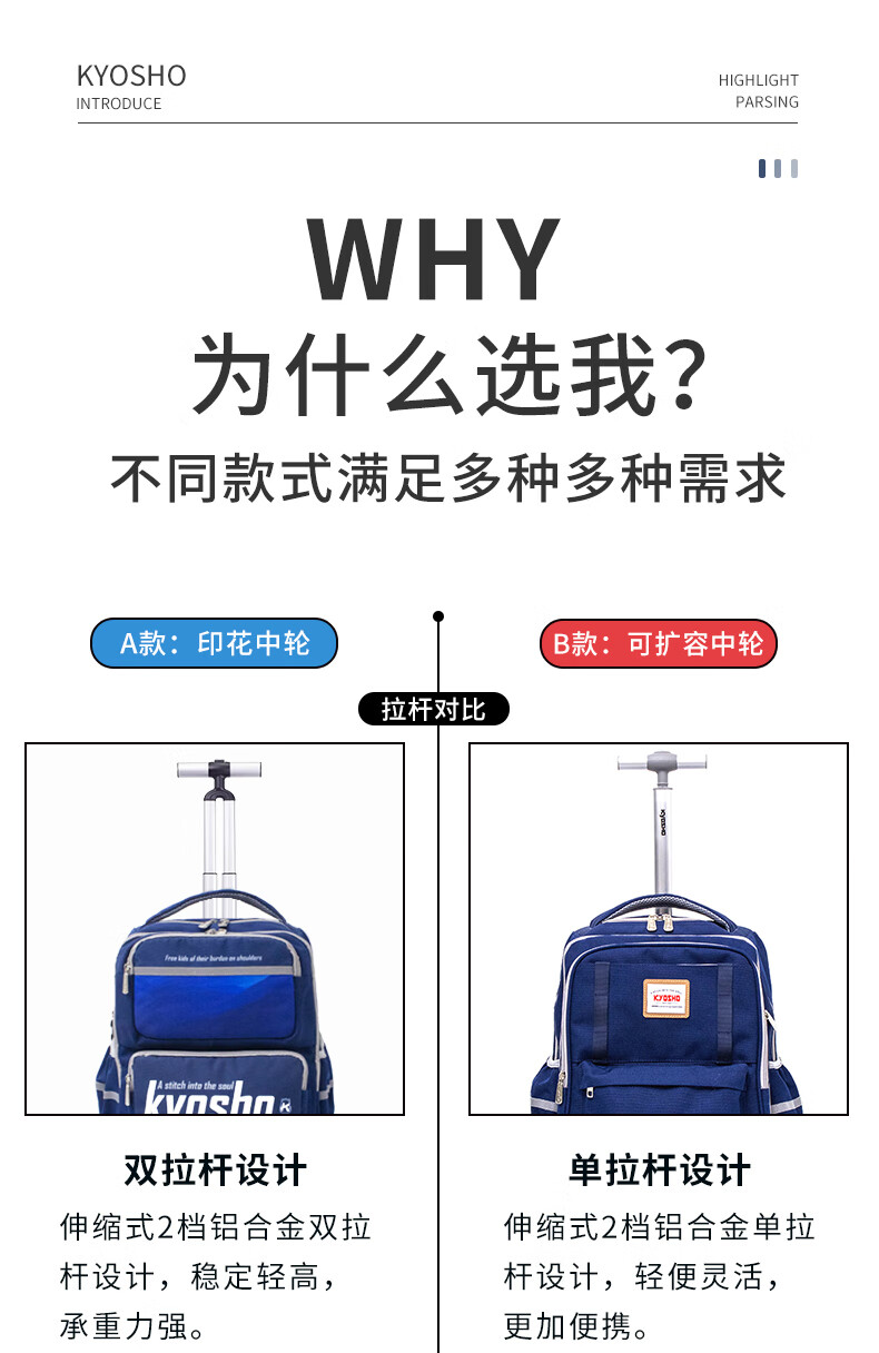 京商拉杆书包男女双肩背包男孩女孩小学生儿童包初中生减负护脊拉杆箱 紫色扩容款