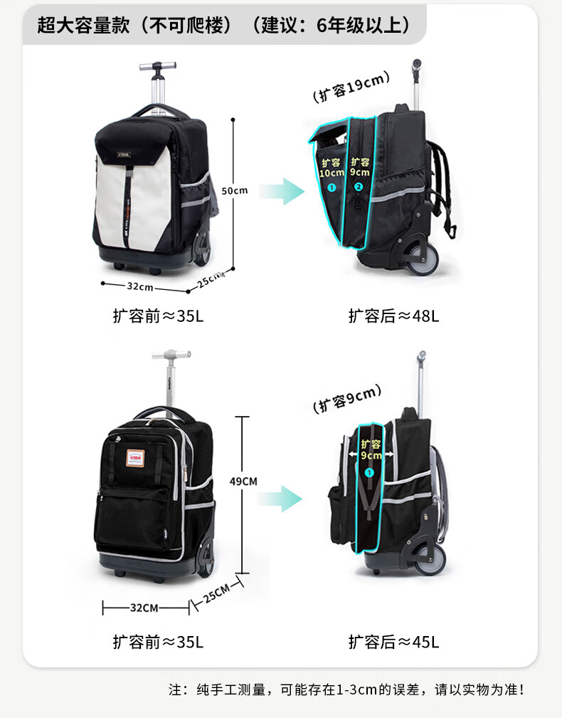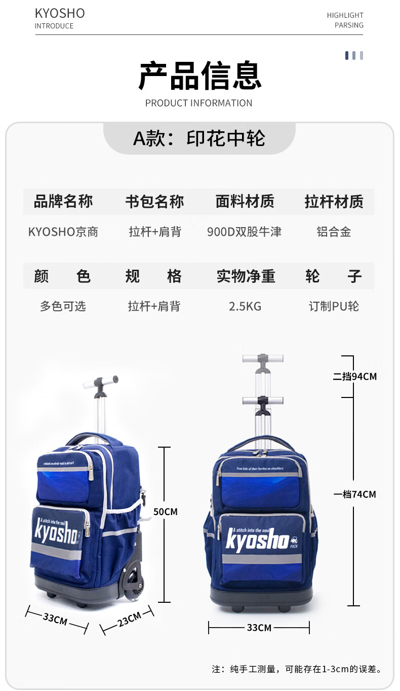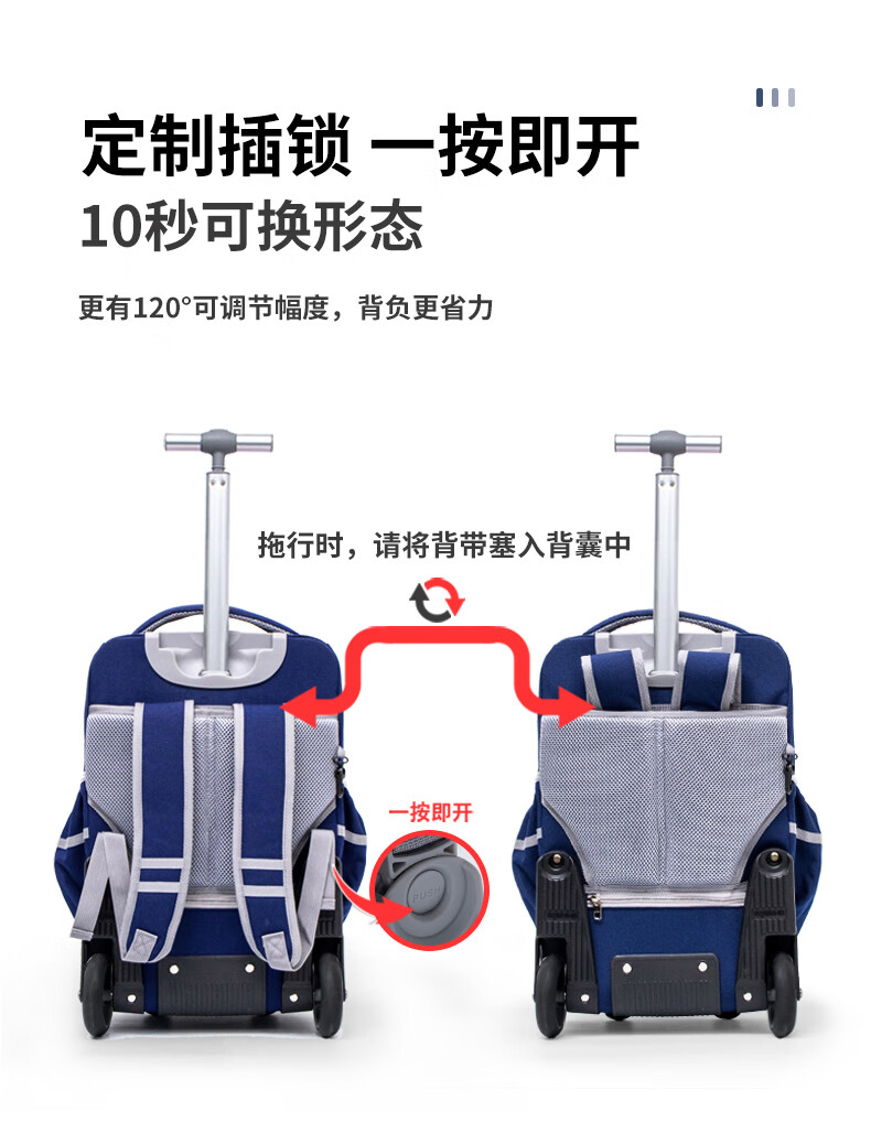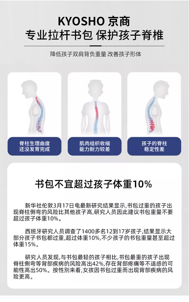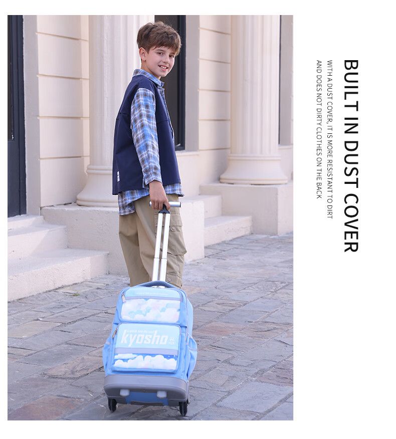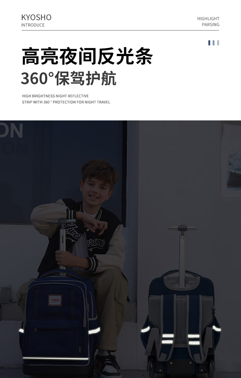 京商拉杆书包男女双肩背包男孩女孩小学生儿童包初中生减负护脊拉杆箱 紫色扩容款