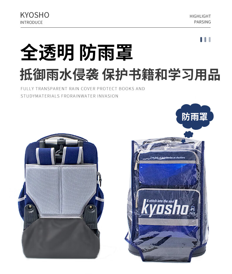卡拉羊小学生1-6年级防下坠减负风琴书包大容量高颜值双肩包儿童书包 【精灵】藏青 【容量20L】身高135cm以上