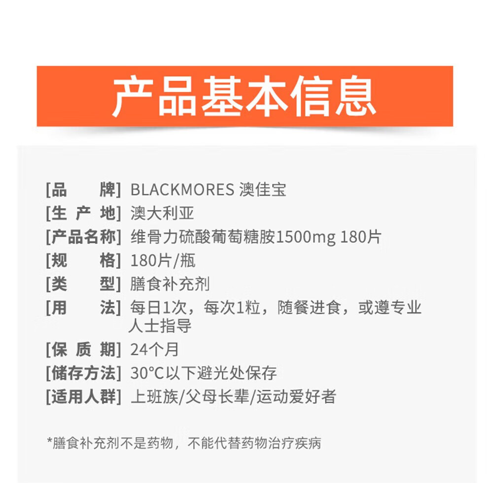 Blackmores维骨力高浓度硫酸氨糖片软骨素成人关节食品/有效期27年初 加强版维骨力 180粒*1瓶