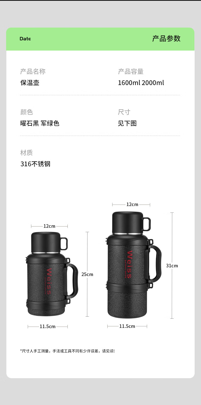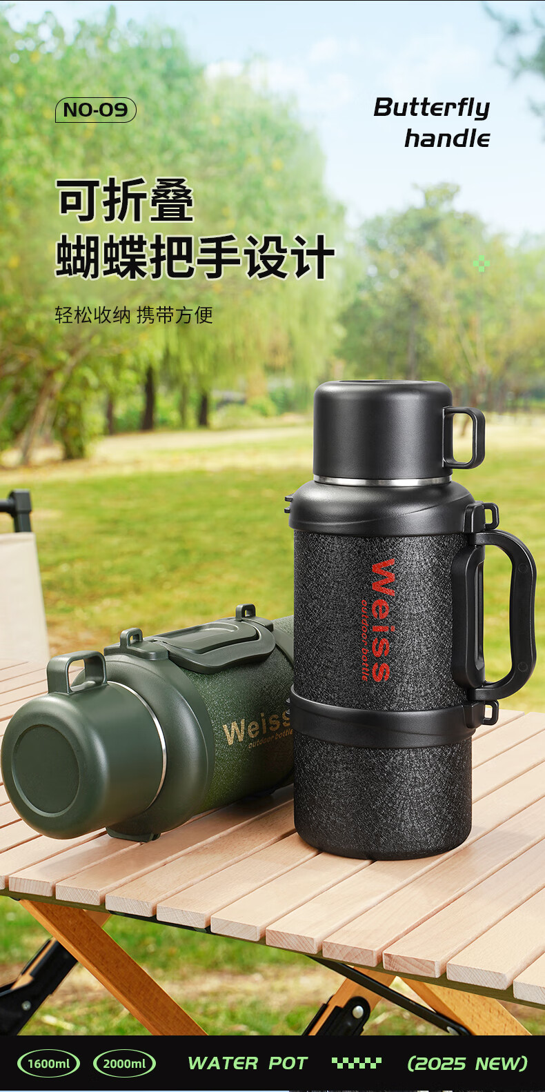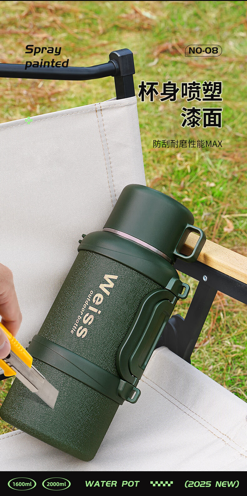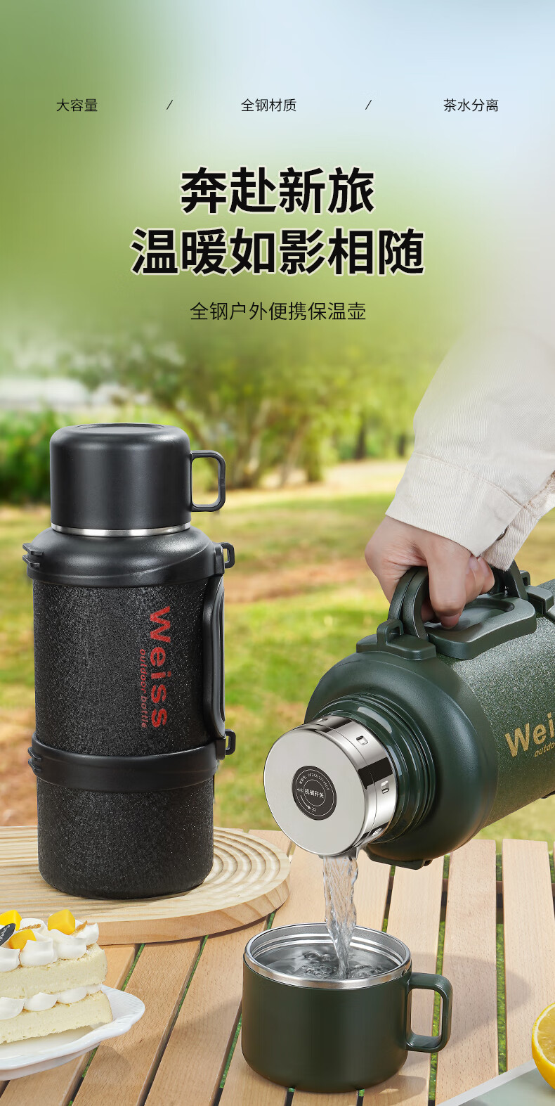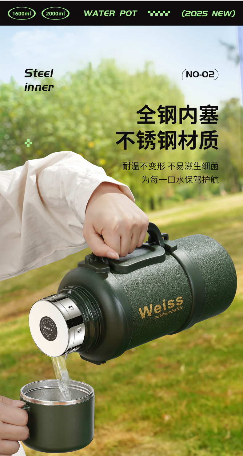 唯水大保温杯1500-2000ml保温壶大容量户外水壶316不锈钢清水保温壶 黑2L【316不锈钢】4斤水