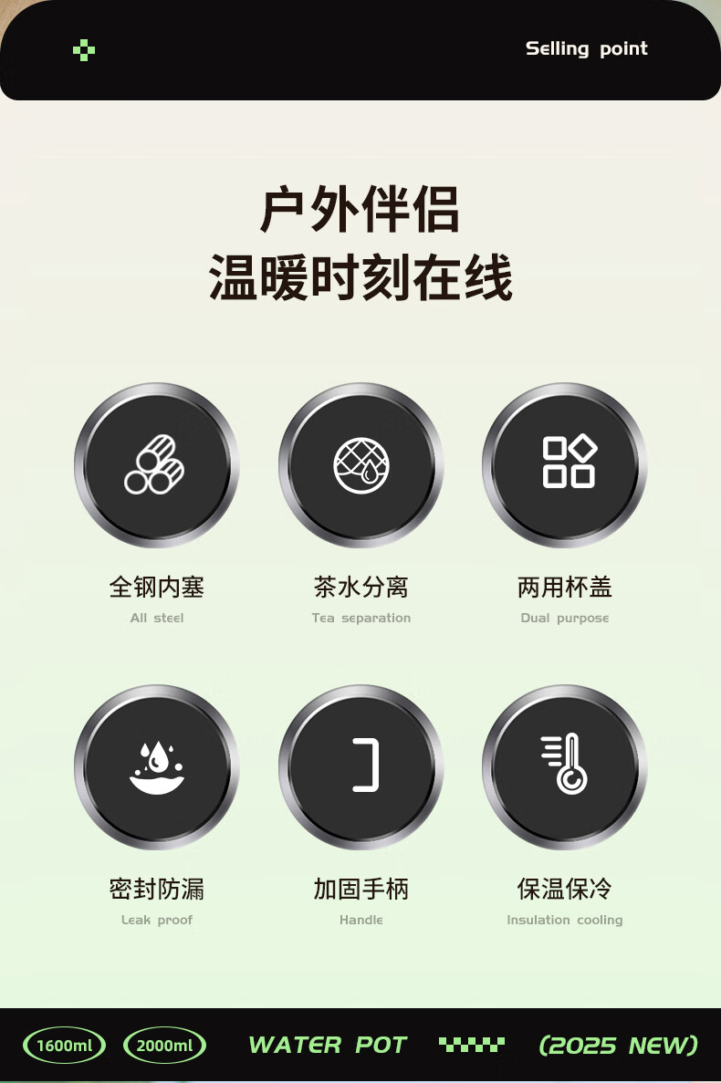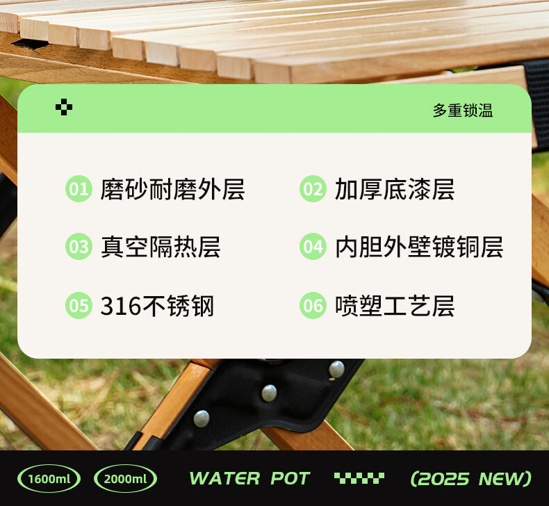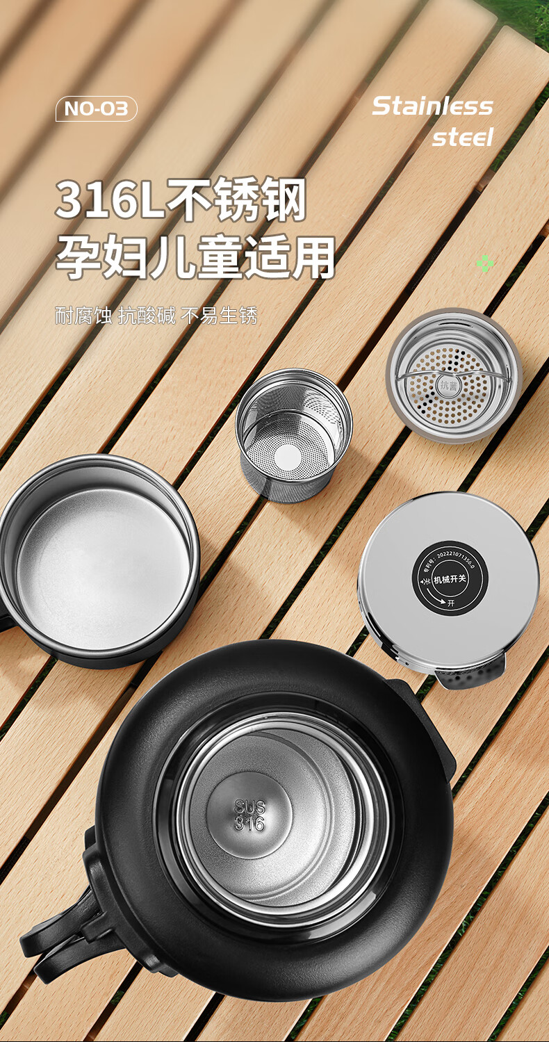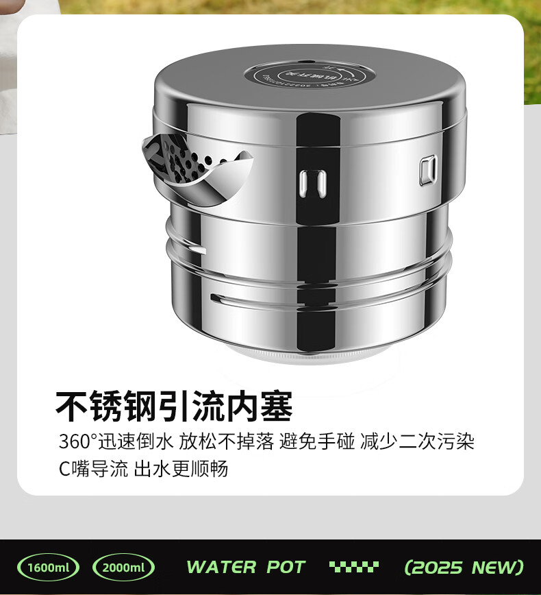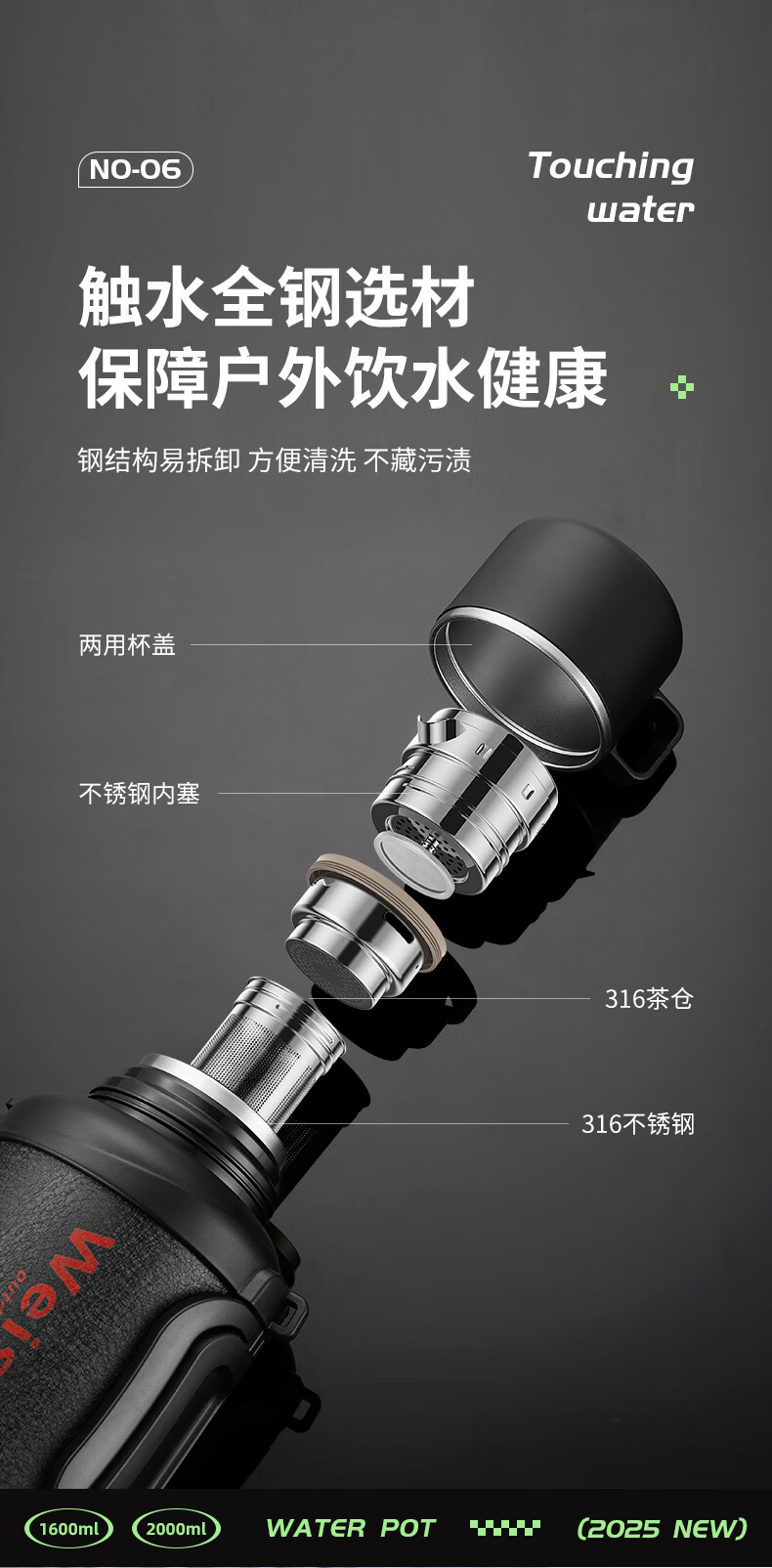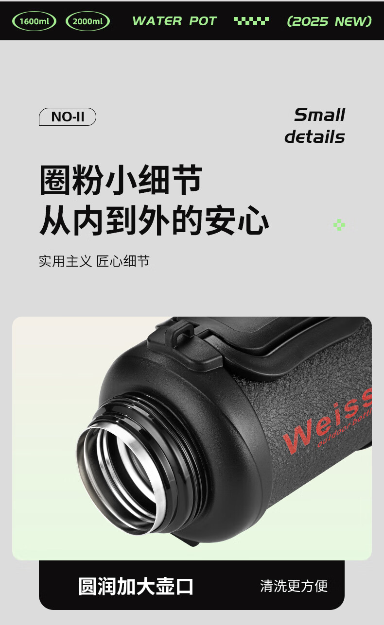唯水大保温杯1500-2000ml保温壶大容量户外水壶316不锈钢清水保温壶 黑2L【316不锈钢】4斤水