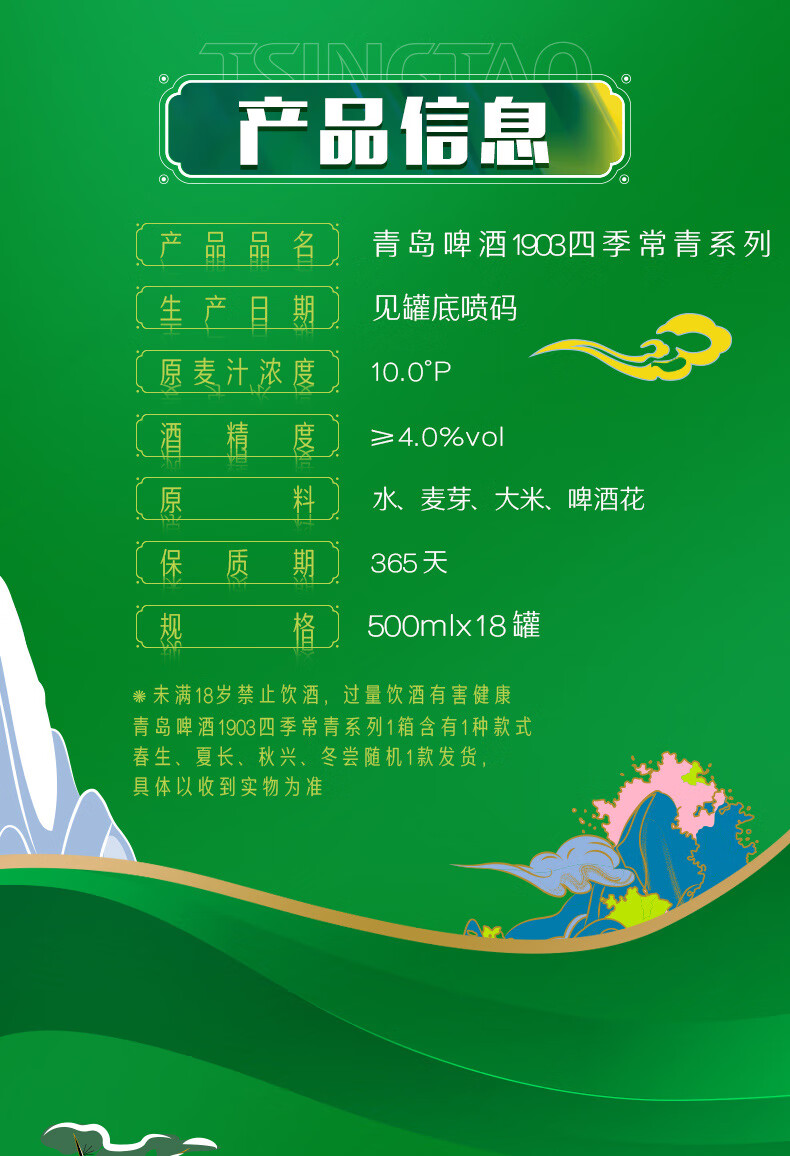 青岛啤酒经典1903 四季常青 500mL 18罐 整箱装